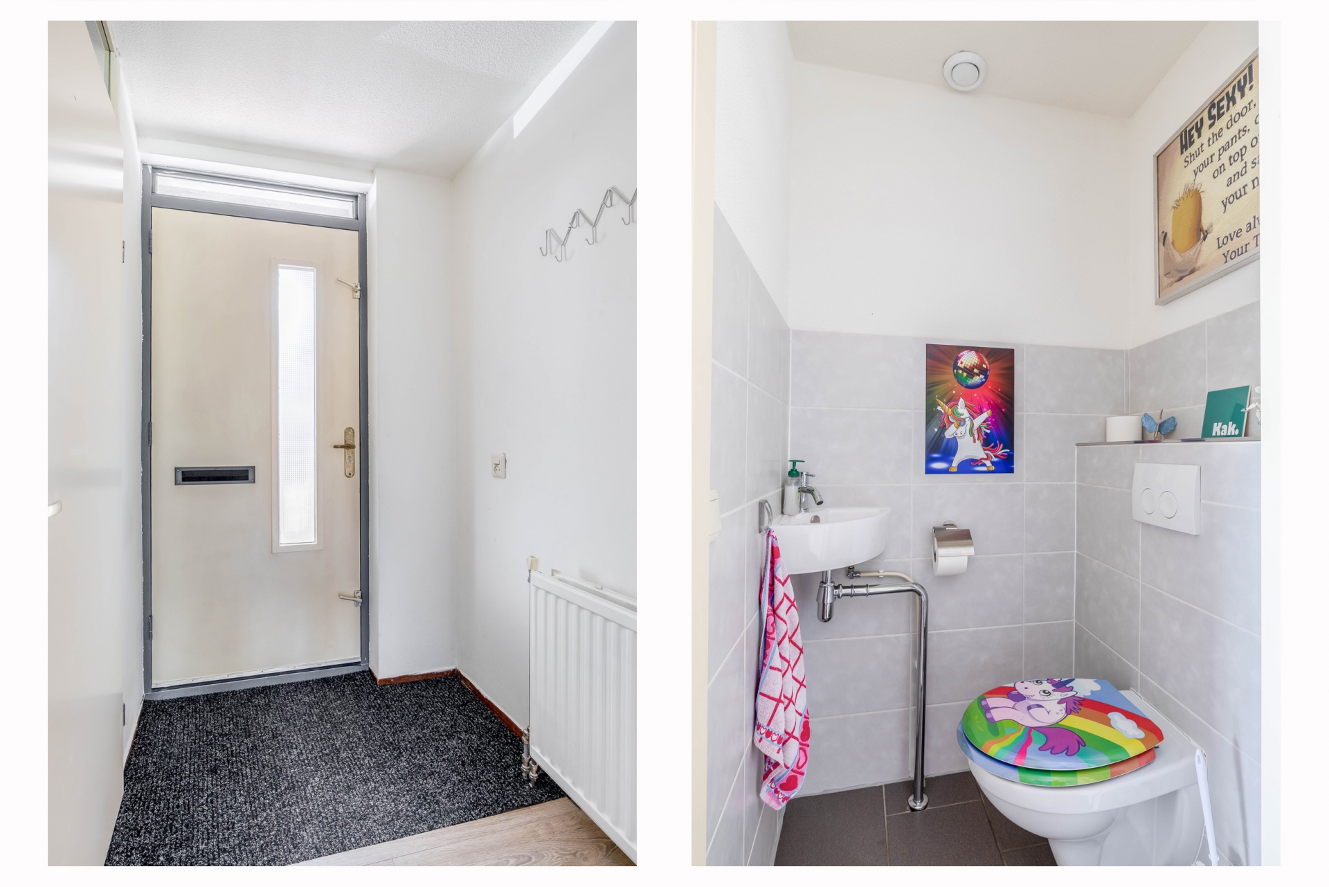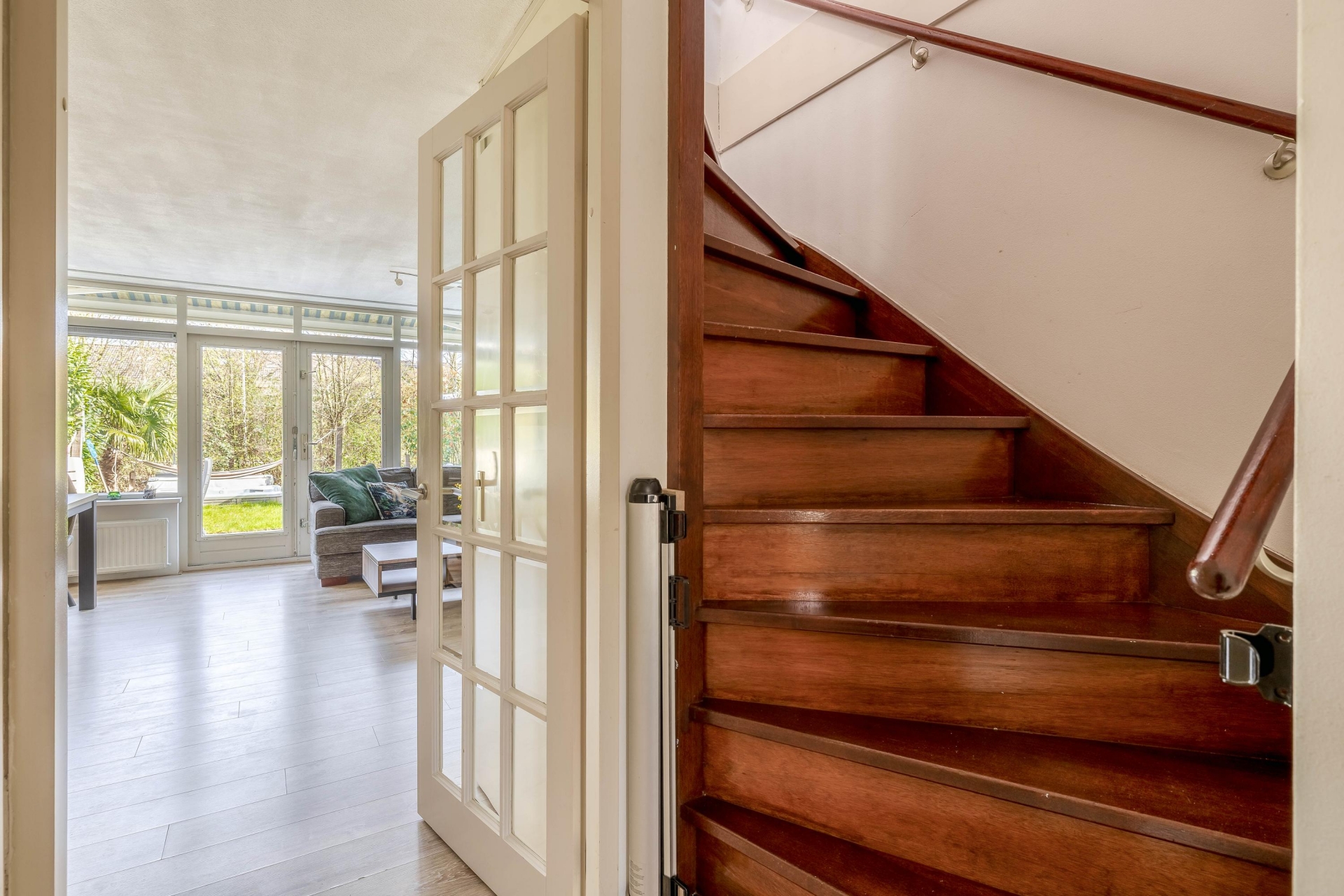 Via de overdekte entree bereik je de hal met toegang tot de inpandige berging, meterkast, separaat toilet, trapopgang en de woonkamer.