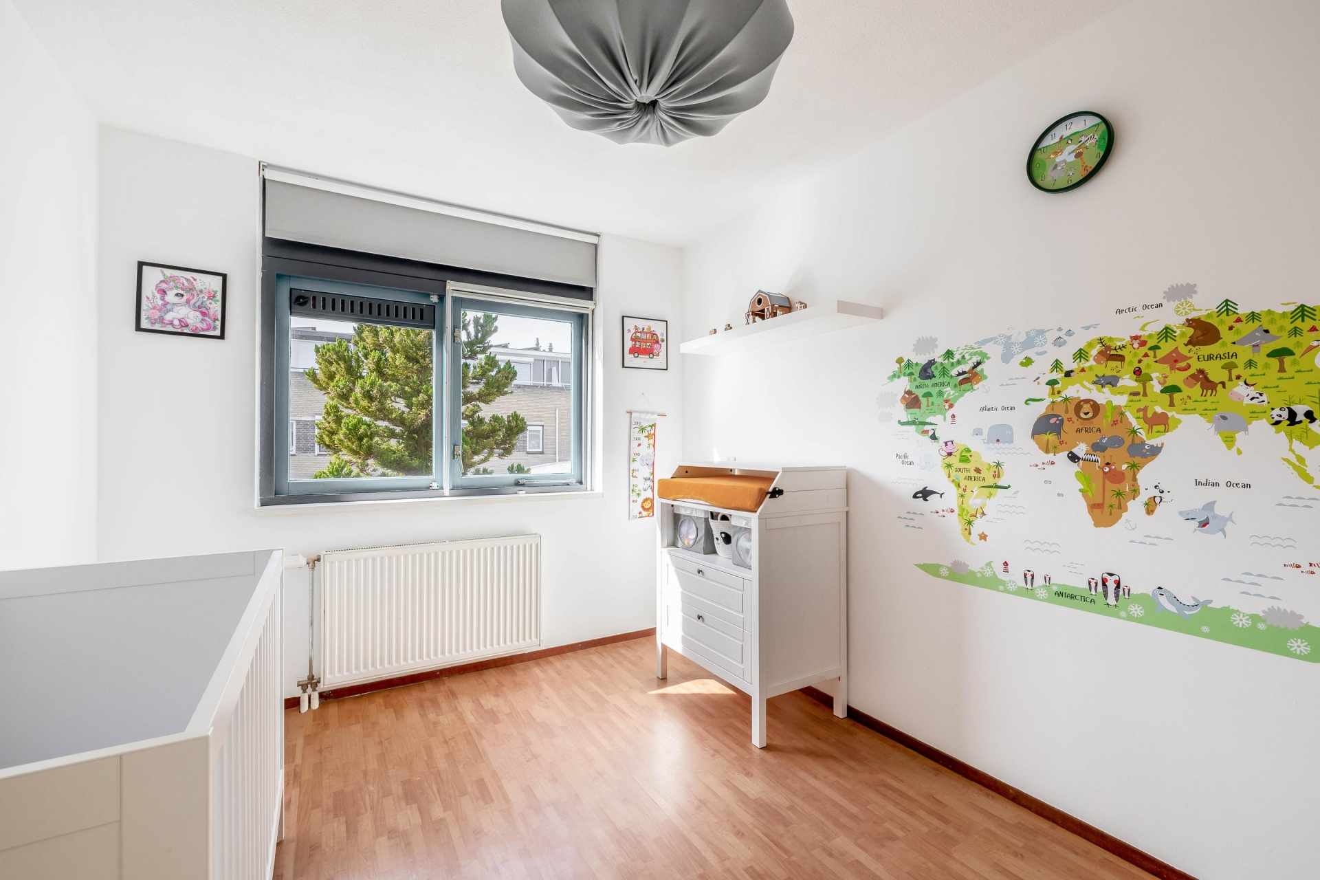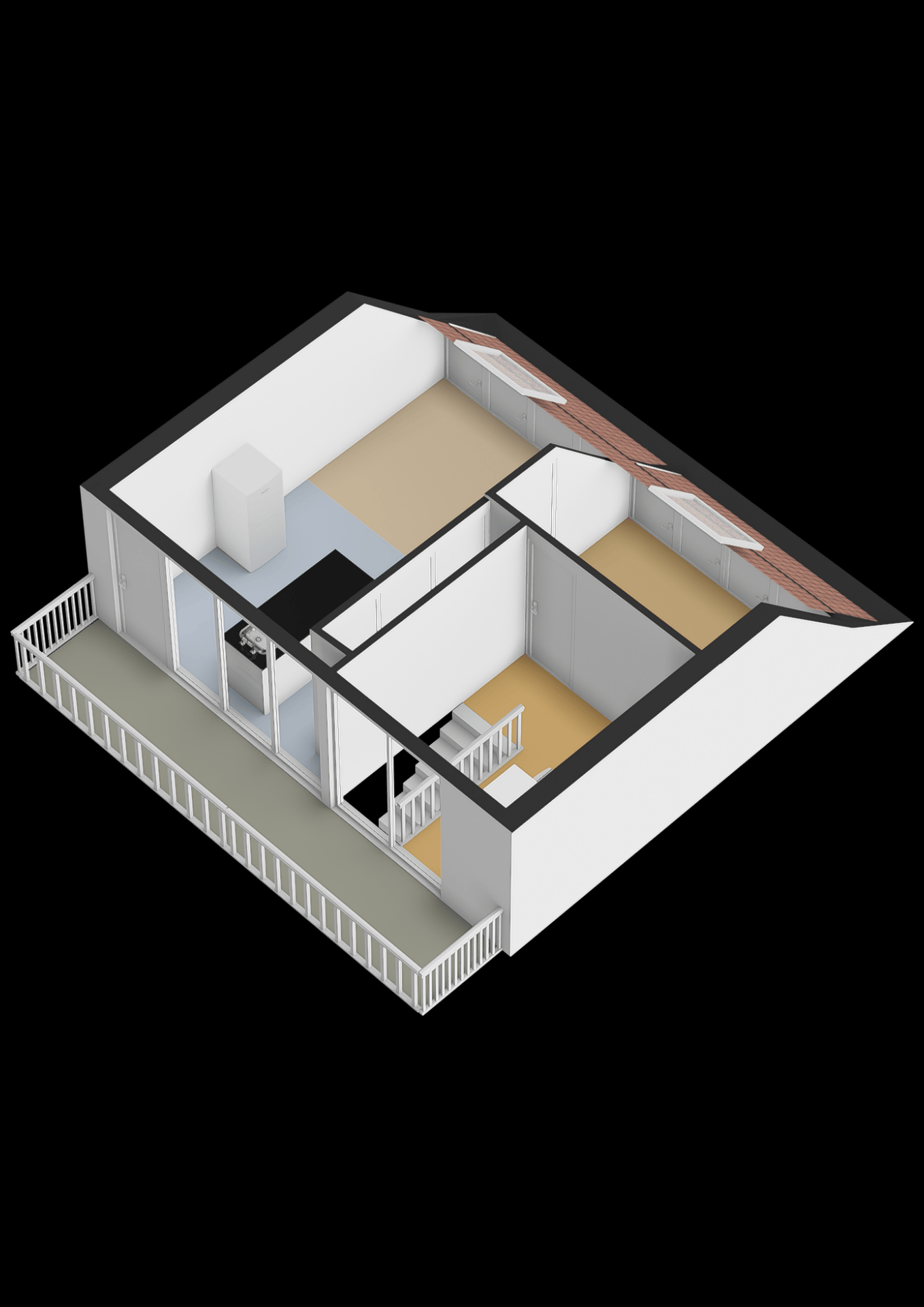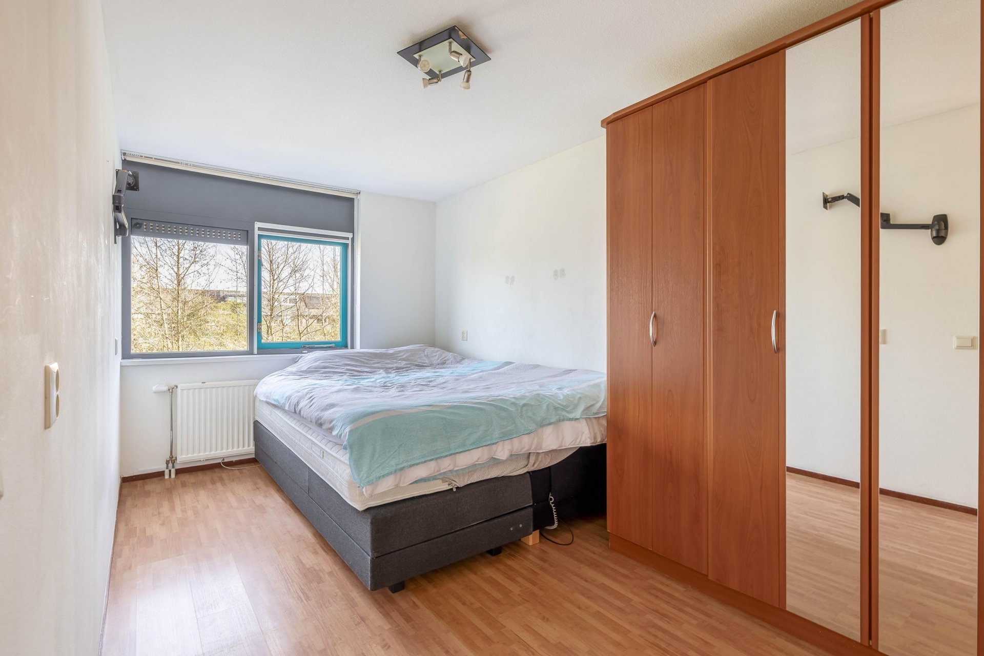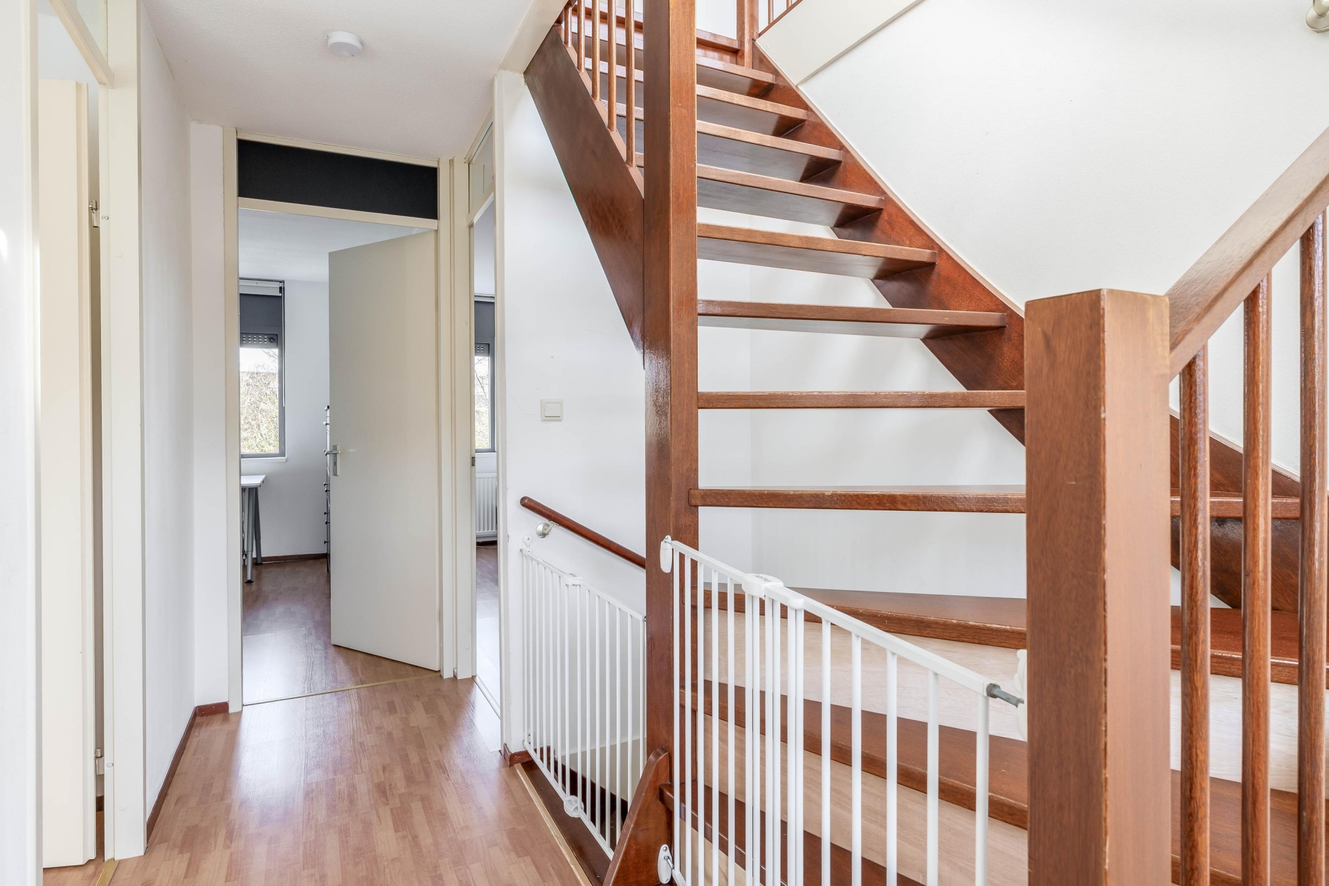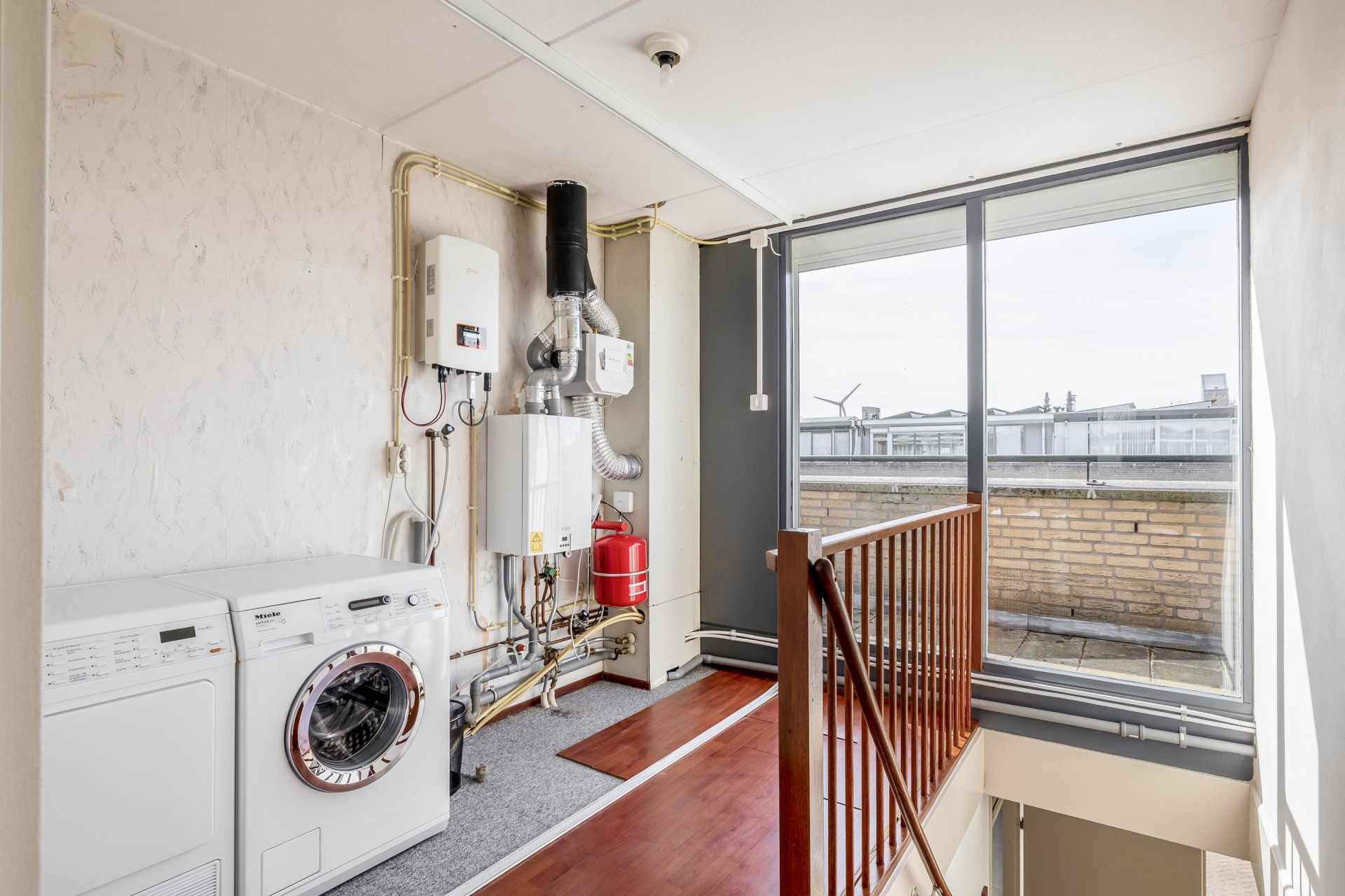 De voorzolder beschikt over een grote bergkast met aansluitingen voor wasapparatuur en de opstelling van de cv-ketel (2022). Via een tussenkamer, ideaal als thuiswerkplek, bereik je de royale vierde slaapkamer met bergruimte, een Velux dakraam en toegang tot het dakterras.