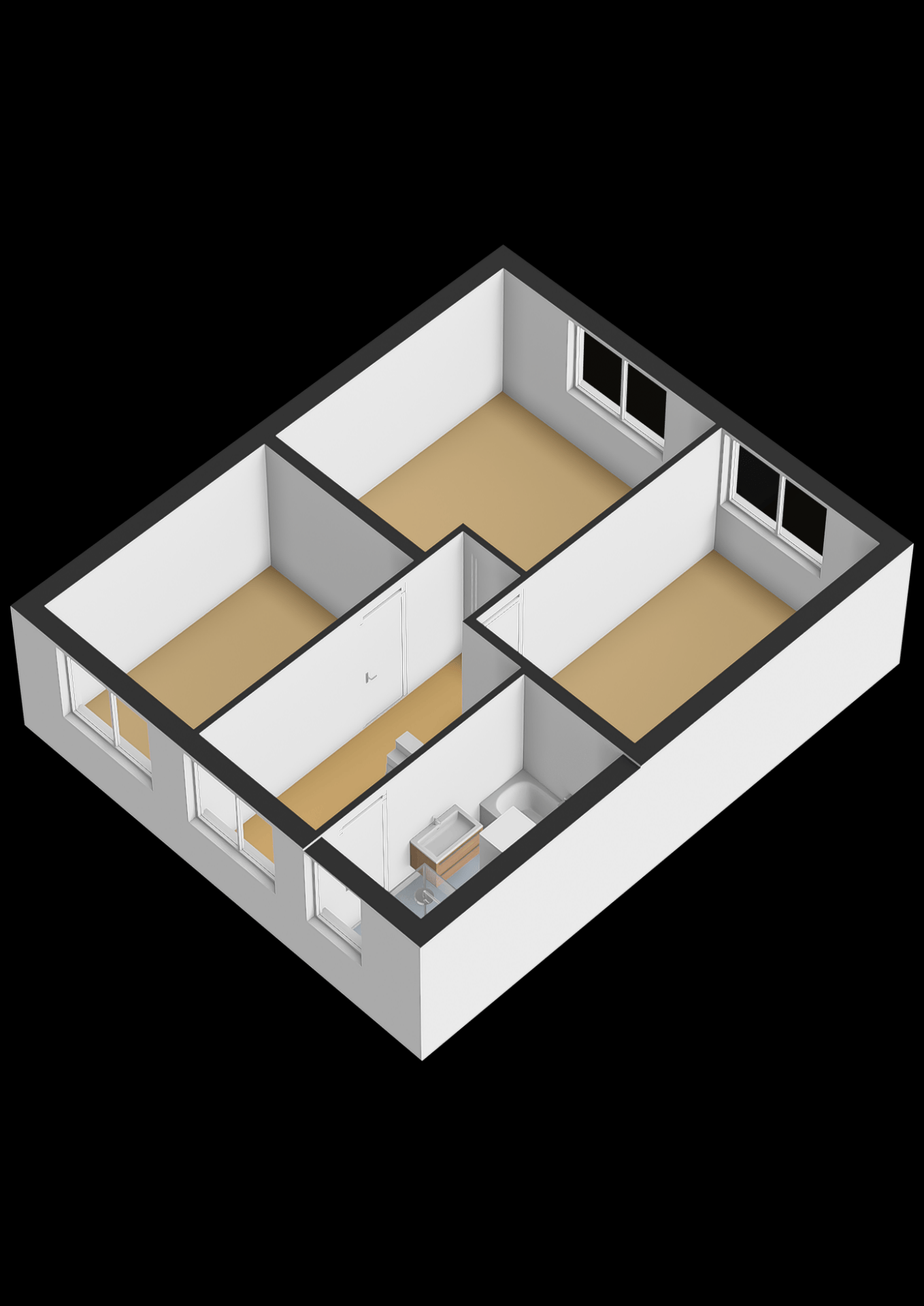 Aan de achterzijde liggen twee ruime slaapkamers van circa 13 m² en 12 m².