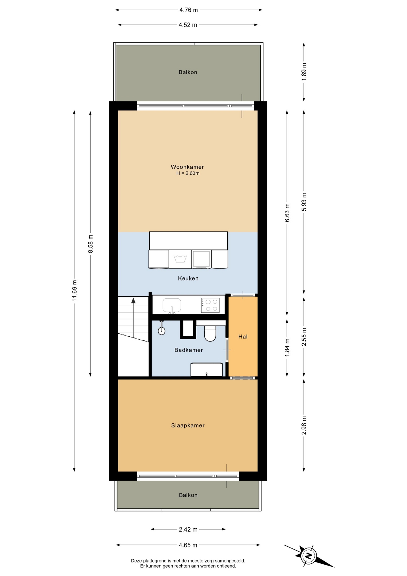 “Deze informatie is door ons met de nodige zorgvuldigheid samengesteld. Onzerzijds wordt echter geen enkele aansprakelijkheid aanvaard voor enige onvolledigheid, onjuistheid of anderszins, dan wel de gevolgen daarvan. Alle opgegeven maten en oppervlakten zijn indicatief.”