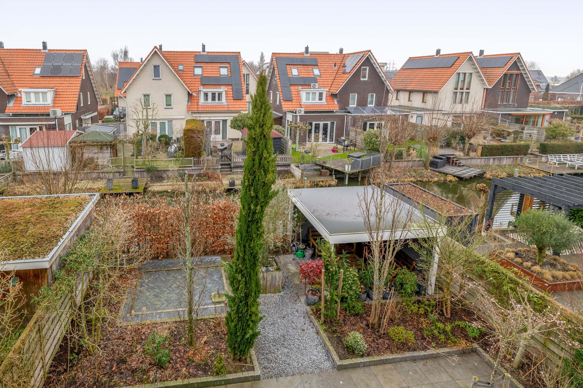 Vanuit de entree met ruime hal met 1e toiletruimte met closet en fonteintje is de lichte woonkamer bereikbaar met uitbouw aan de achterzijde; aan de voorzijde bevindt zich de ruime woonkeuken met keukeneiland met diverse inbouwapparatuur waaronder een vaatwasser, Quooker, 4 pits kookplaat, grillplaat, afzuigkap, koelkast, vriezer oven en magnetron. Aan de achterzijde is de tuin bereikbaar middels en schuifpui. De tuin is een absoluut pluspunt van dit huis. Met een ligging op het noordwesten geniet je hier van de middag- en avondzon. De combinatie van terras, groen en een houten vlonder aan het water zorgt voor veel afwisseling. Vanuit de hal op de begane grond is er een riante inpandige berging bereikbaar welke eveneens toegang heeft tot de zijtuin en achtertuin.