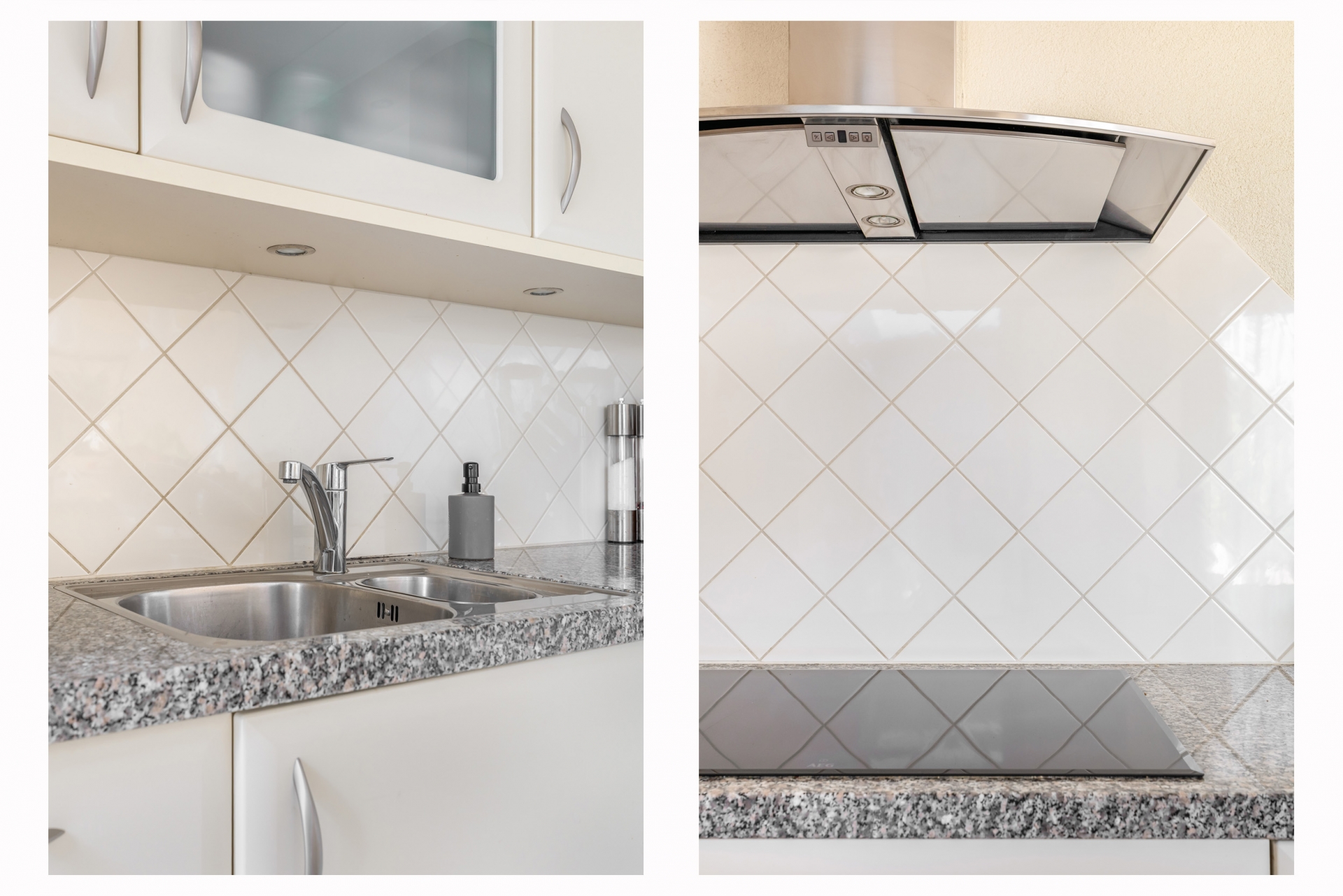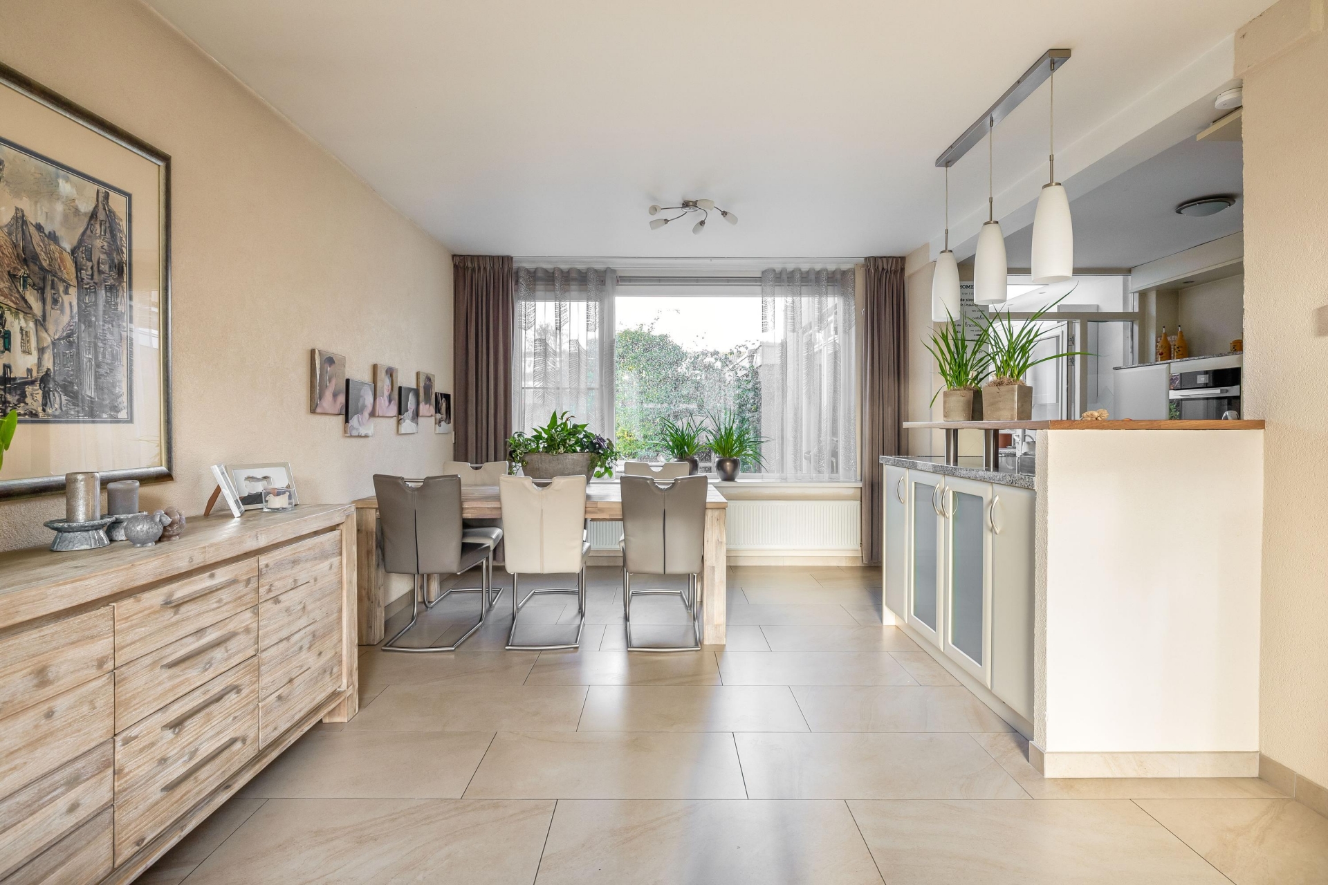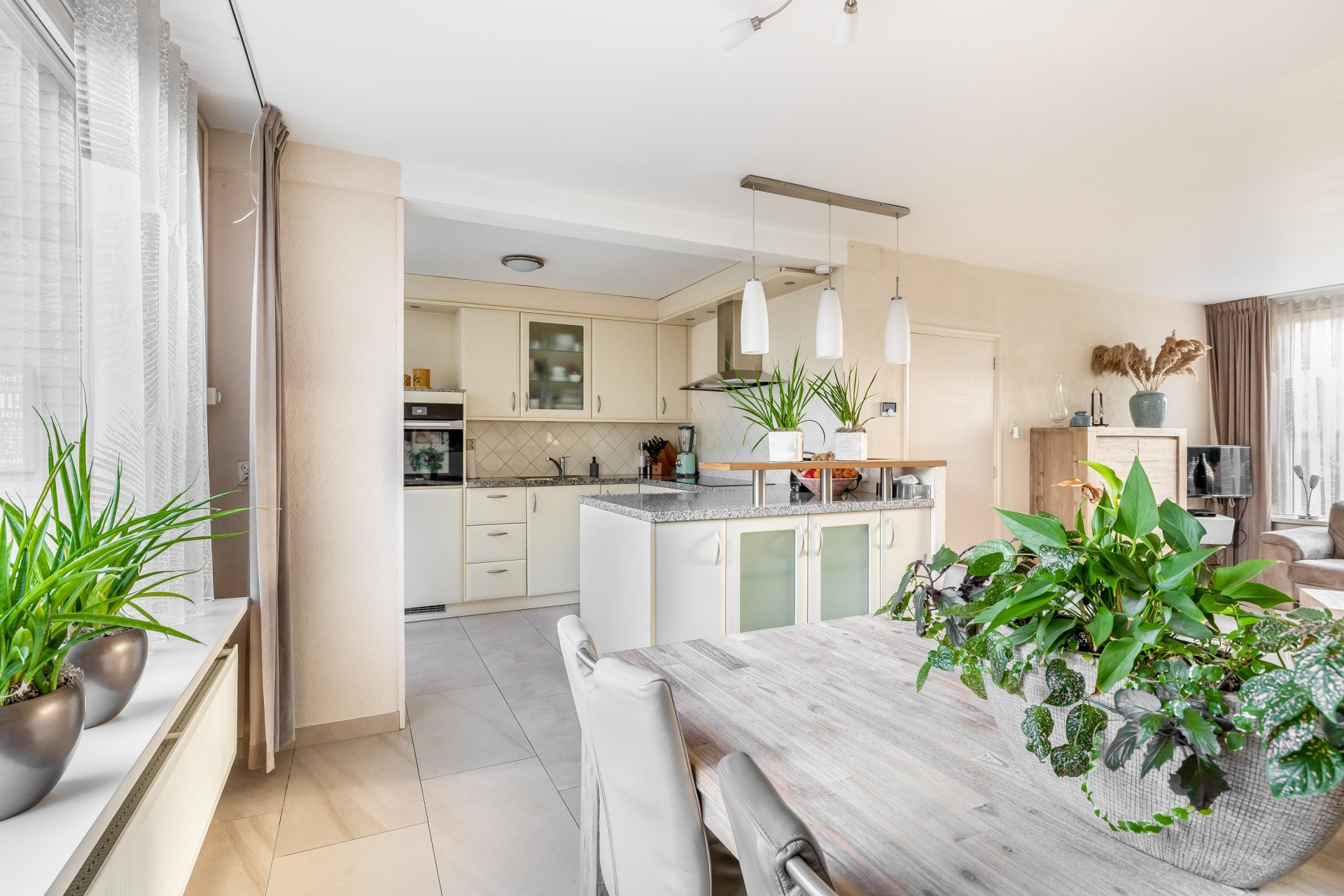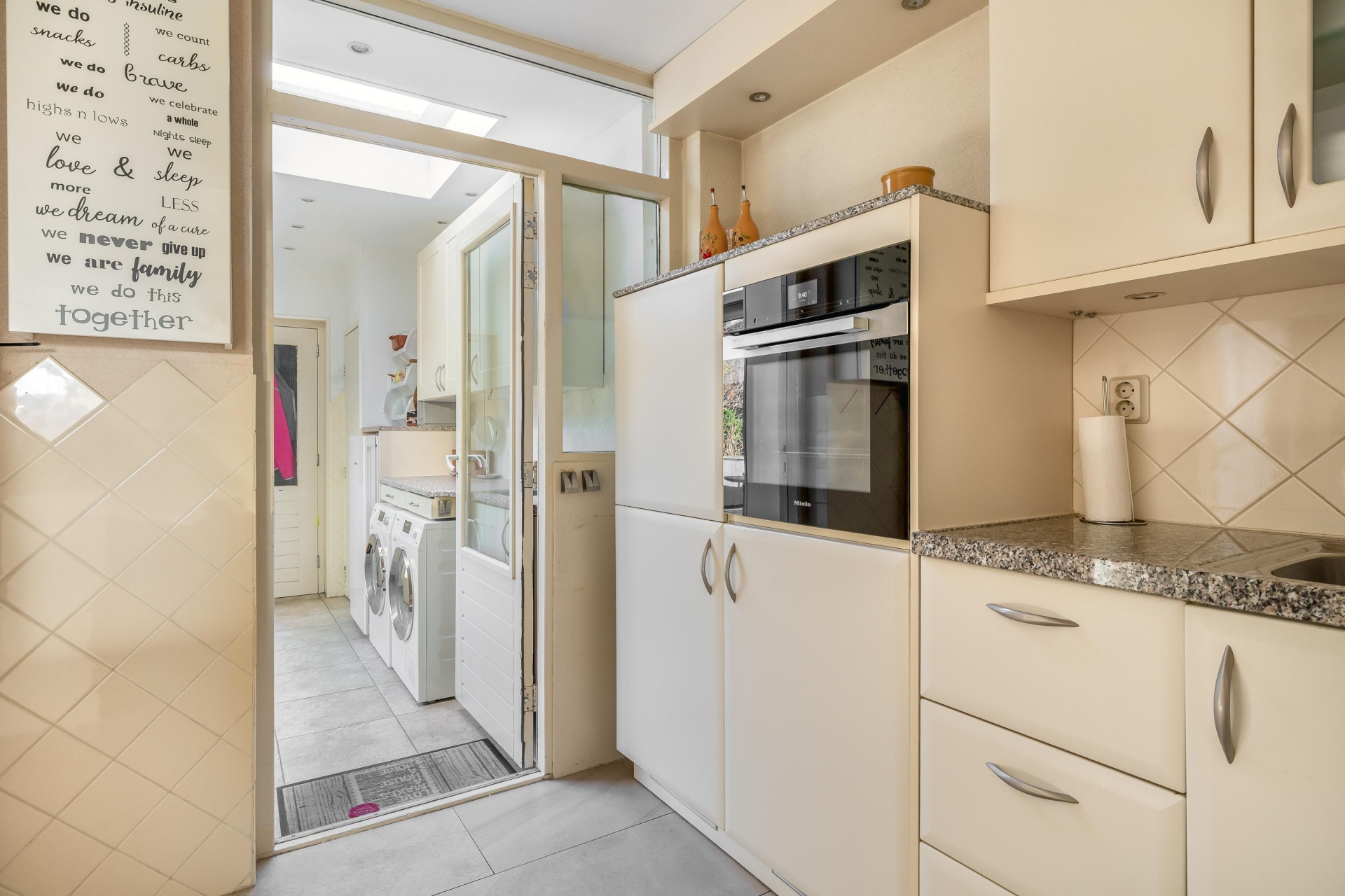 De keuken is geplaatst in een praktische opstelling en bevindt zich aan de achterzijde van de woning, met een prettig uitzicht op de tuin. Hier beschik je over alle benodigde inbouwapparatuur, waaronder een inductiekookplaat, een afzuigkap, een vaatwasser, een koelkast, een vriezer en voldoende kastruimte. Dankzij de open verbinding met de woonkamer blijf je altijd betrokken bij wat er in huis gebeurt — ideaal tijdens het koken of borrelen met vrienden of familie.