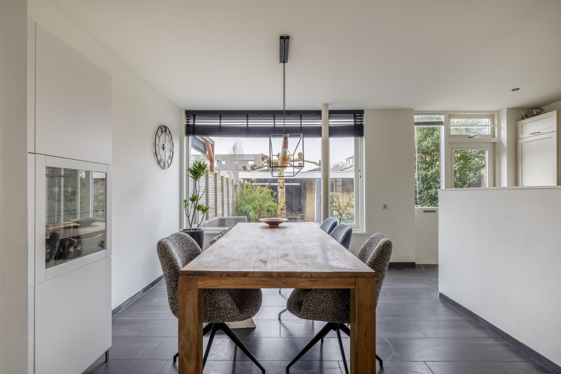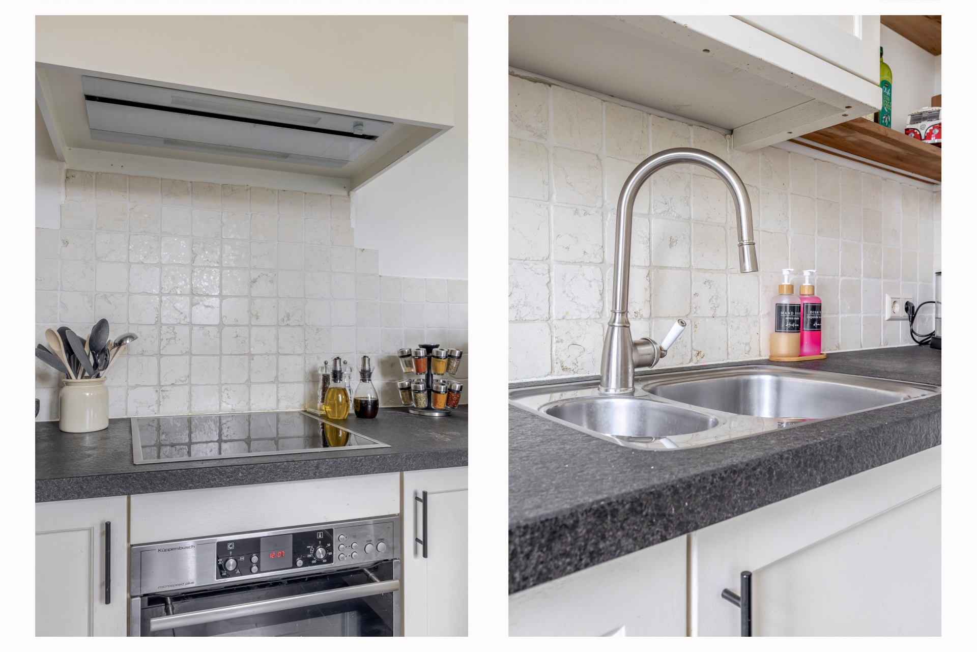 Bij binnenkomst valt direct de prettige indeling op. De woonkamer aan de voorzijde heeft een grote erker dat zorgt voor veel daglicht en een vrij uitzicht over de straat. Hierdoor voelt de ruimte licht en open aan. Het is een fijne plek om een comfortabele zithoek te creëren waar je samenkomt na een lange dag. Aan de achterzijde van het huis bevindt zich de open keuken. Deze is netjes uitgevoerd in een lichte kleurstelling en heeft een ruime opstelling met voldoende werkruimte en kastruimte. Dankzij de open verbinding met het eetgedeelte blijf je altijd in contact met je gasten of gezin tijdens het koken.