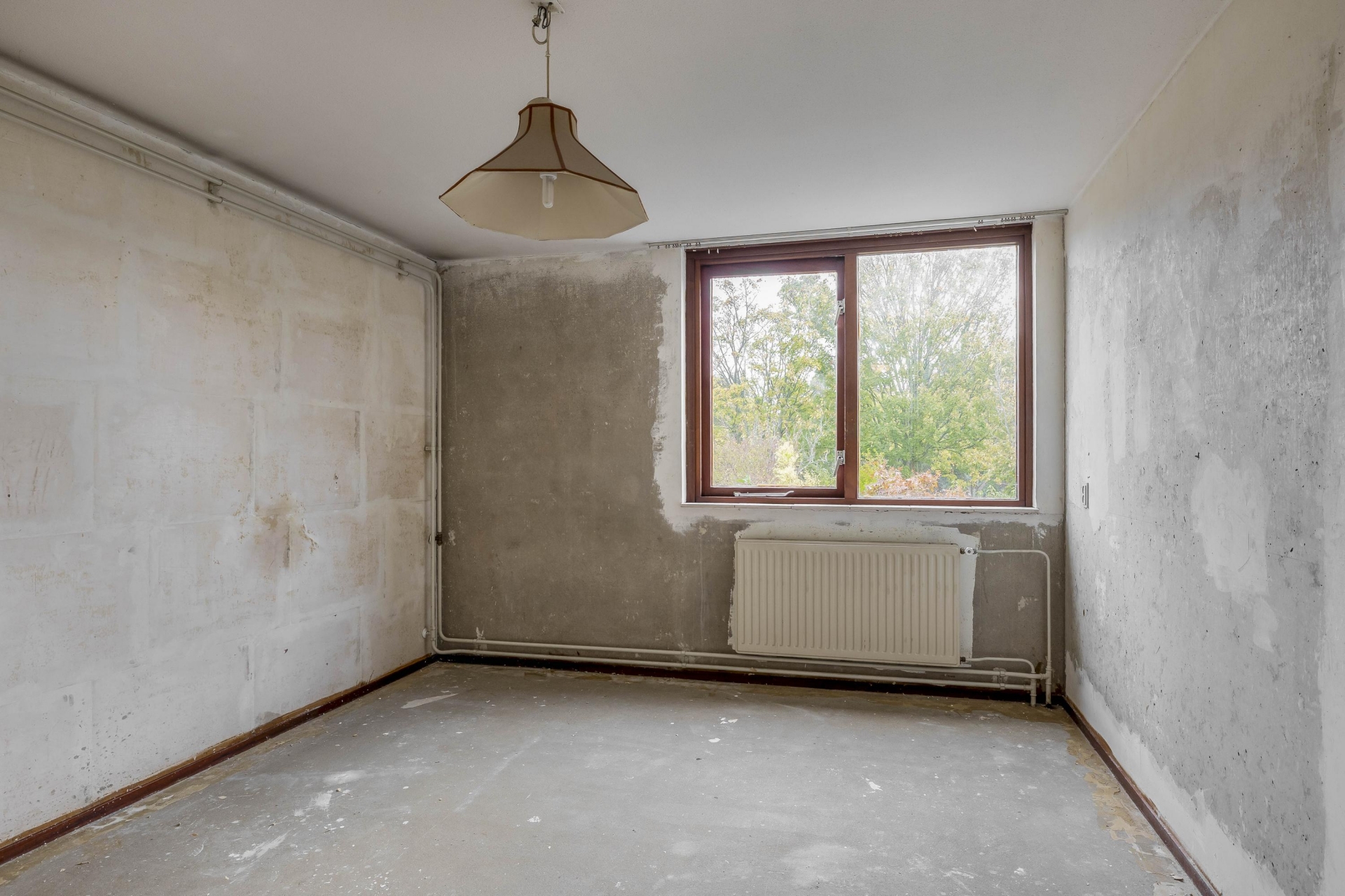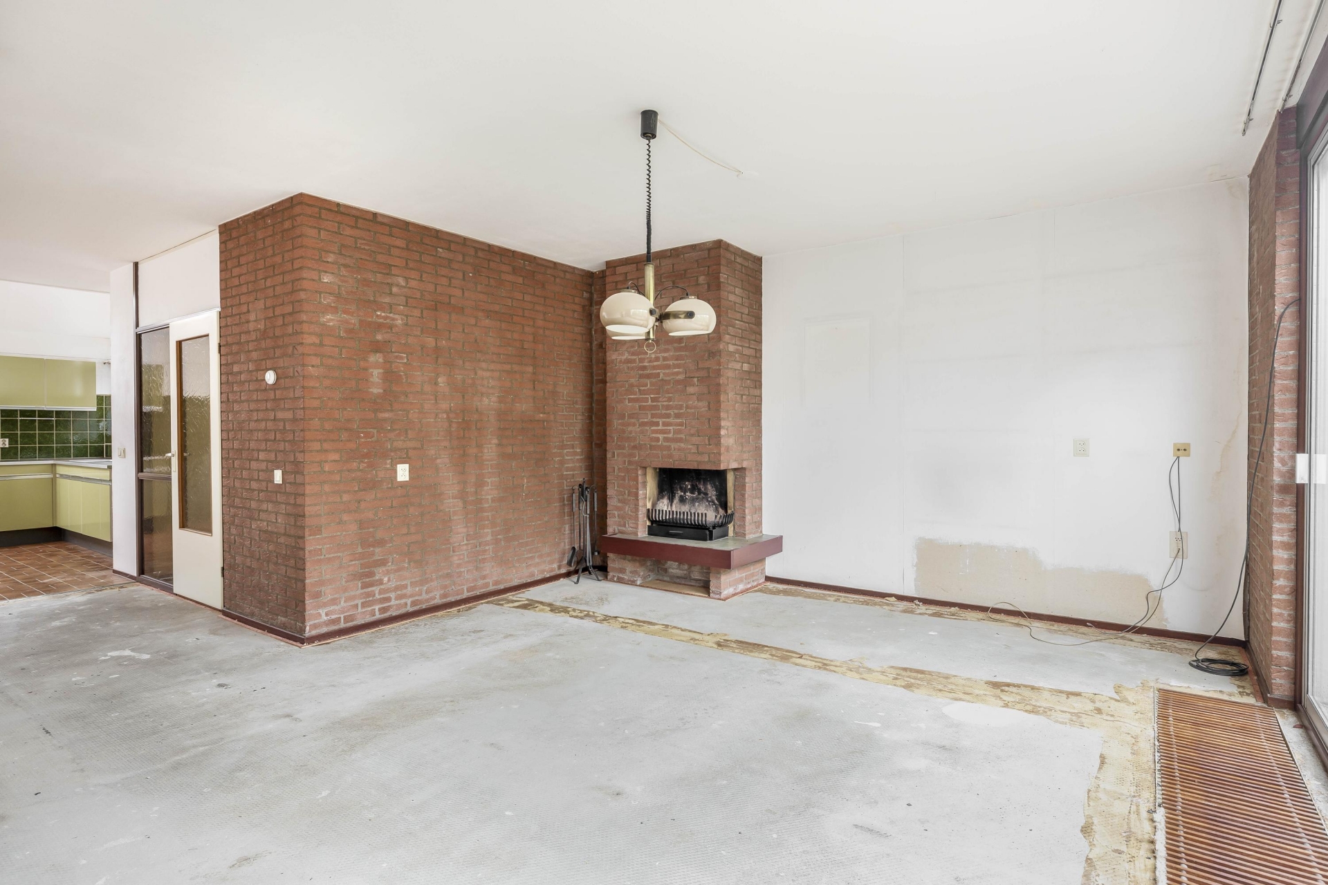 De woonkamer is opvallend licht dankzij de grote glazen schuifpui die bijna de volledige achtergevel beslaat. Hierdoor loopt het zicht naadloos door naar de tuin, wat zorgt voor een gevoel van ruimte en verbinding met buiten. De open haard geeft de ruimte karakter en biedt mogelijkheden om dit huis helemaal eigen te maken. De kamer is nog vrij van vaste inrichting, dus je kunt direct aan de slag met je eigen woonwensen. Er is genoeg ruimte voor een royale zithoek én een eettafel.