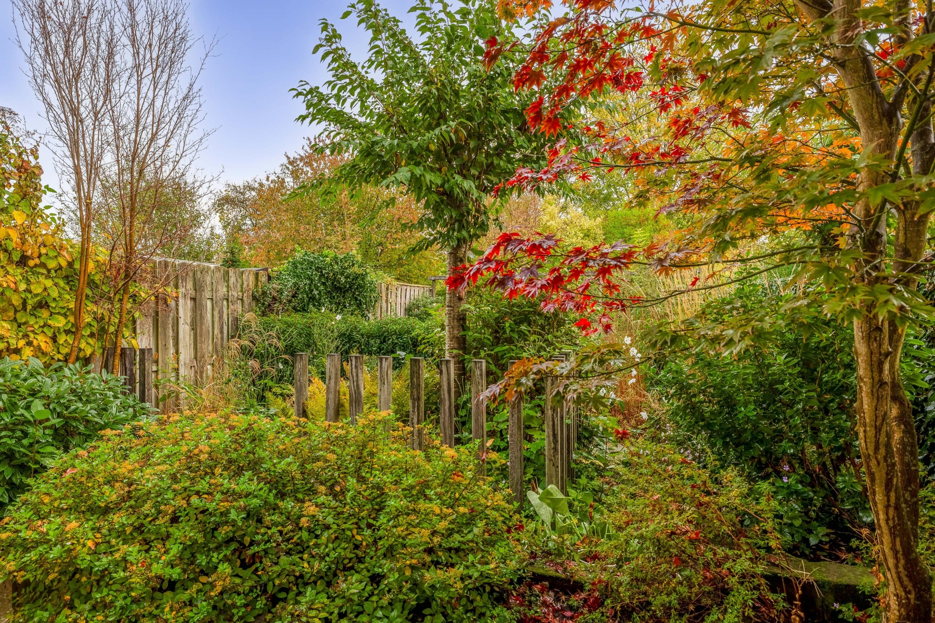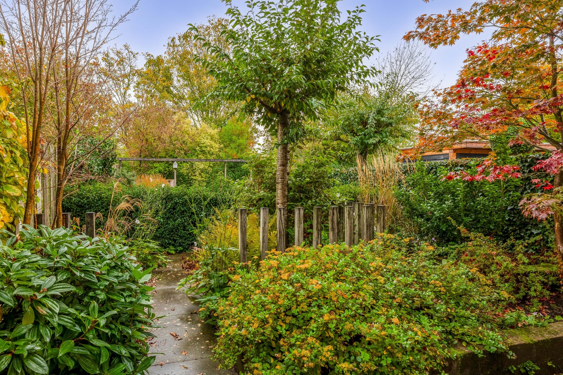 Zodra je de achterdeur opent, sta je in een tuin die voelt als een klein park. Kleurrijke struiken en veel ander groen geven dit perceel een natuurlijke en beschutte sfeer. Of je nu wakker wordt met een kop koffie op het terras of aan het einde van de dag even tot rust komt tussen het groen: hier leef je buiten. De tuin is gelegen op het oosten, waardoor je in de ochtend en vroege middag heerlijk in de zon zit. Voor extra bergruimte of hobbyprojecten is er ook nog een garage aanwezig aan de voorzijde.