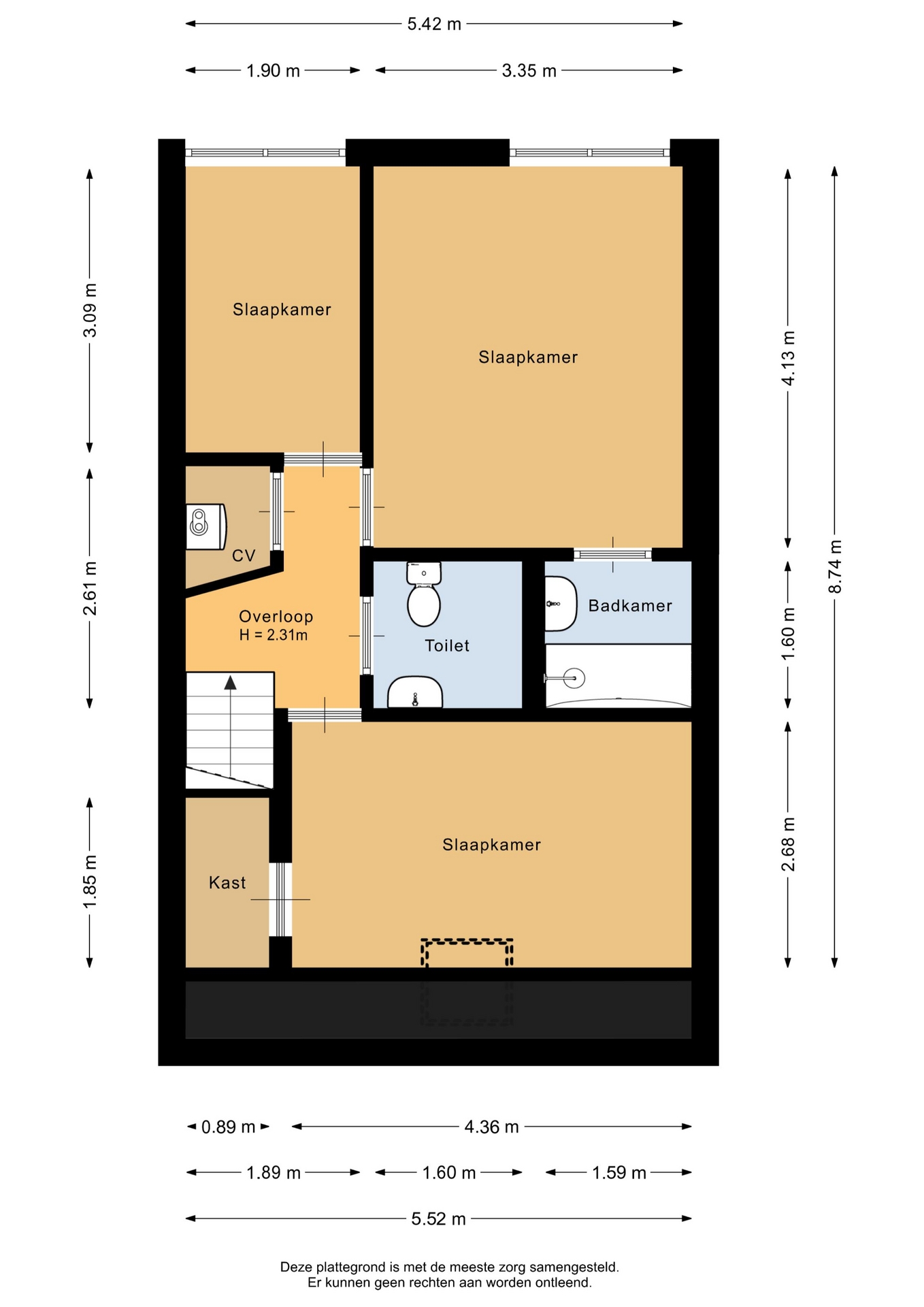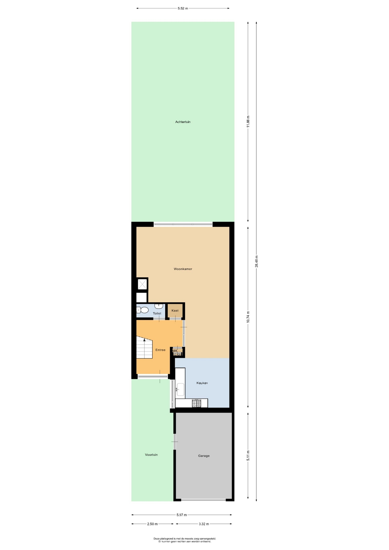 “Deze informatie is door ons met de nodige zorgvuldigheid samengesteld. Onzerzijds wordt echter geen enkele aansprakelijkheid aanvaard voor enige onvolledigheid, onjuistheid of anderszins, dan wel de gevolgen daarvan. Alle opgegeven maten en oppervlakten zijn indicatief.”