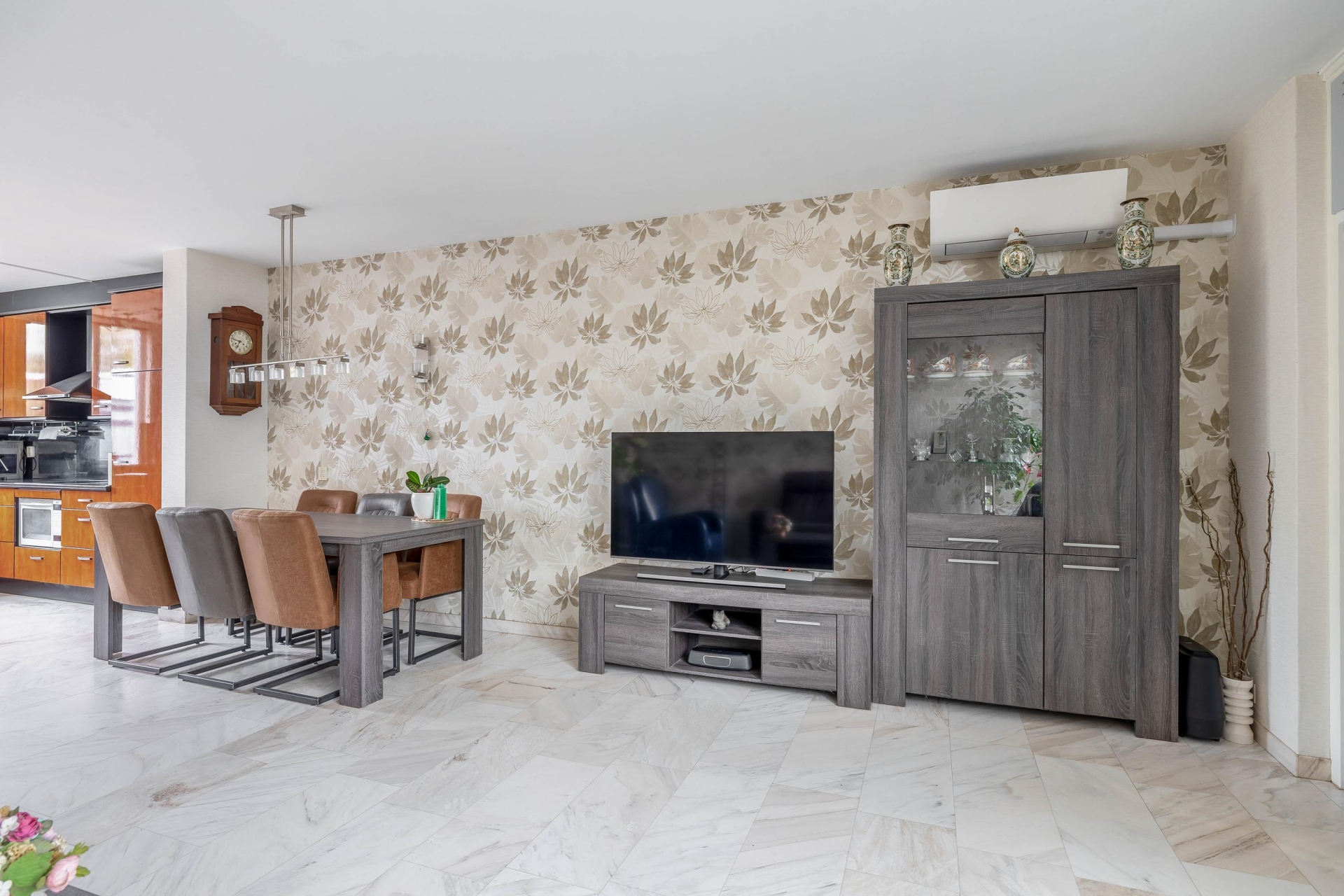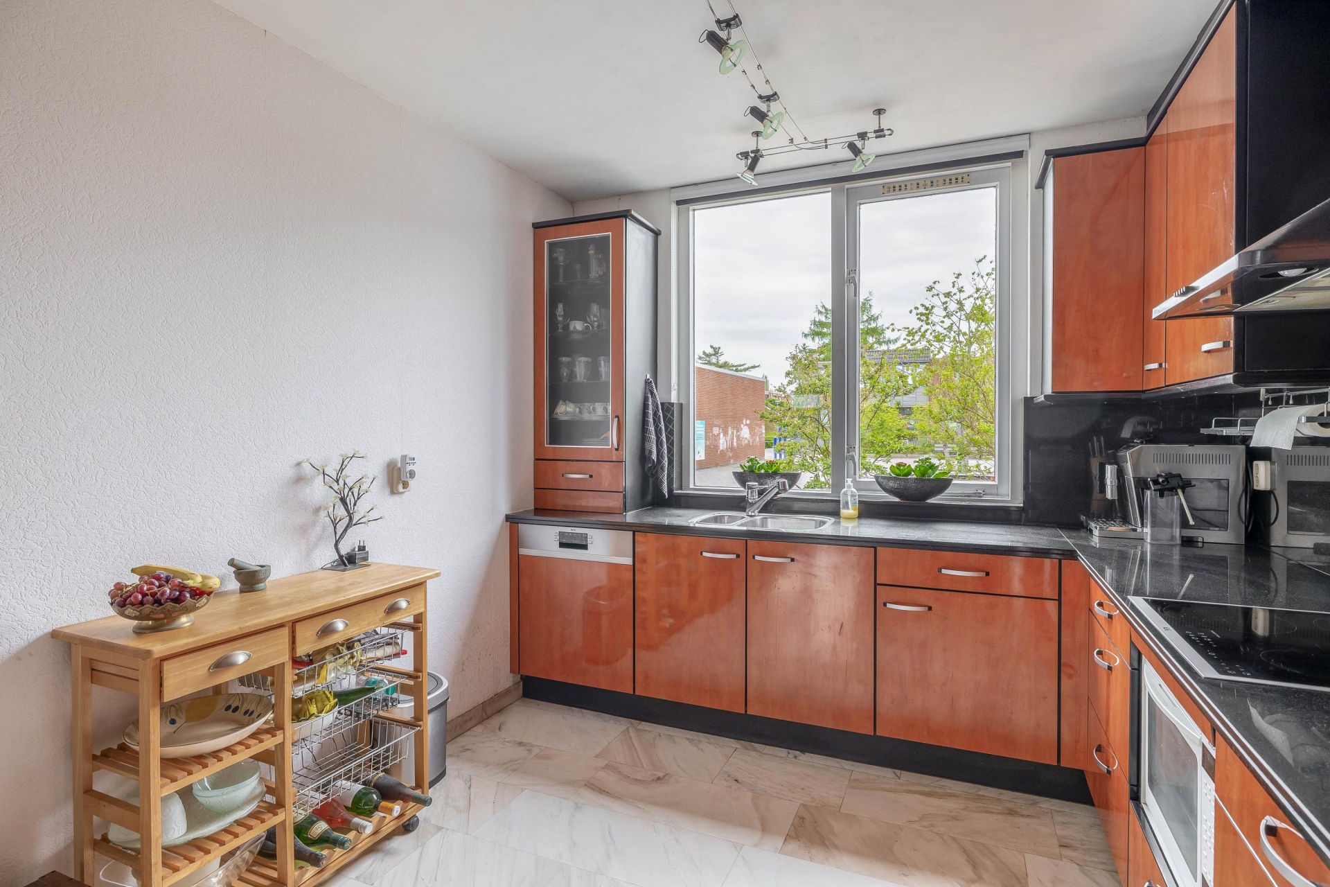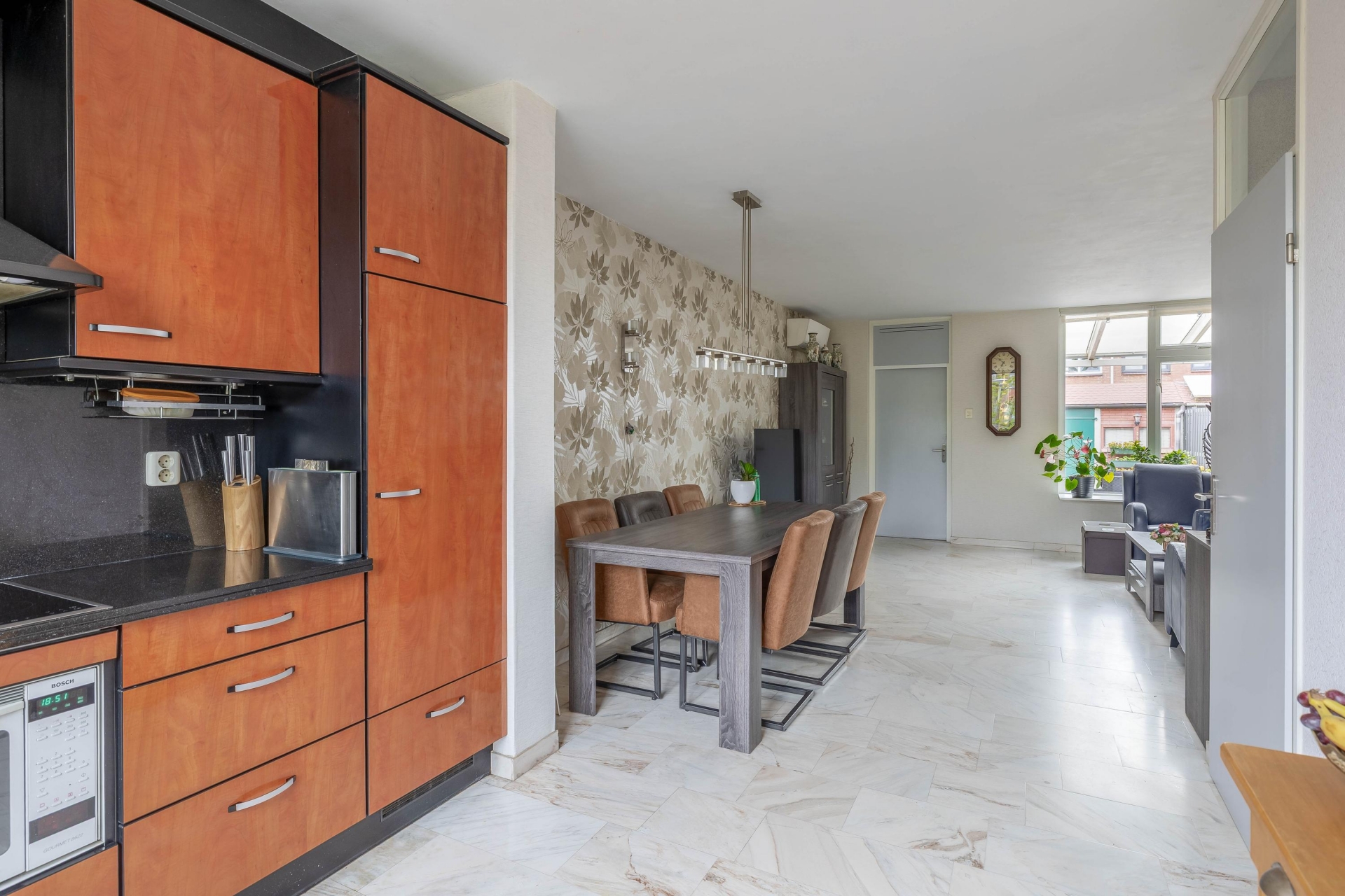 De open keuken is voorzien van een ruime hoekopstelling met diverse inbouwapparatuur, waaronder een combimagnetron, koel-/vriescombinatie en vaatwasser. Dankzij de slimme indeling en voldoende kastruimte kook je hier met plezier.