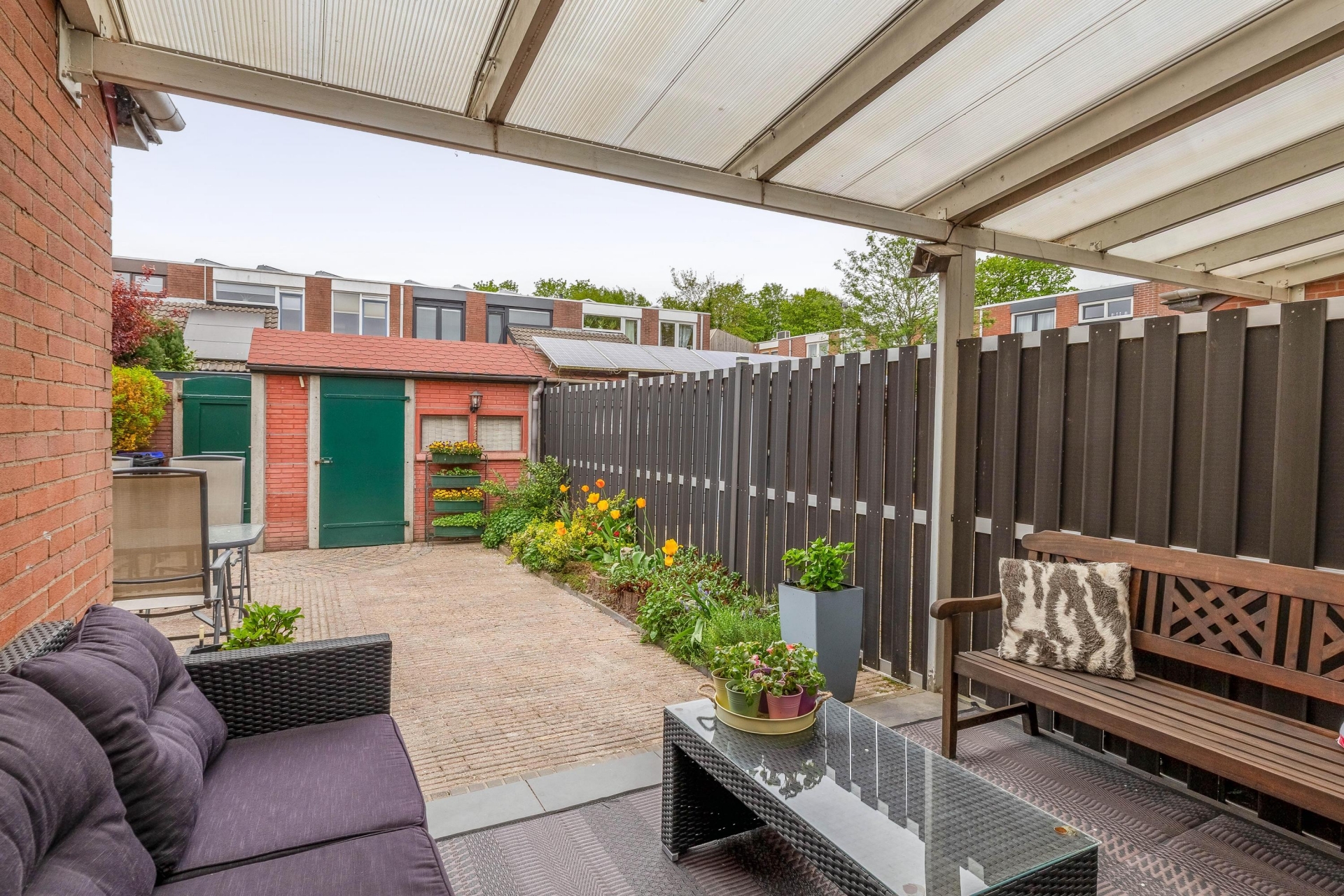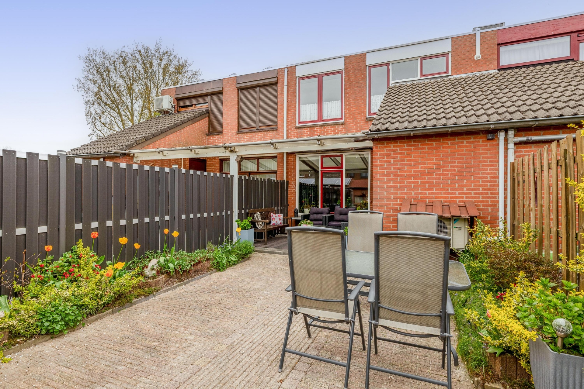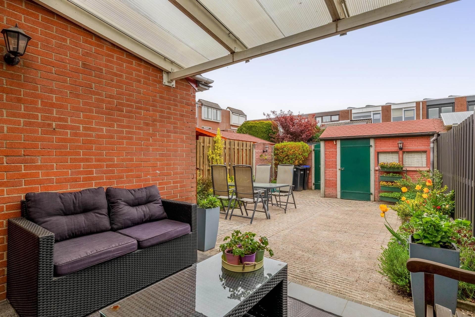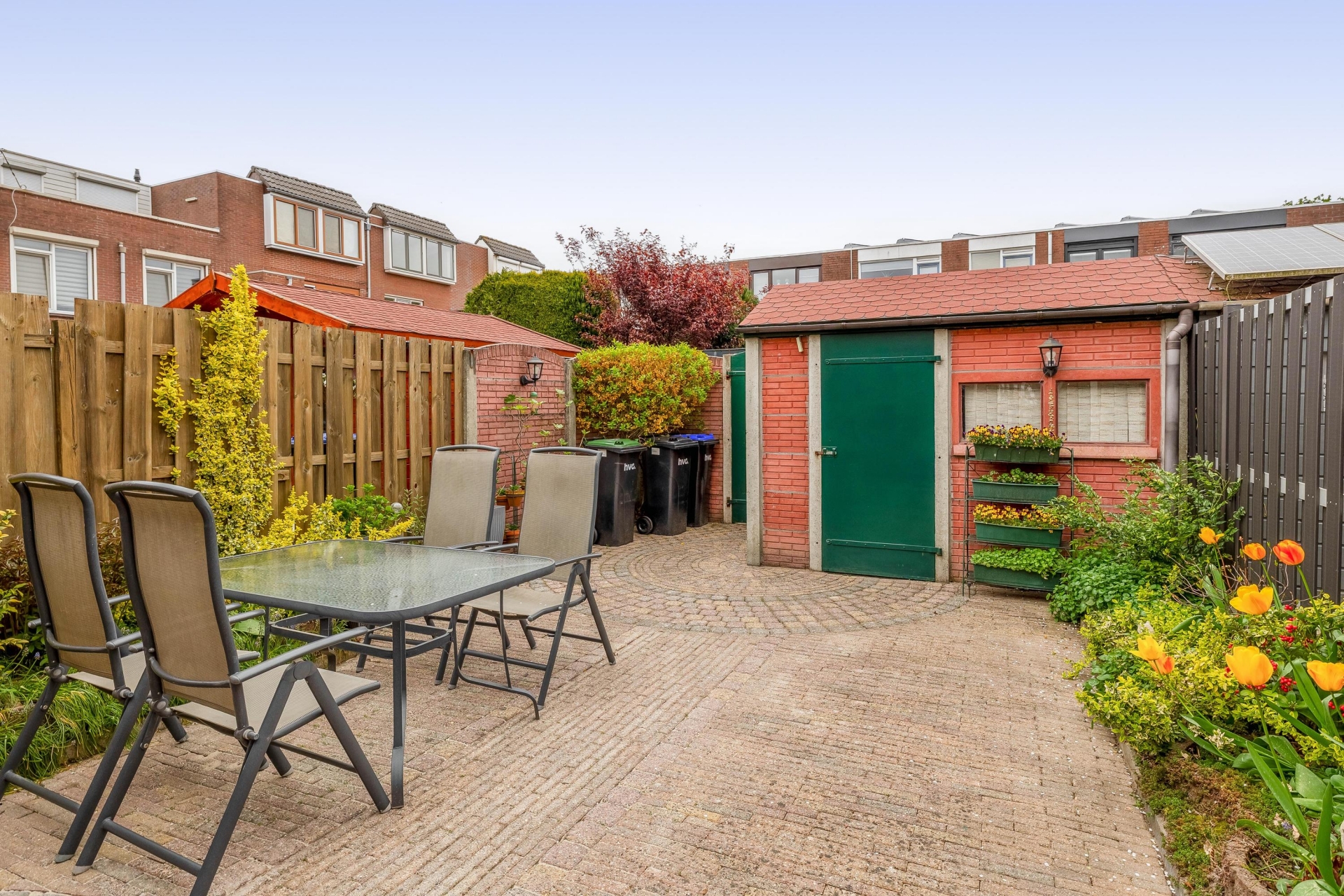 De voortuin zorgt voor een prettige entree. De diepe achtertuin is verzorgd aangelegd en heeft een stenen berging. Dankzij de achterom is de tuin ook praktisch bereikbaar.