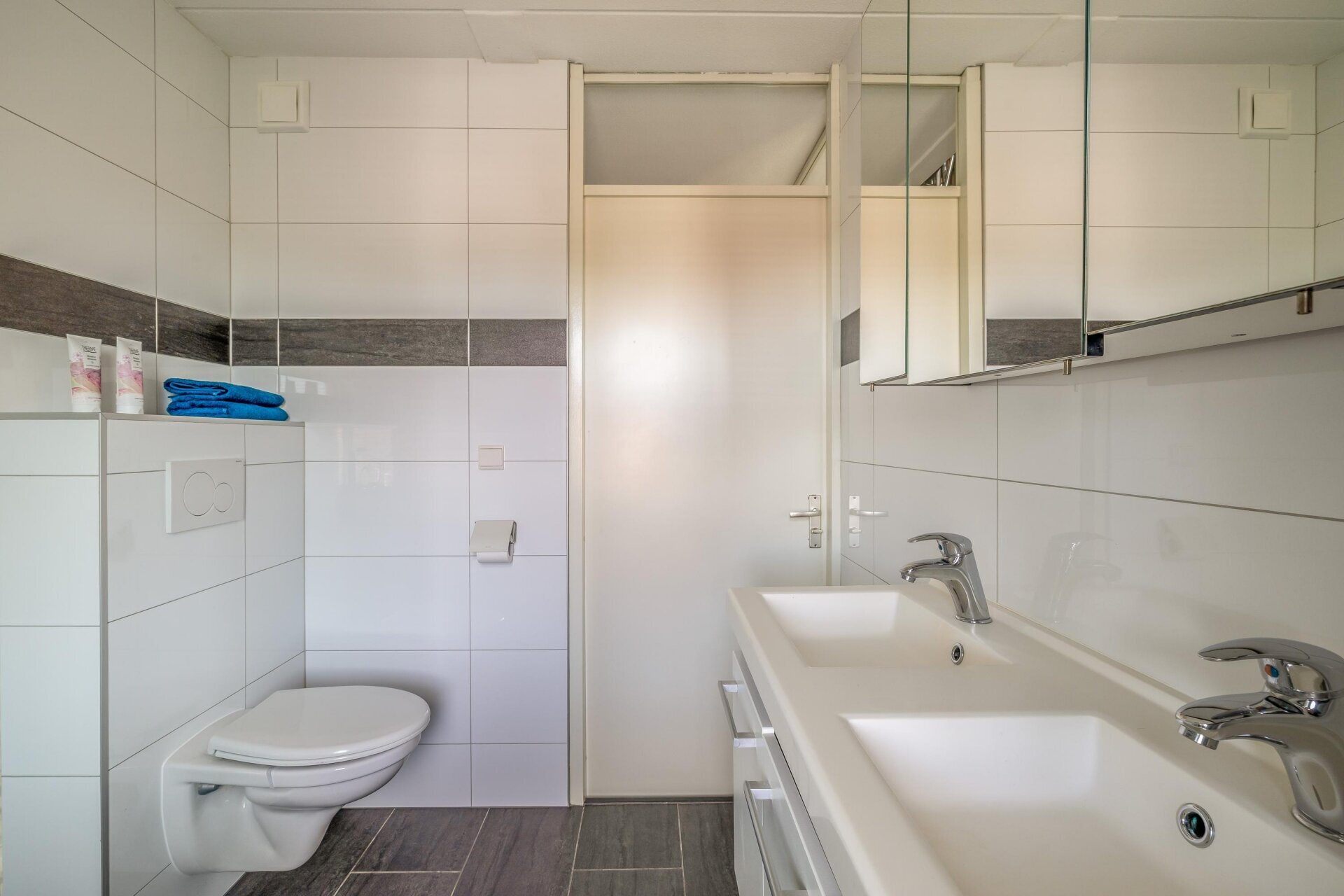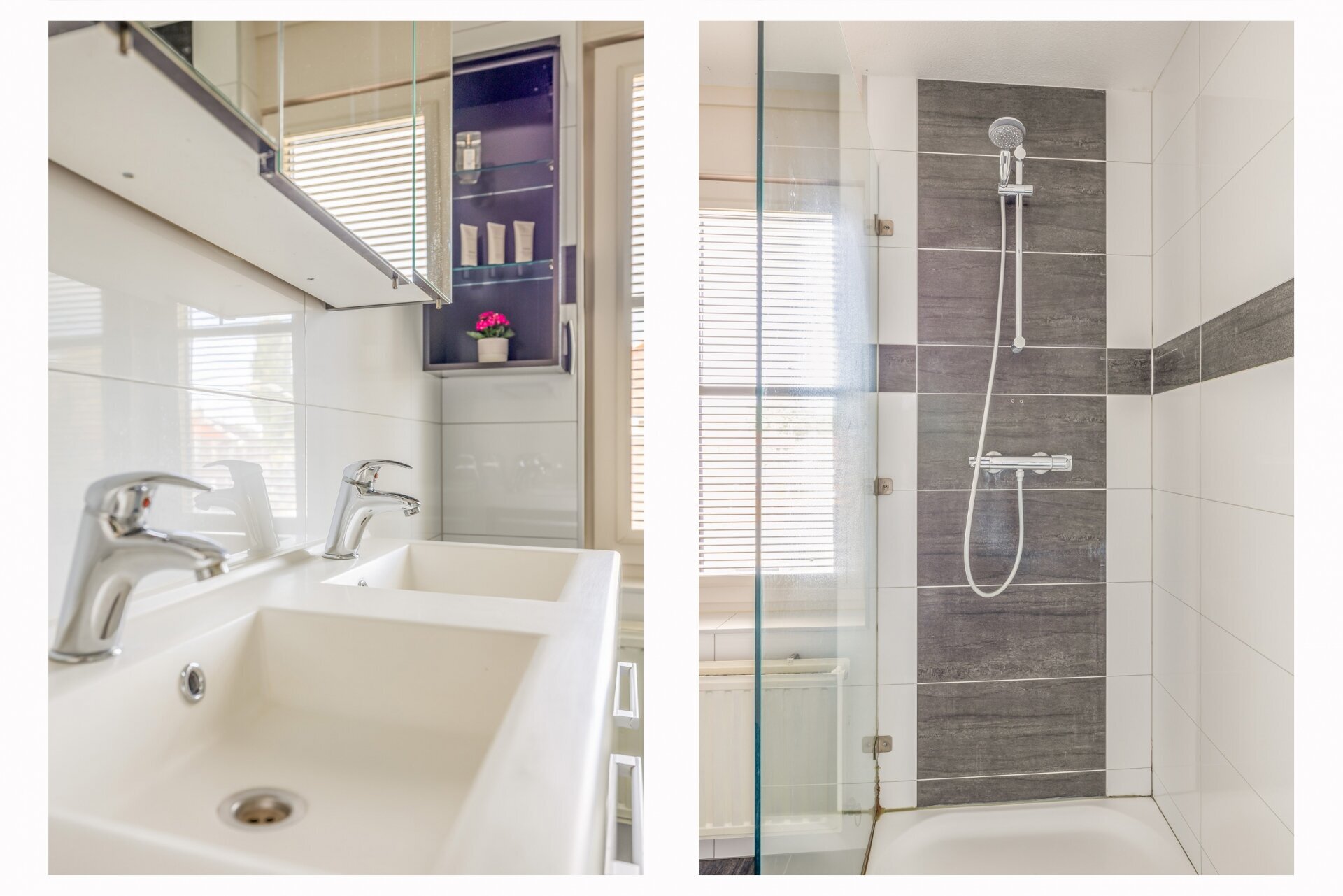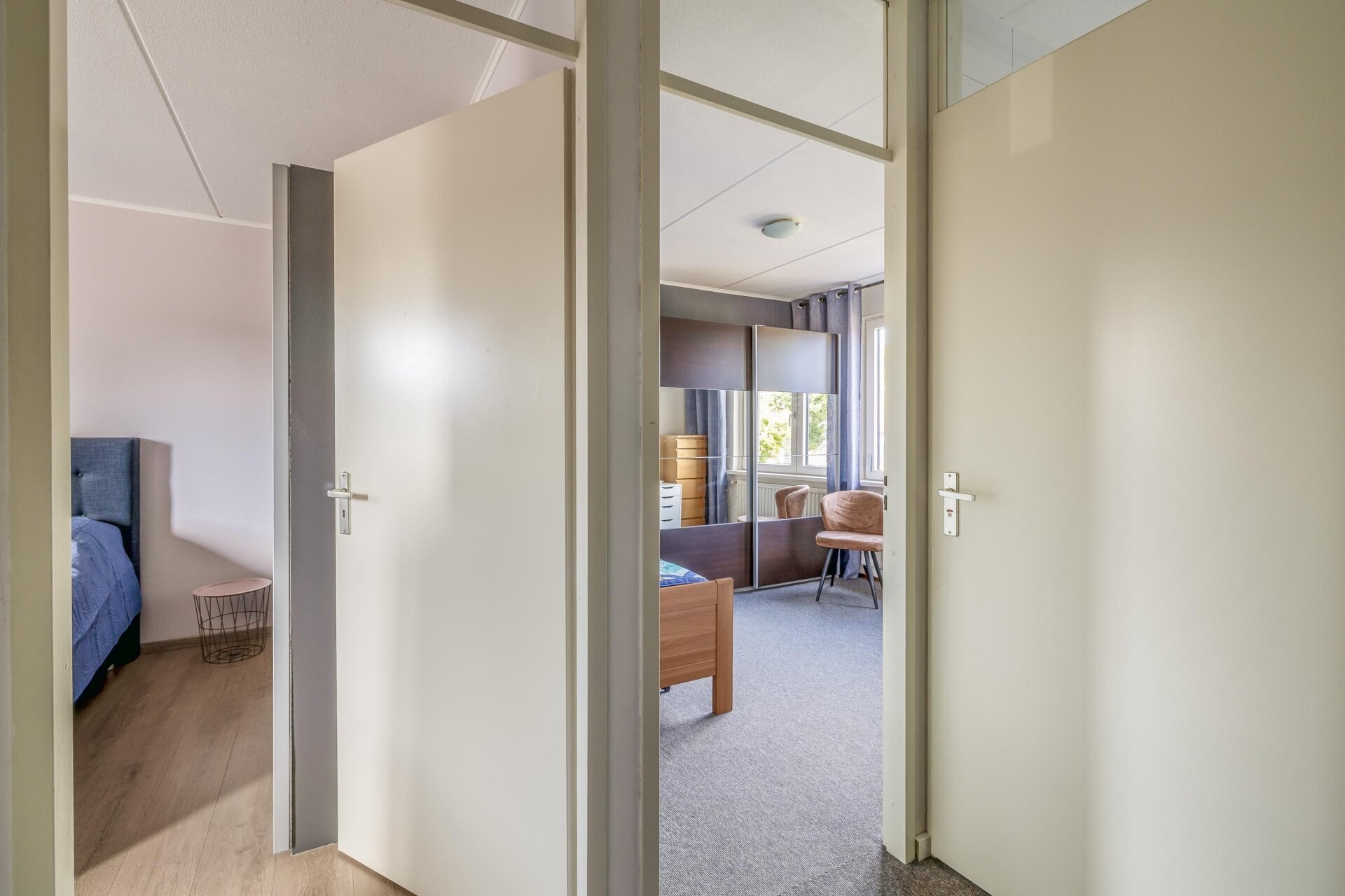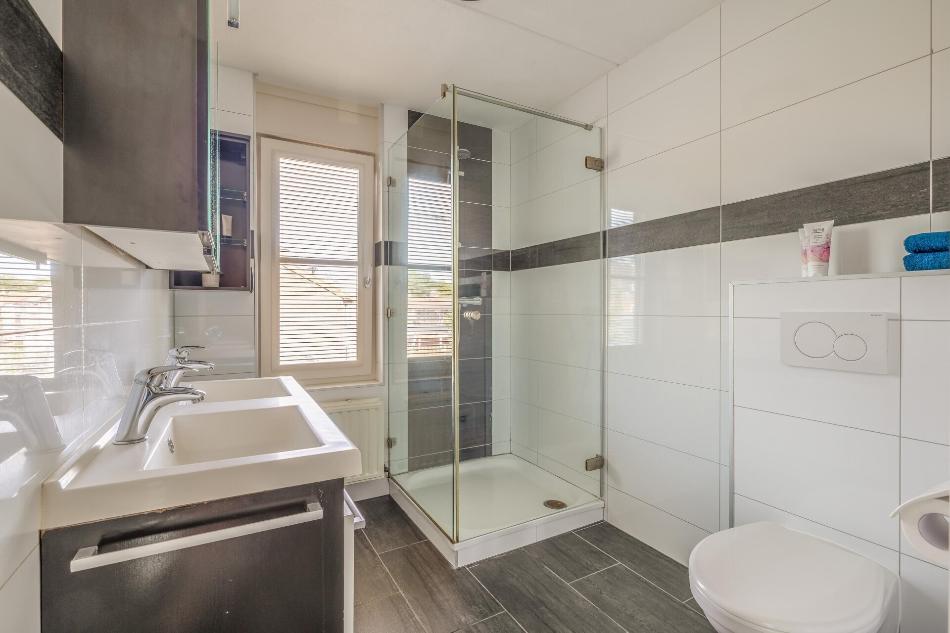 Op de eerste verdieping zijn twee ruime slaapkamers te vinden. De grootste slaapkamer ligt aan de voorzijde en biedt alle ruimte voor een tweepersoonsbed en een royale kledingkast, voorheen waren dit twee kamers. De tweede slaapkamer aan de achterzijde is perfect als kinderkamer, werkkamer of logeerkamer. De badkamer is praktisch ingericht met een douche, wastafel en toilet. Fijn detail: de bovenverdieping is voorzien van kunststof draai-kiep ramen met HR++-glas, wat onderhoudsvrij en extra isolerend is.