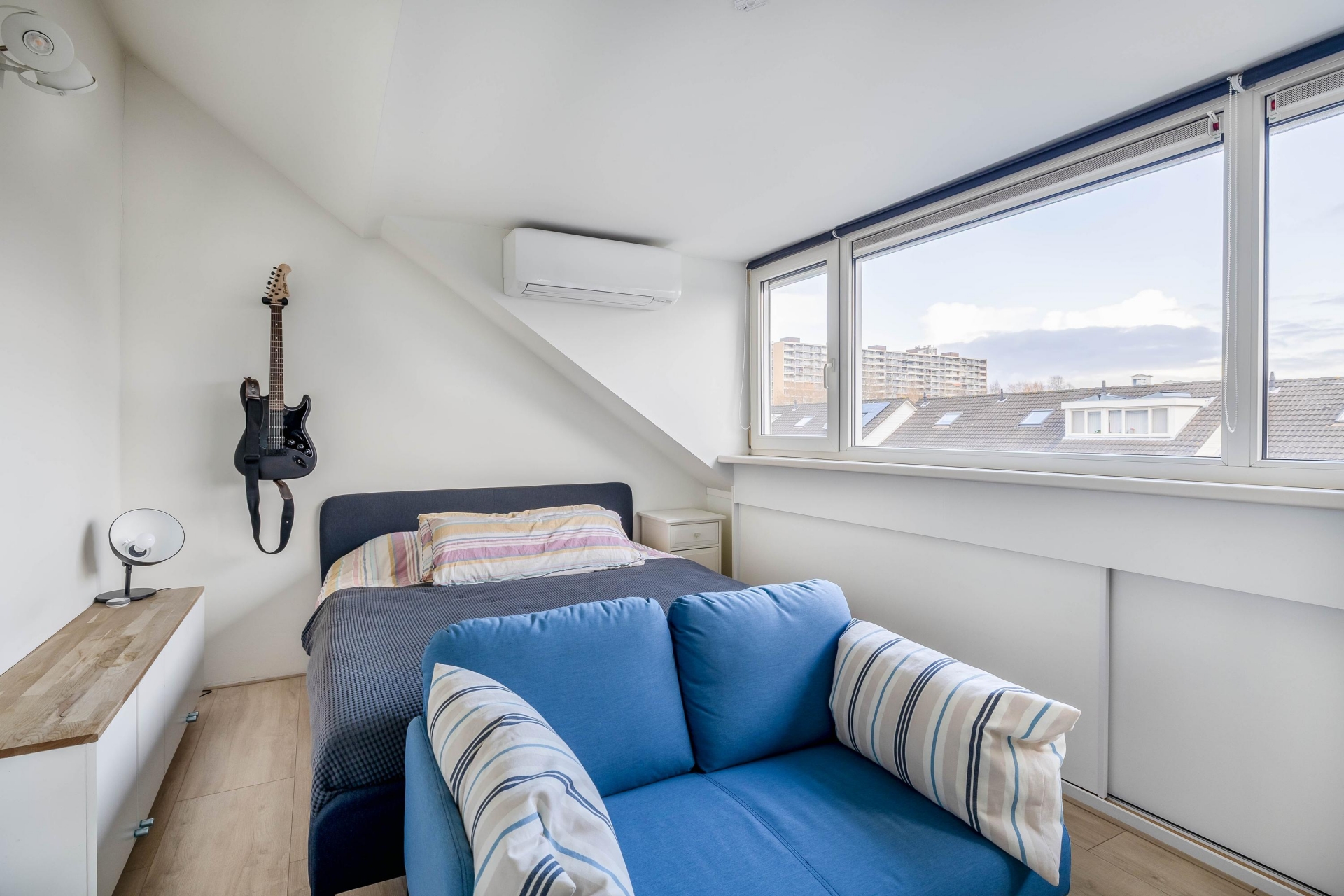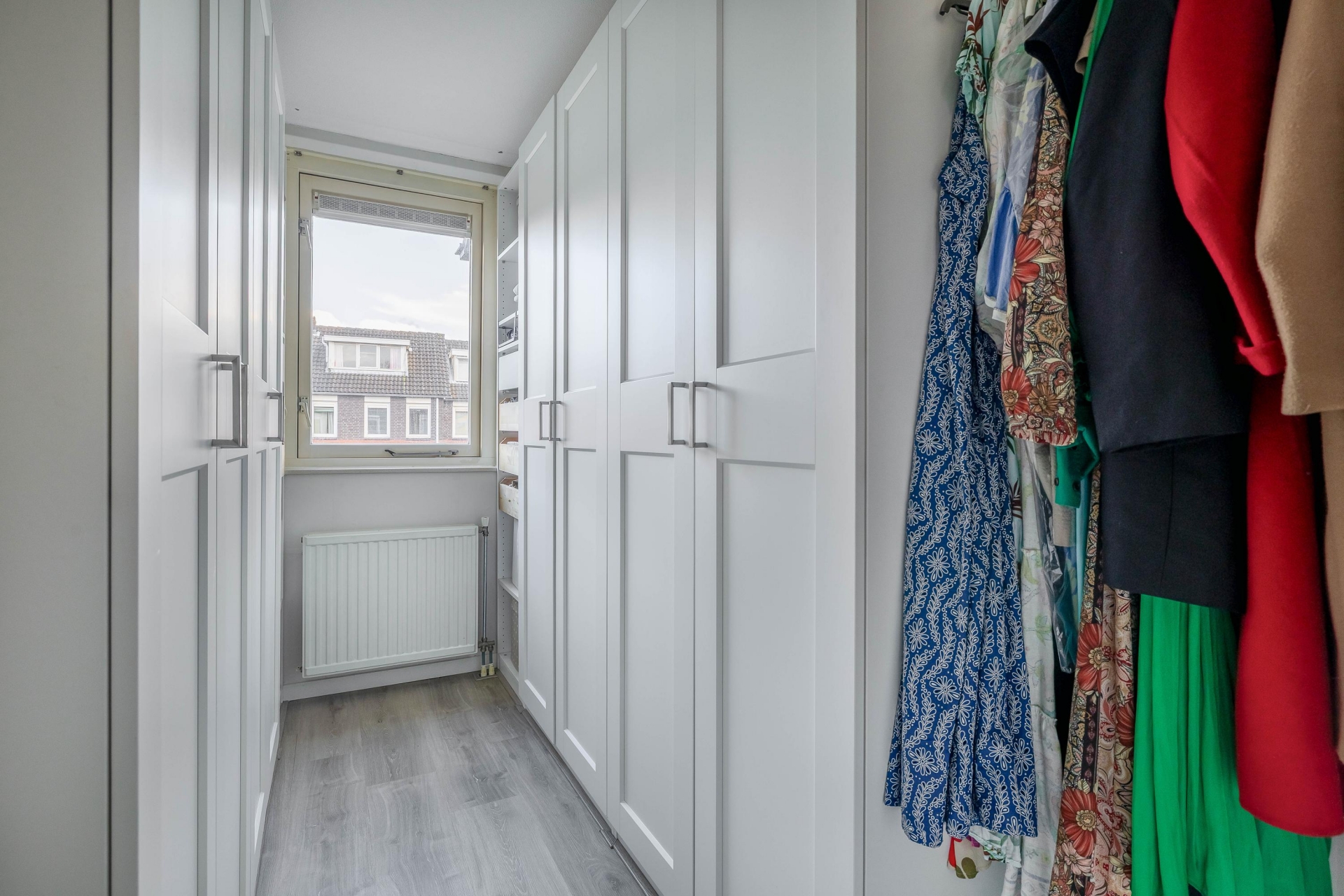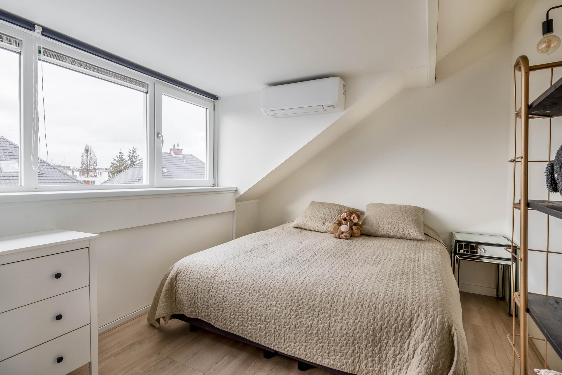 De woning beschikt over maar liefst vijf slaapkamers, verdeeld over de eerste en tweede verdieping. De grootste slaapkamer bevindt zich aan de achterzijde en biedt genoeg ruimte voor een kingsize bed en is voorzien van airco, de andere kamer is als inloopkast ingericht. Aan de voorzijde ligt nog een ruime slaapkamer, welke is ingericht als wasruimte. De badkamer is volledig vernieuwd en voorzien ligbad met douchewand, toilet, dubbel wastafelmeubel. De zolderkamers zijn ook ideaal als kinderkamer, werkkamer of logeerkamer. Dankzij de slimme indeling en het aantal kamers is dit huis flexibel in gebruik, perfect voor een groeiend gezin of werken vanuit huis. Beide zolderkamers zijn voorzien van airco.