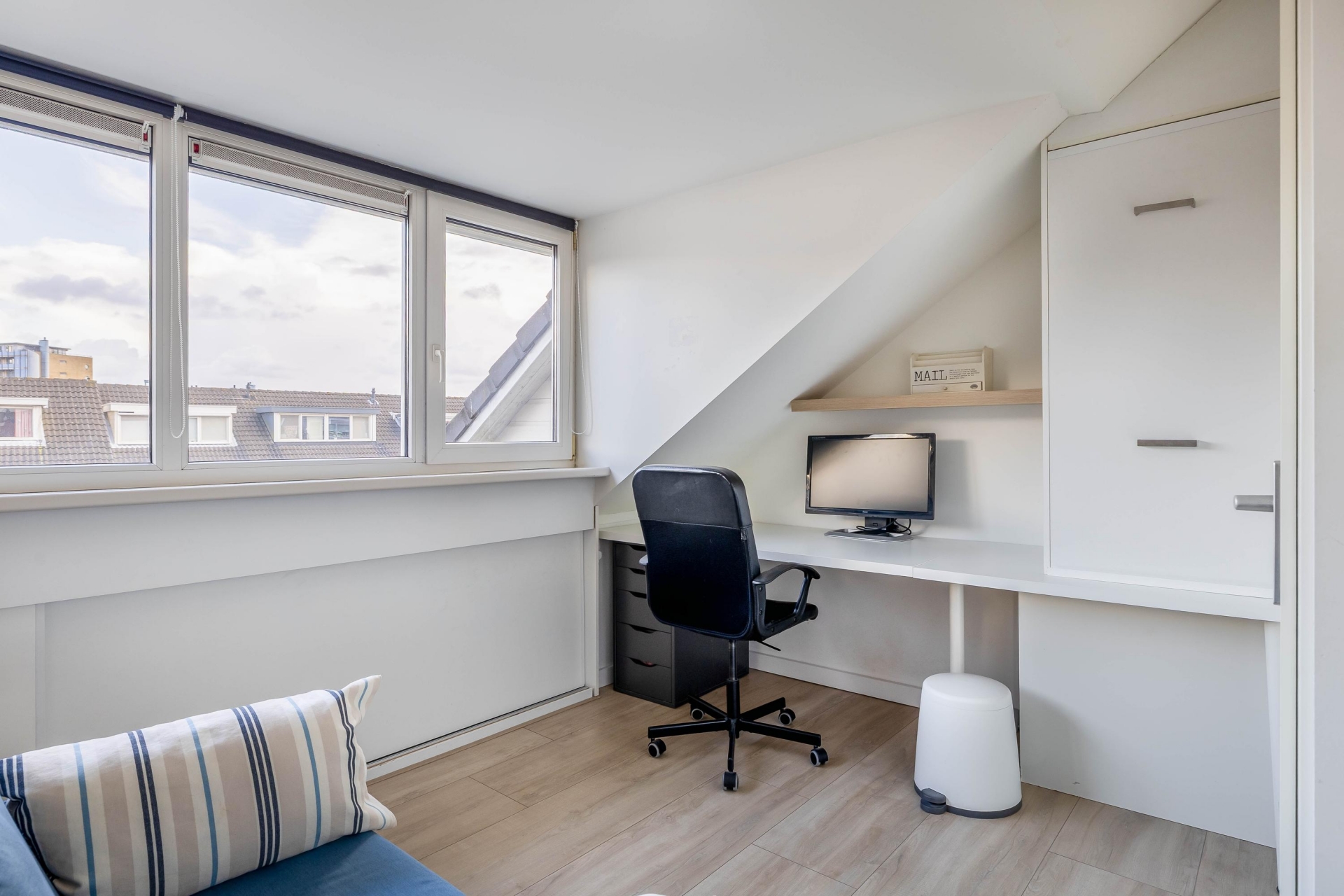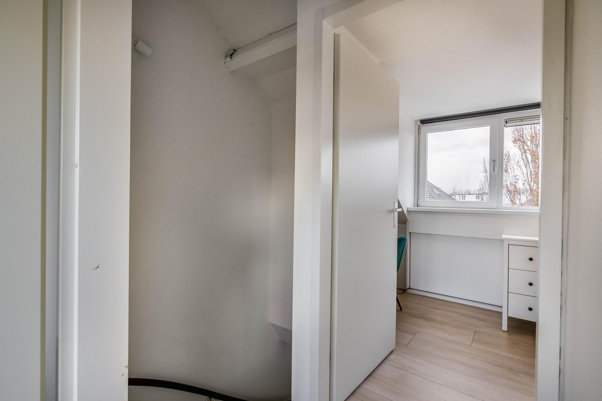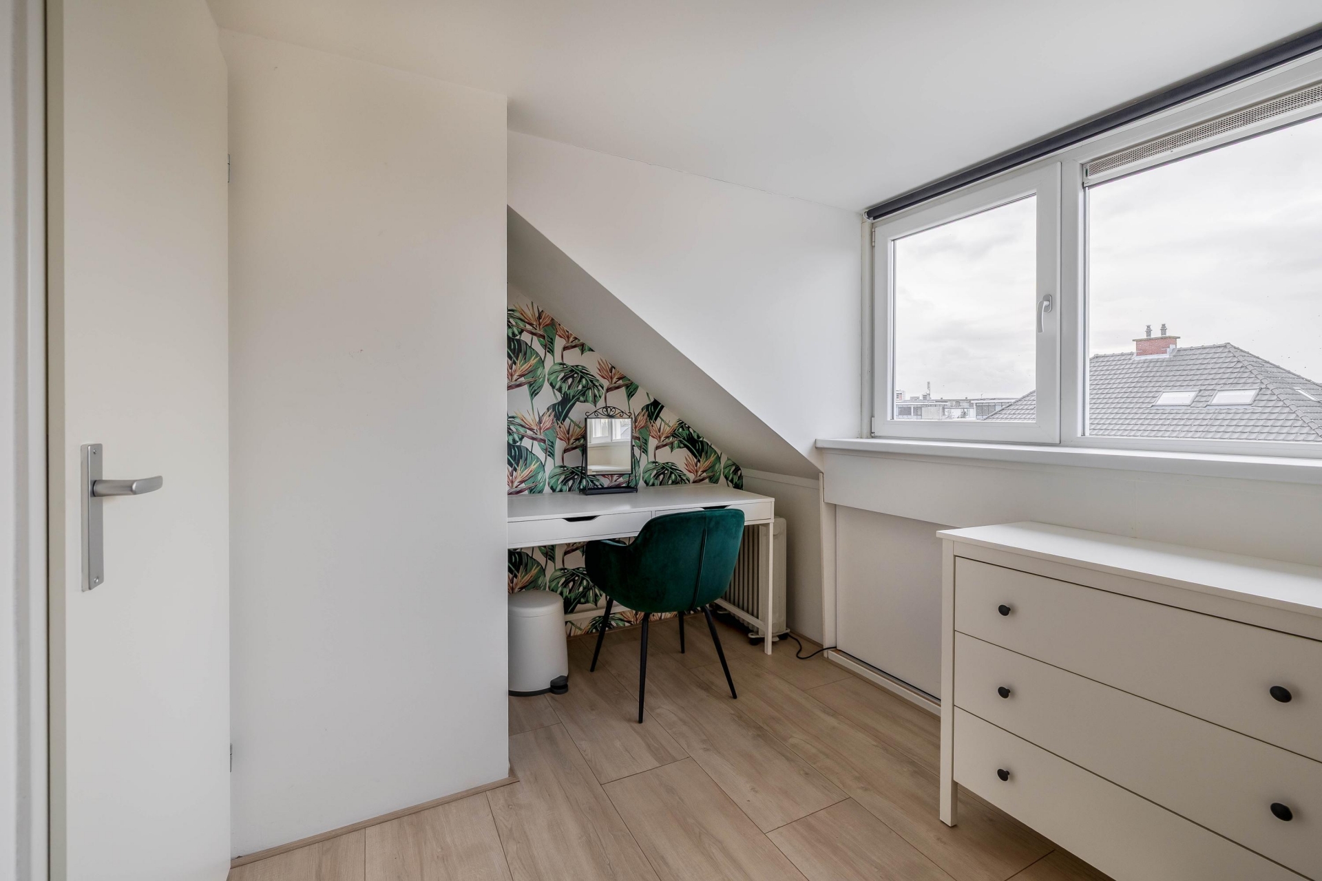 De woning beschikt over maar liefst vijf slaapkamers, verdeeld over de eerste en tweede verdieping. De grootste slaapkamer bevindt zich aan de achterzijde en biedt genoeg ruimte voor een kingsize bed en is voorzien van airco, de andere kamer is als inloopkast ingericht. Aan de voorzijde ligt nog een ruime slaapkamer, welke is ingericht als wasruimte. De badkamer is volledig vernieuwd en voorzien ligbad met douchewand, toilet, dubbel wastafelmeubel. De zolderkamers zijn ook ideaal als kinderkamer, werkkamer of logeerkamer. Dankzij de slimme indeling en het aantal kamers is dit huis flexibel in gebruik, perfect voor een groeiend gezin of werken vanuit huis. Beide zolderkamers zijn voorzien van airco.