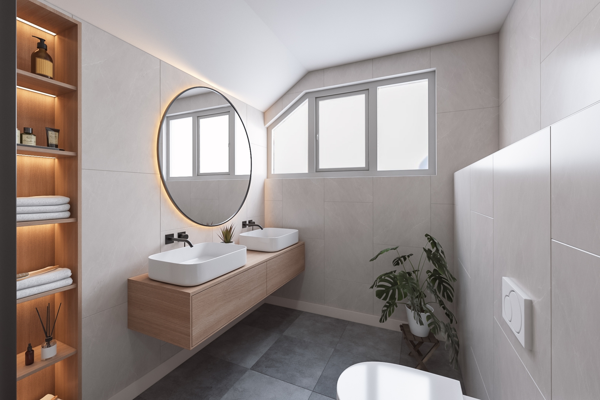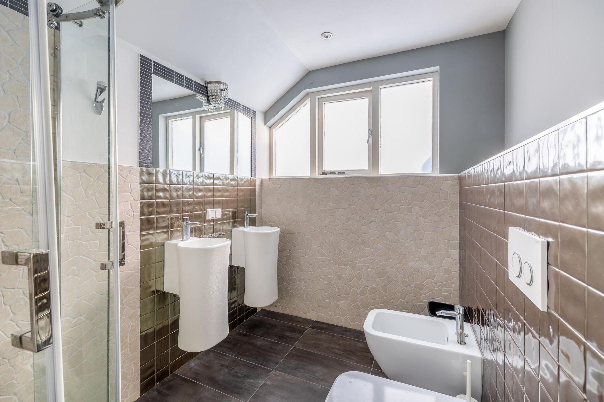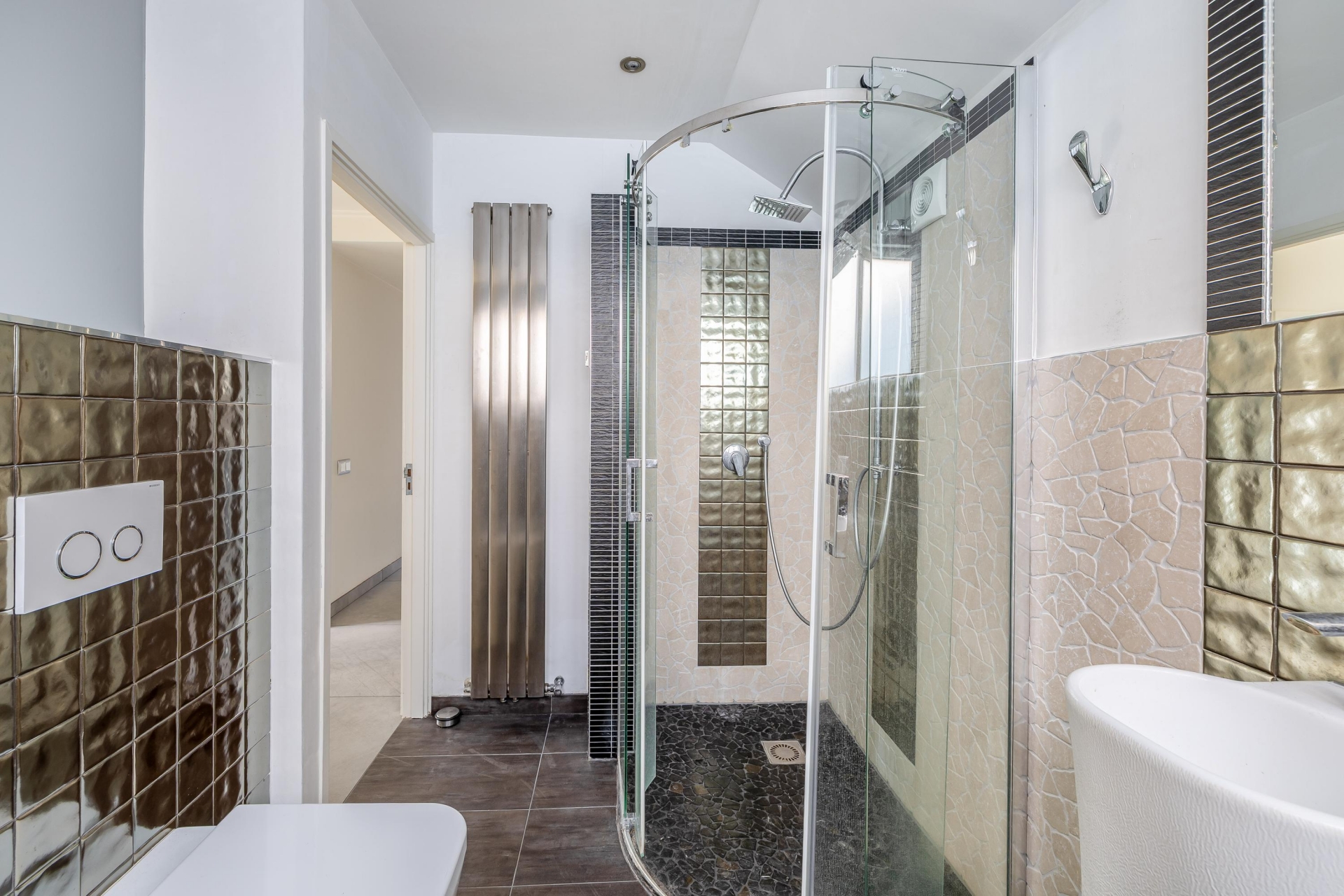 De twee slaapkamers zijn ruim van formaat (ca. 10 m2 en 15 m²). Beide slaapkamers hebben grote raampartijen wat zorgt voor veel lichtinval. De badkamer is voorzien van vloerverwarming en heeft een inloopdouche, dubbele wastafel, bidet en toilet.