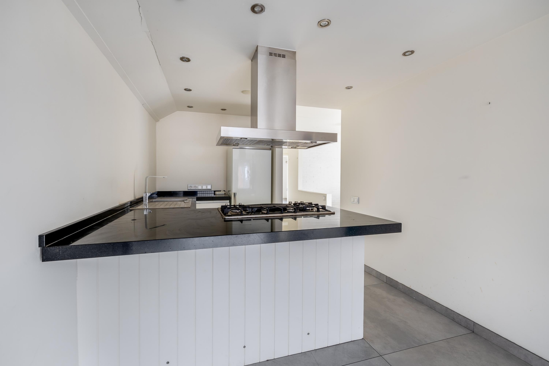 De open keuken sluit naadloos aan op de living en is uitgevoerd in een lichte kleurstelling. Er is voldoende kastruimte en werkblad aanwezig, ideaal voor wie graag kookt maar ook van gezelligheid houdt tijdens het tafelen. Door de open indeling blijf je altijd in contact met je gasten.