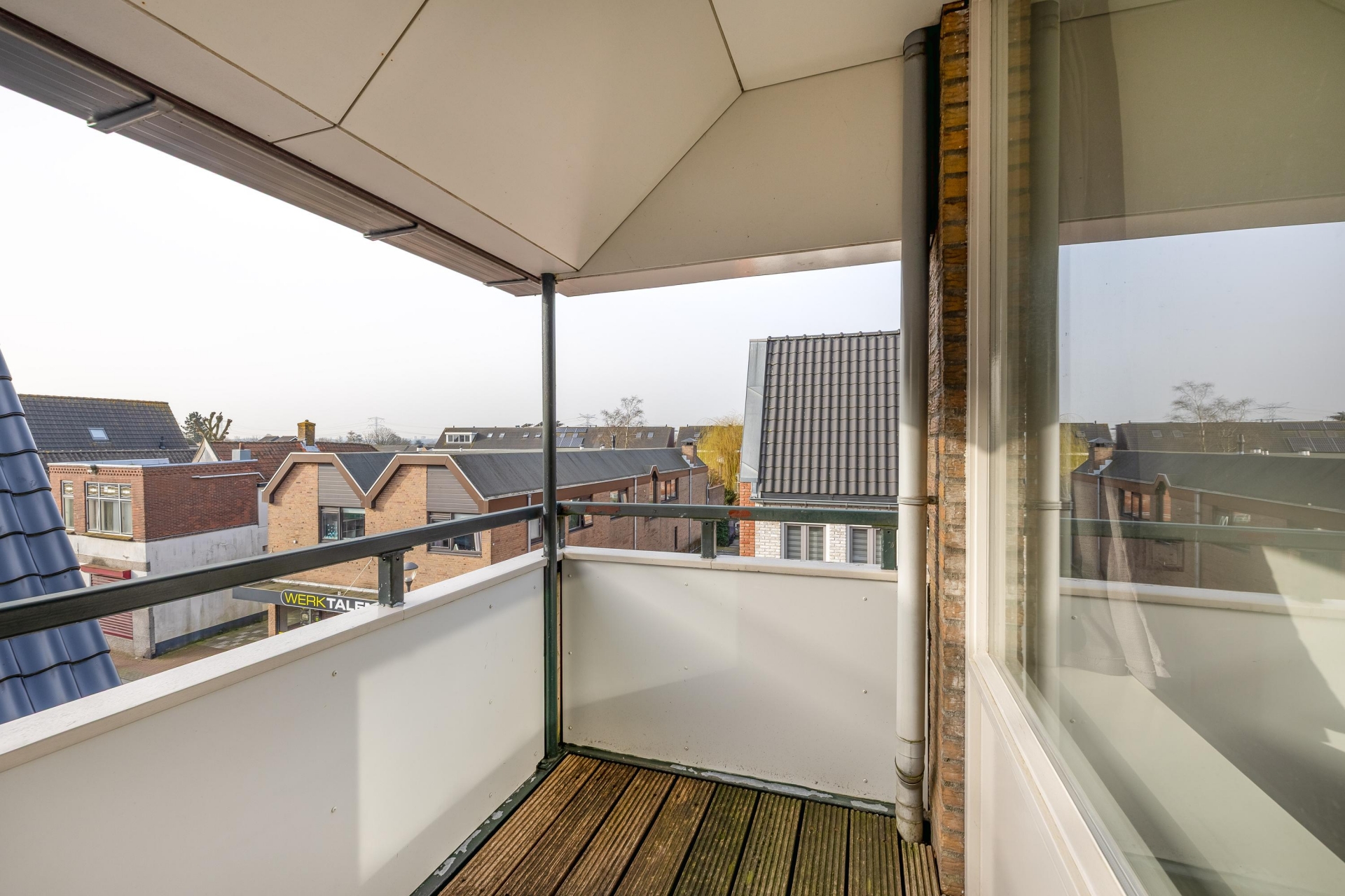 Vanuit de woonkamer stap je zo het balkon op, een heerlijke verlenging van je leefruimte in de warmere maanden.