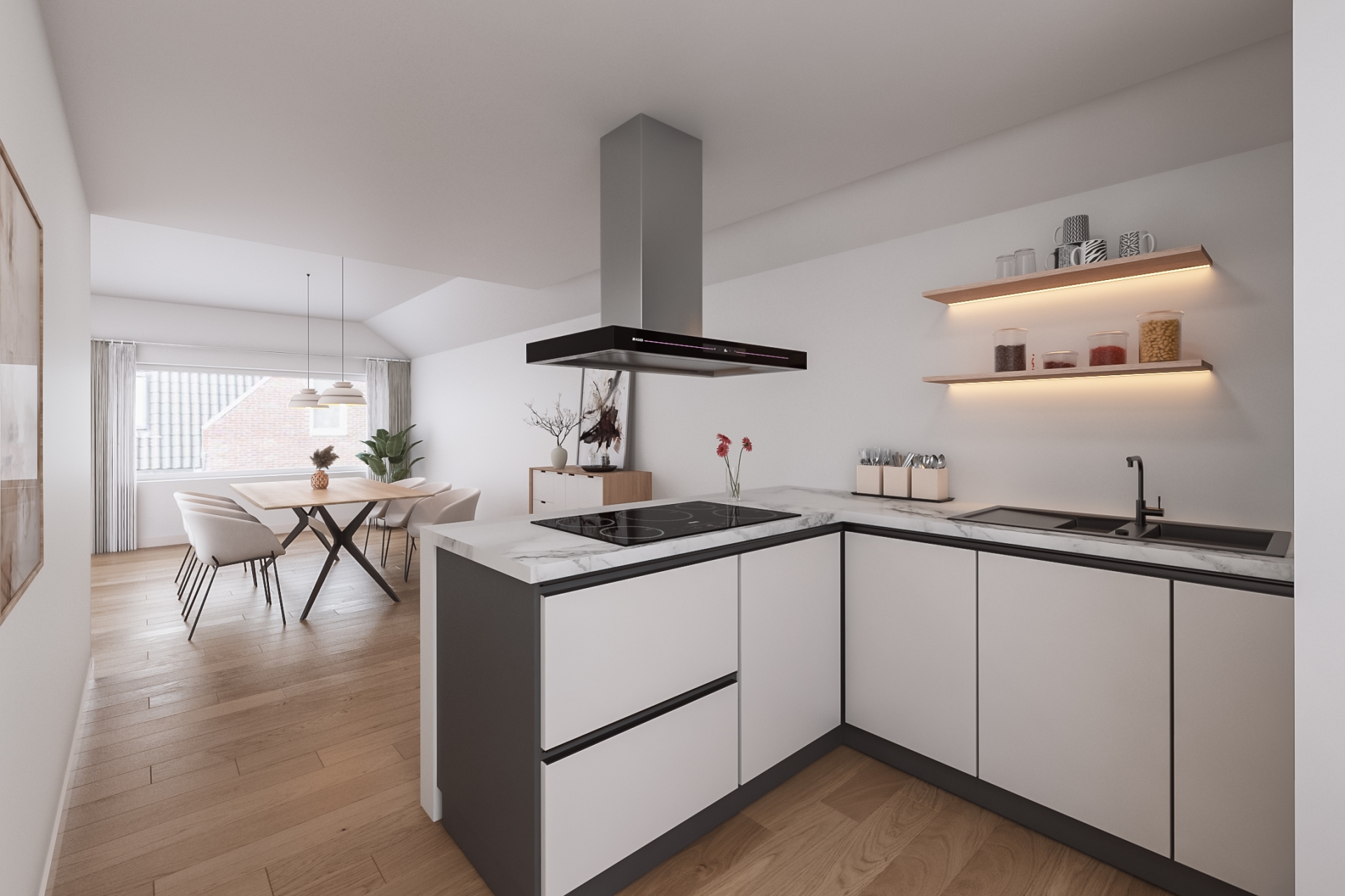 LICHTE WOONKAMER MET OPEN KEUKEN