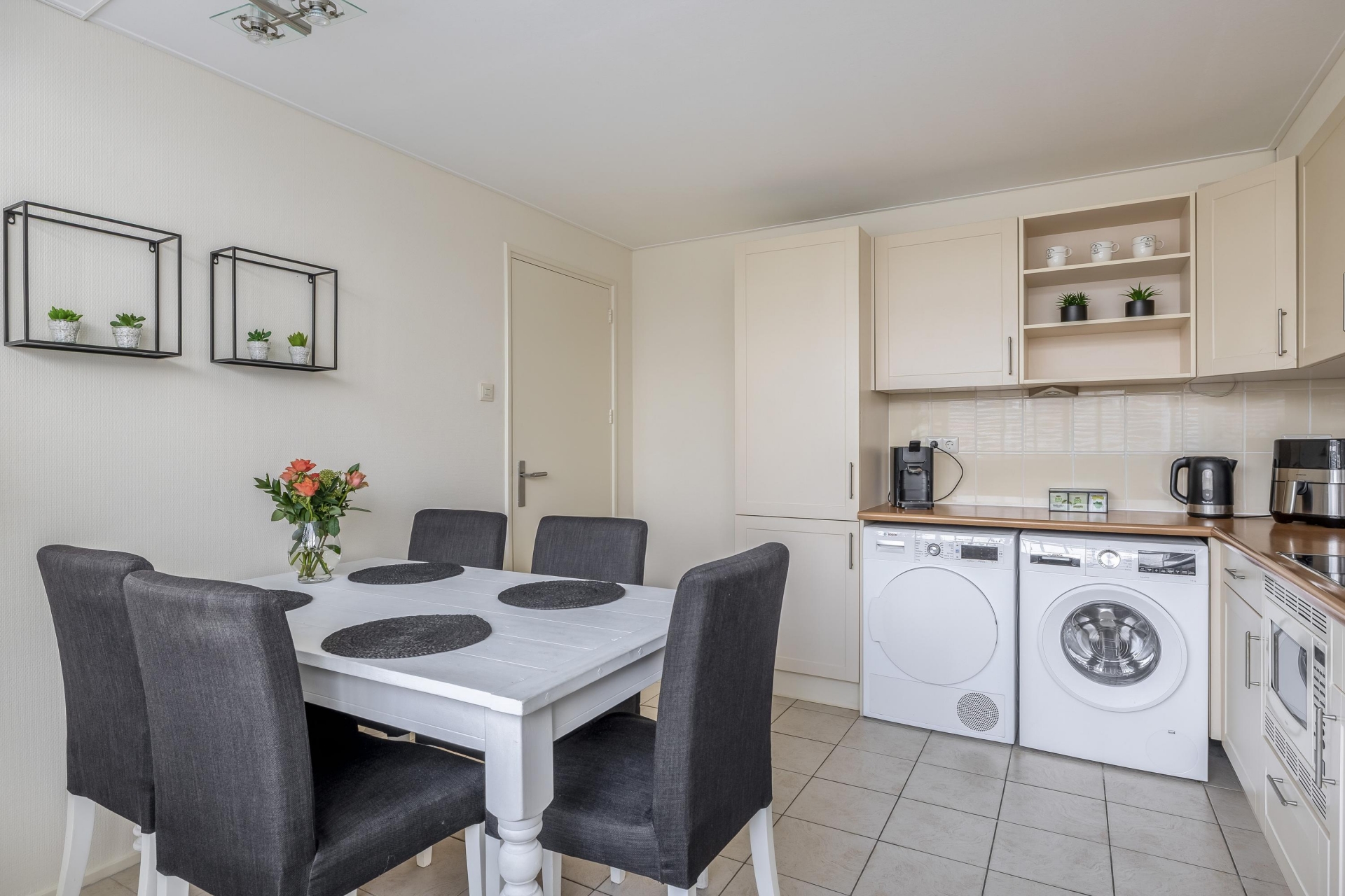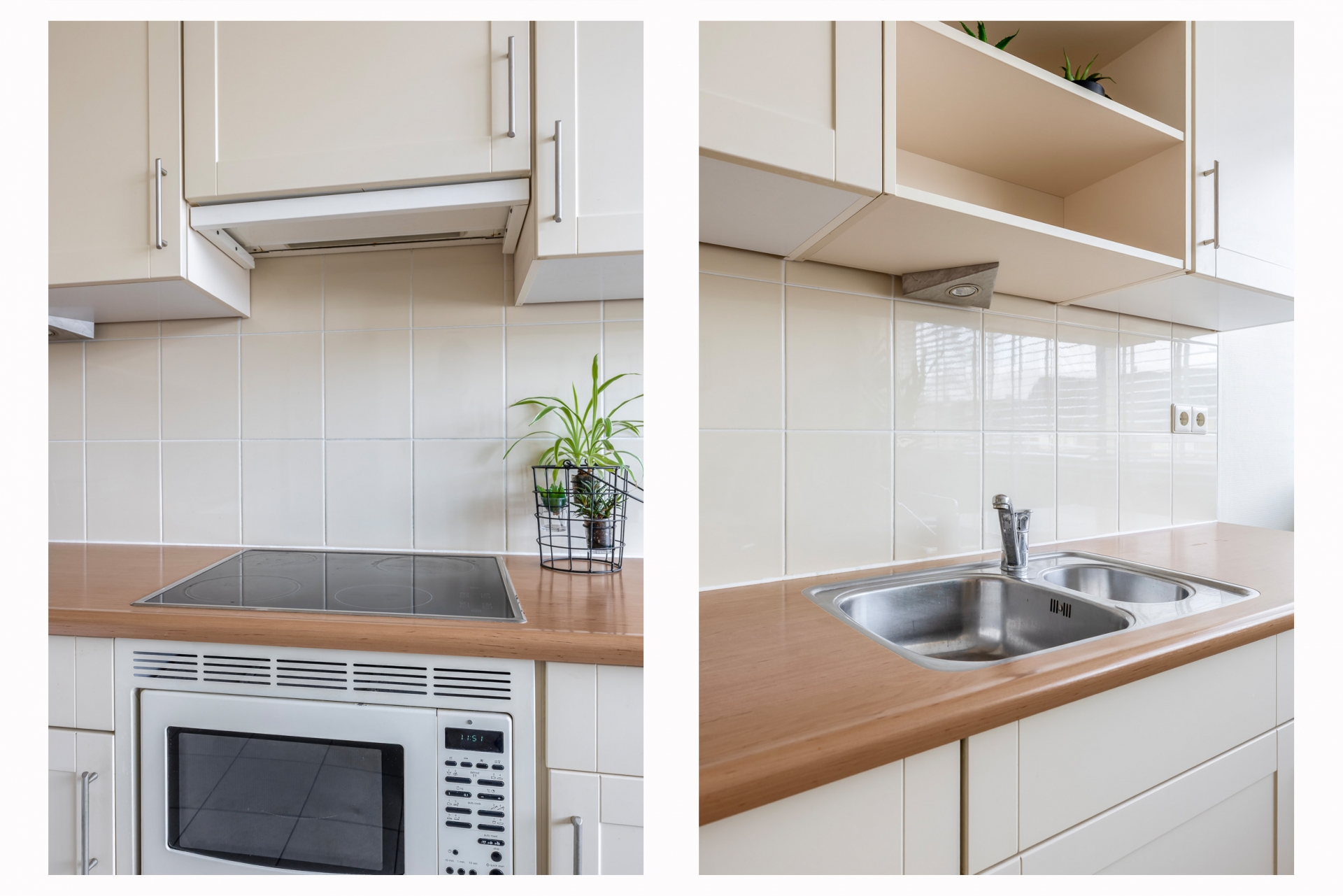 De aparte keuken bevindt zich aan de achterzijde van de woning en is ruim opgezet. Dankzij het grote raam kijk je uit over de daken van Bergschenhoek en komt ook hier het daglicht volop binnen. De opstelling is functioneel met voldoende werkruimte, boven- en onderkasten, inbouwapparatuur én plek voor een gezellige eettafel. Hier kun je rustig koken, eten en bijpraten terwijl je de woonruimte toch gescheiden houdt.