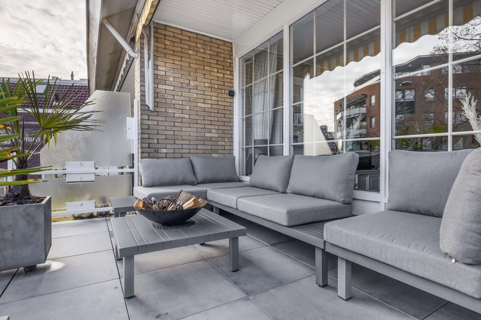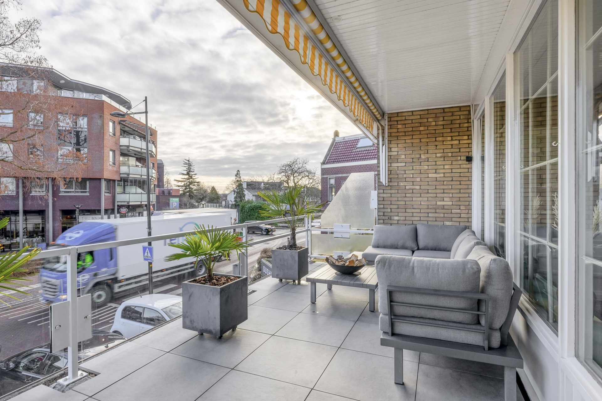 Via de woonkamer stap je direct het balkon op. Met een oppervlakte van circa 17 m² is dit geen standaard balkon, maar echt een verlengstuk van je leefruimte. De ligging op het oosten betekent dat je hier 's ochtends en begin van de middag in het zonnetje zit – ideaal voor een ontbijt buiten of een rustige koffiepauze. De glasbalustrade zorgt voor een ruimtelijk gevoel en een vrij zicht over het centrum.