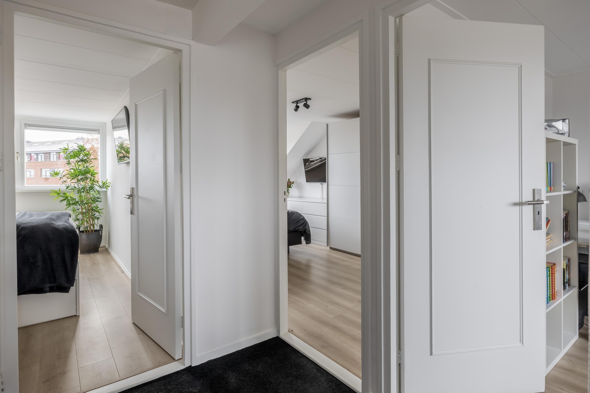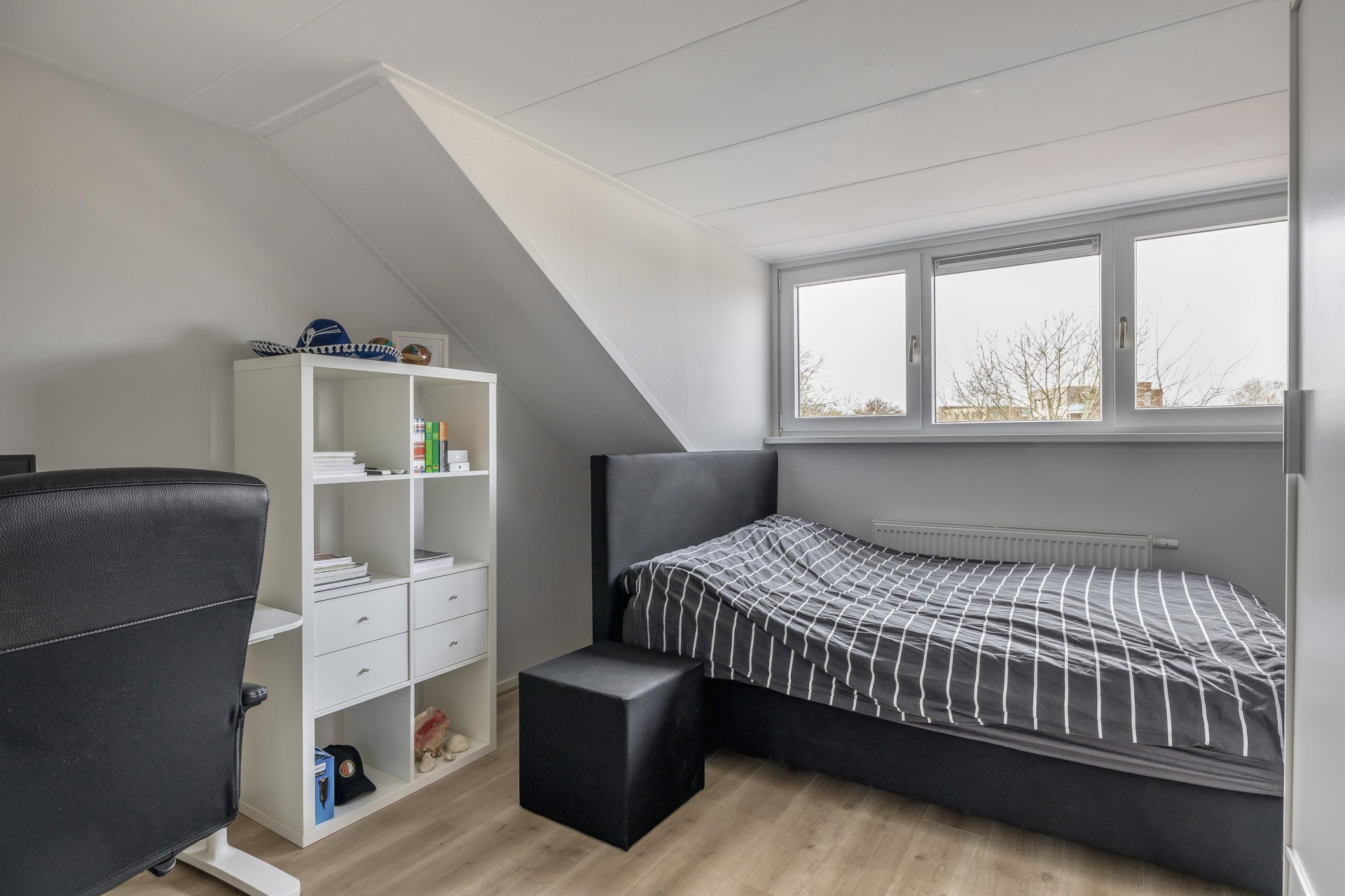 Op de tweede verdieping bevinden zich drie ruime slaapkamers en de badkamer. De grootste slaapkamer ligt aan de voorzijde, meet bijna 15 m² en heeft een mooie breedte waardoor er eenvoudig een groot bed en kledingkast geplaatst kunnen worden. De tweede slaapkamer ligt ernaast en is eveneens ruim (ca. 13 m²) – perfect als extra slaapkamer of werkkamer. Aan de achterzijde bevindt zich de derde kamer (ca. 12 m²), ideaal als logeer-, hobby- of werkkamer.