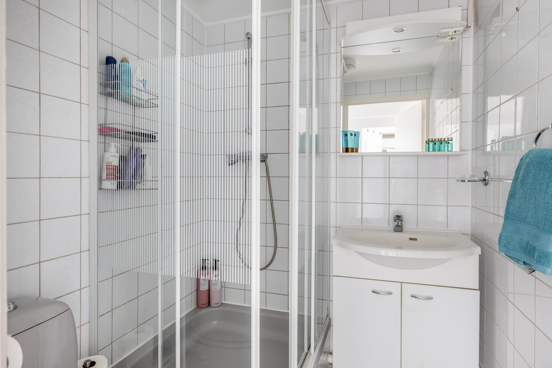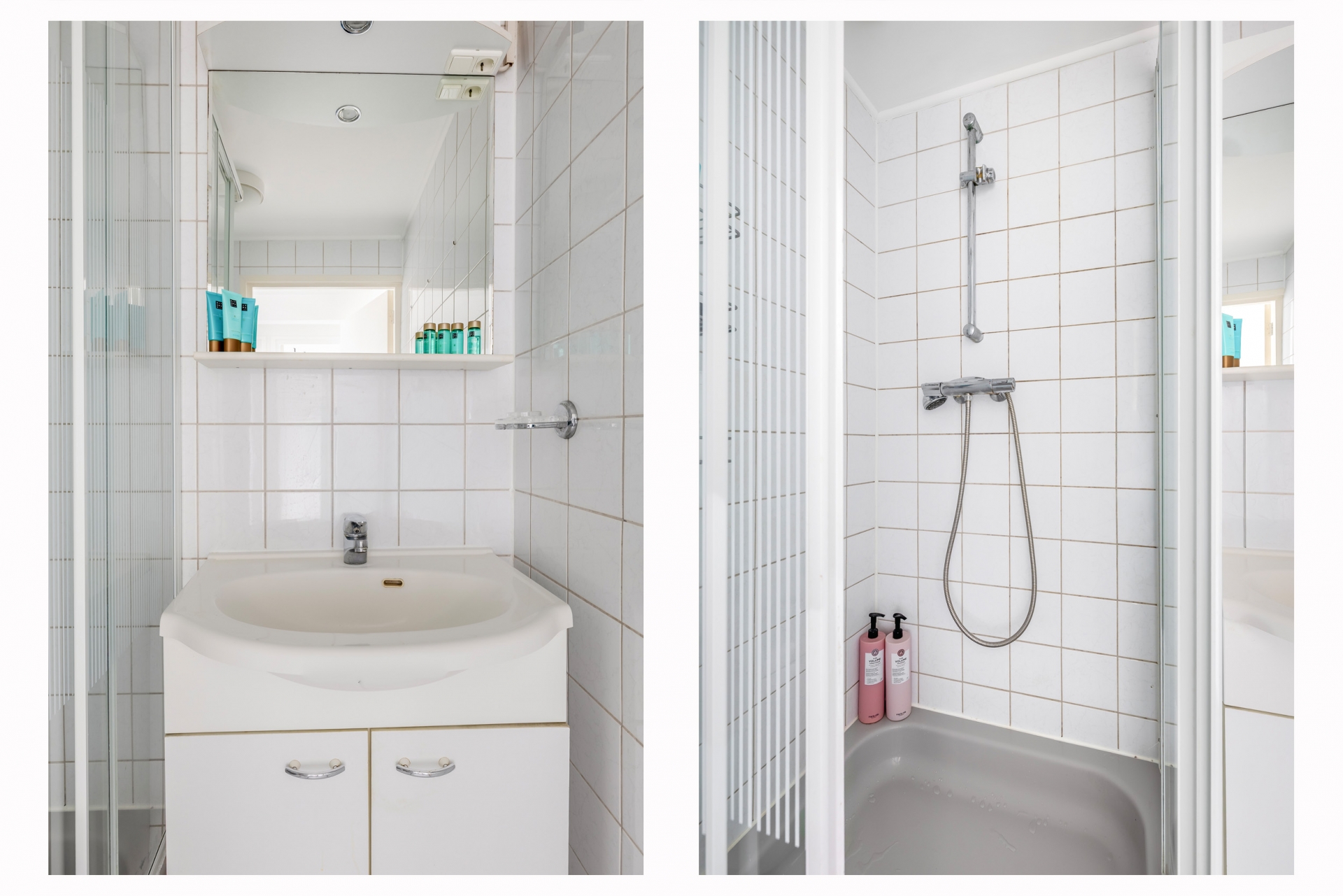 De badkamer is compact maar functioneel ingedeeld met een douche, wastafel en tweede toilet. Ook hier is alles keurig afgewerkt en goed onderhouden.