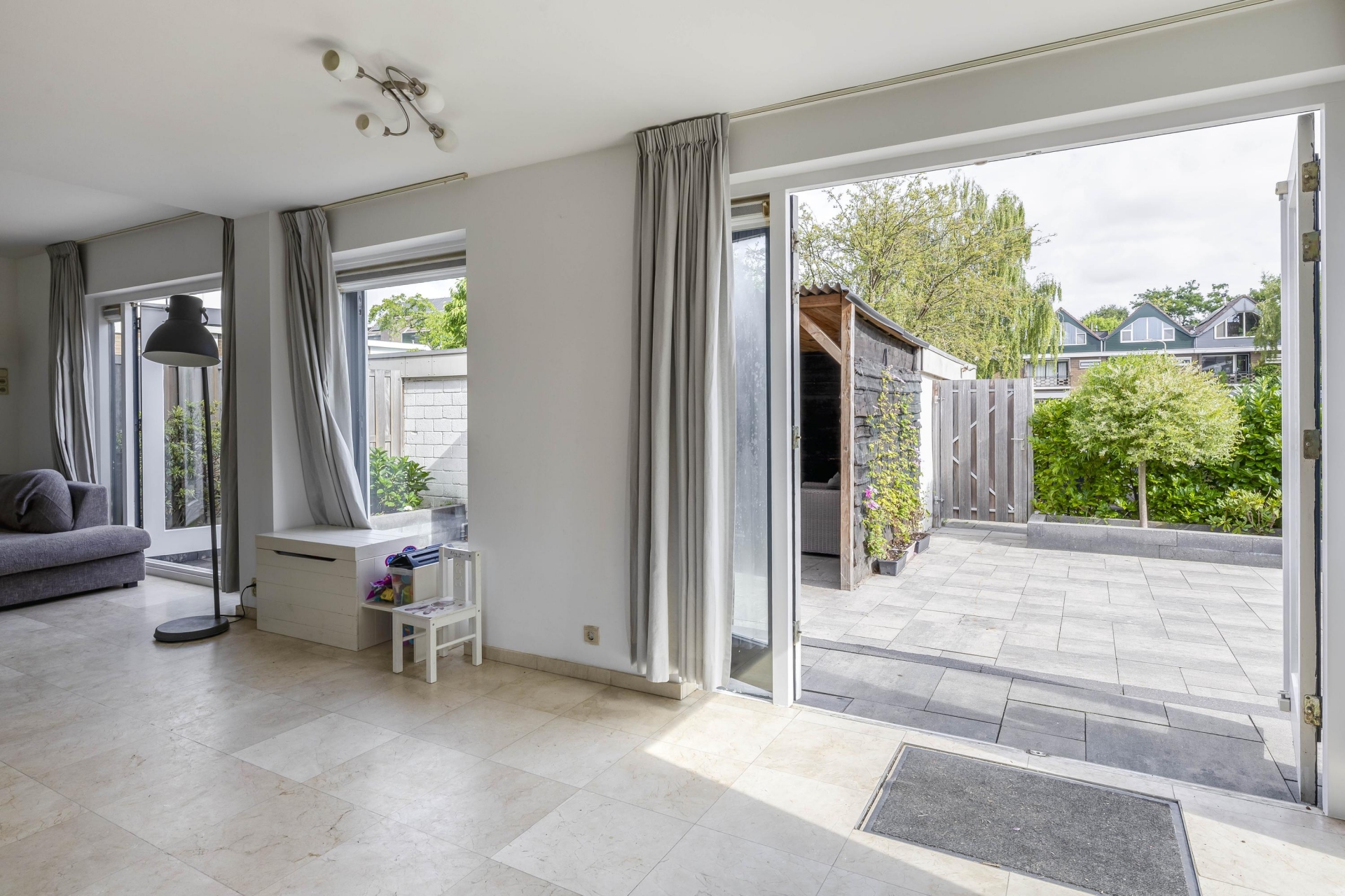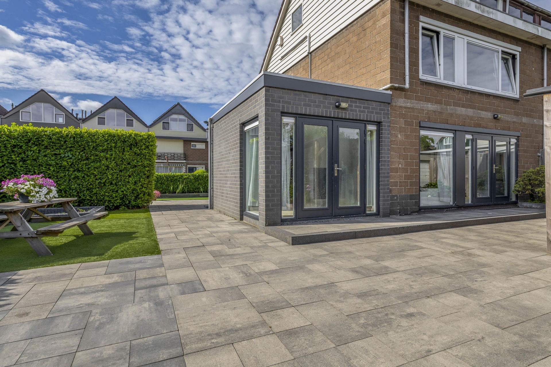 De begane grond is verrassend licht dankzij de vele raampartijen en de gunstige hoekligging. De ruime woonkamer heeft een open uitstraling en biedt genoeg plek voor een royale zithoek en een grote eettafel. De tuingerichte indeling zorgt ervoor dat je het buitengevoel naar binnen haalt – via meerdere openslaande deuren sta je zo in de tuin.