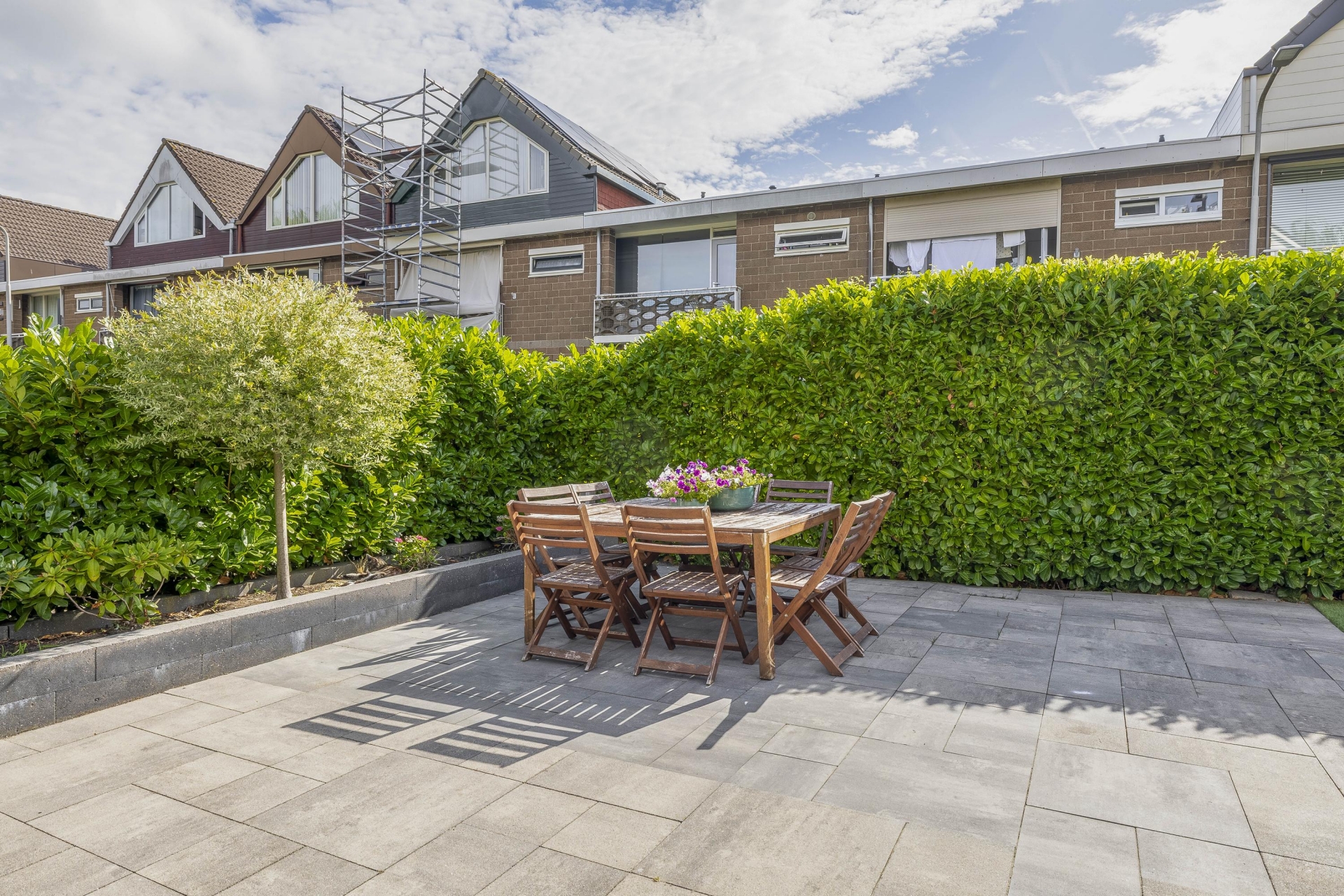 Wat dit huis écht onderscheidt is de buitenruimte. Zelden zie je zulke royale tuinen rondom een woning in deze prijsklasse. De achtertuin is gelegen op het noorden, maar dankzij de vrije ligging en grootte vang je hier de hele dag zon – van ochtendzon in de voortuin tot avondzon op het terras achterin. De tuin is netjes aangelegd met sierbestrating, kunstgras, borders én een fijne zithoek onder een houten overkapping.