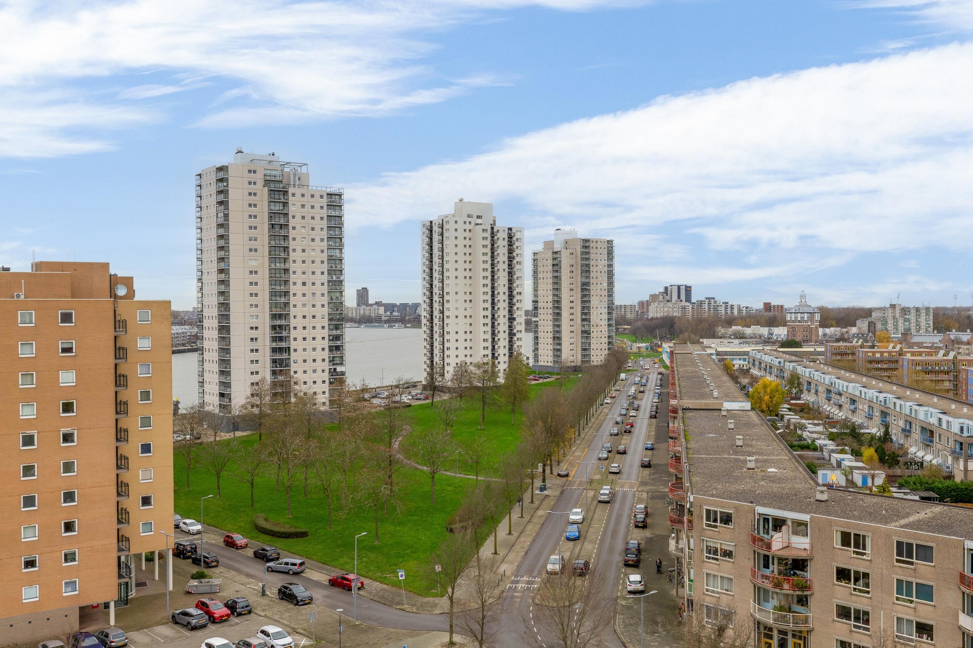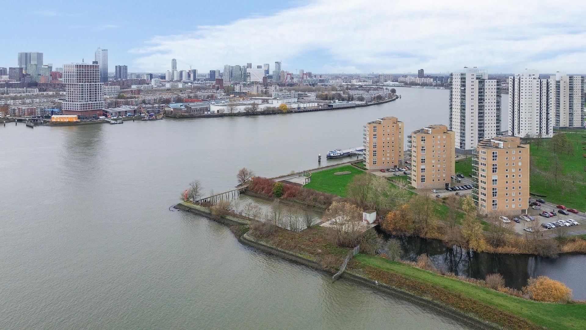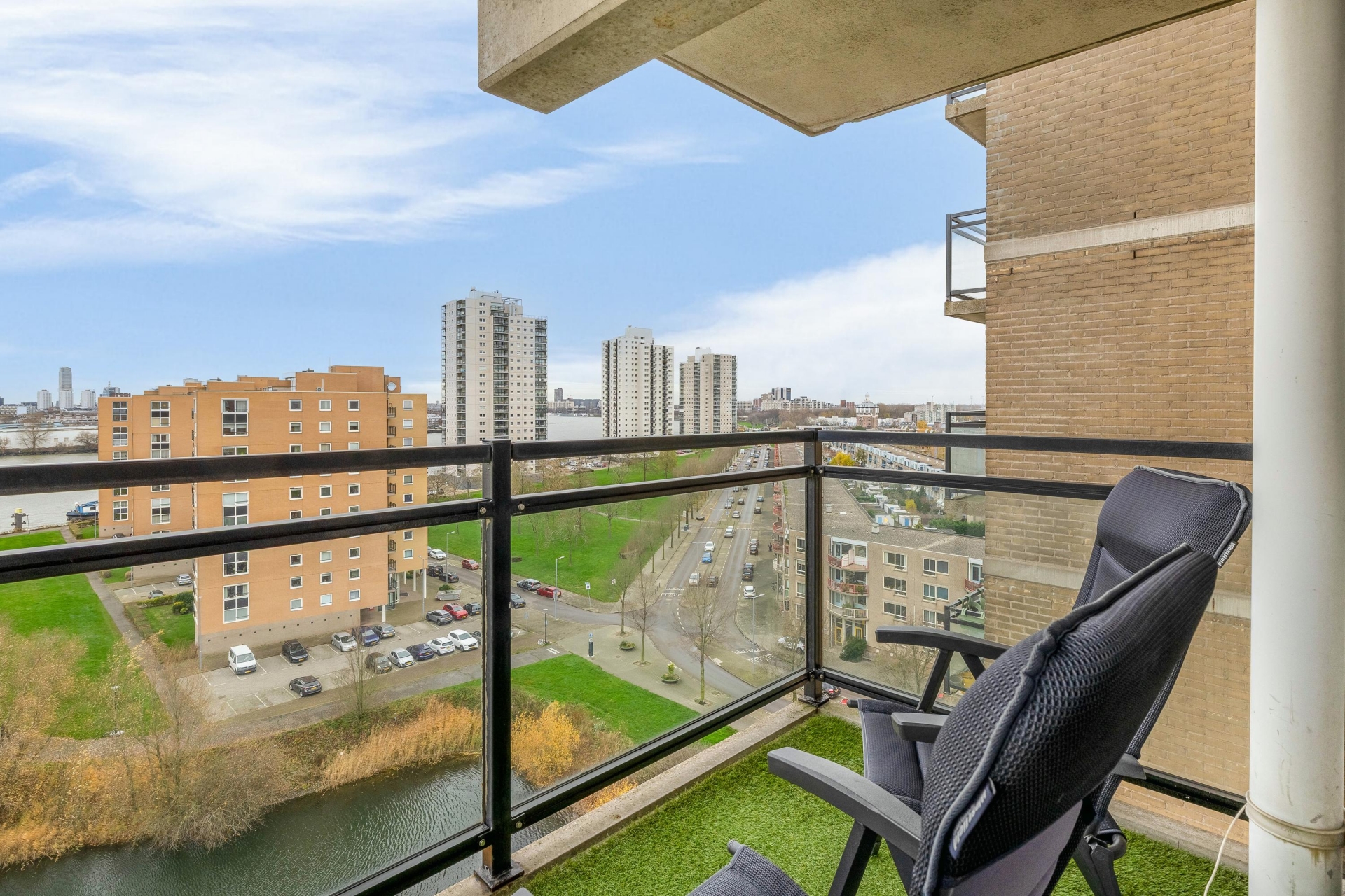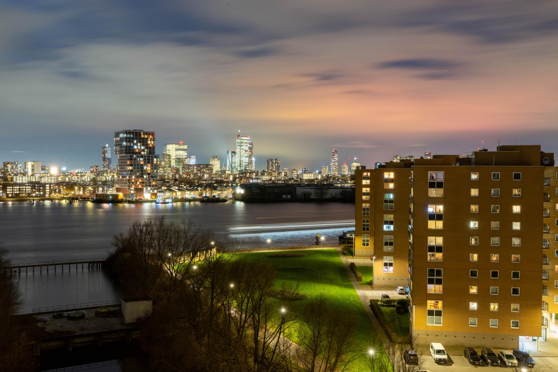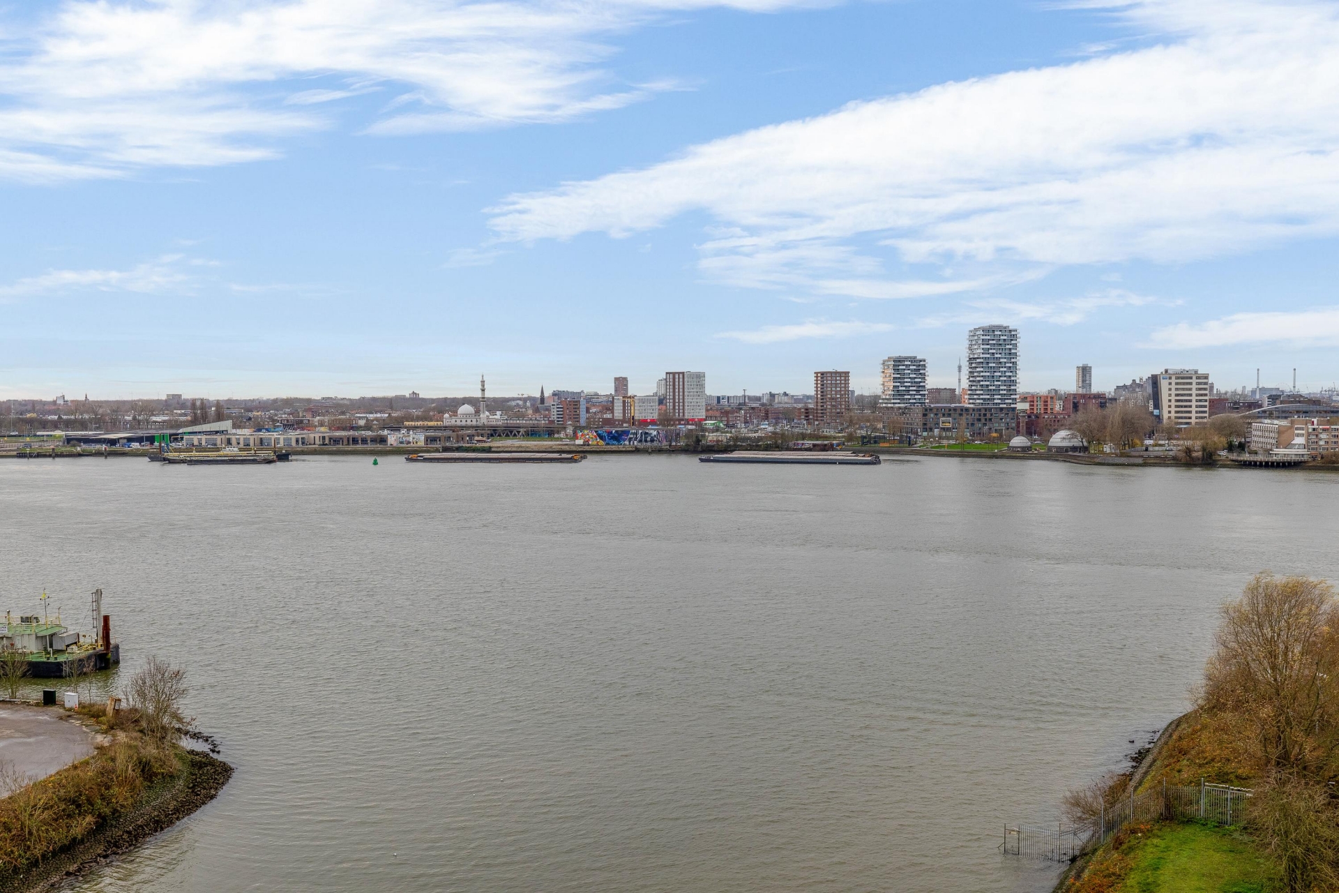- Uitzicht over de skyline van Rotterdam en de Maas