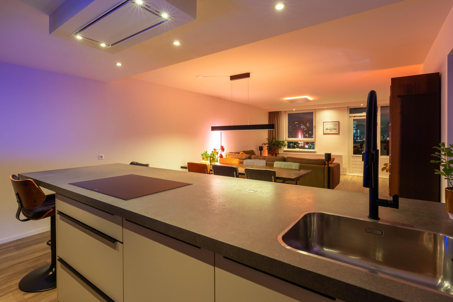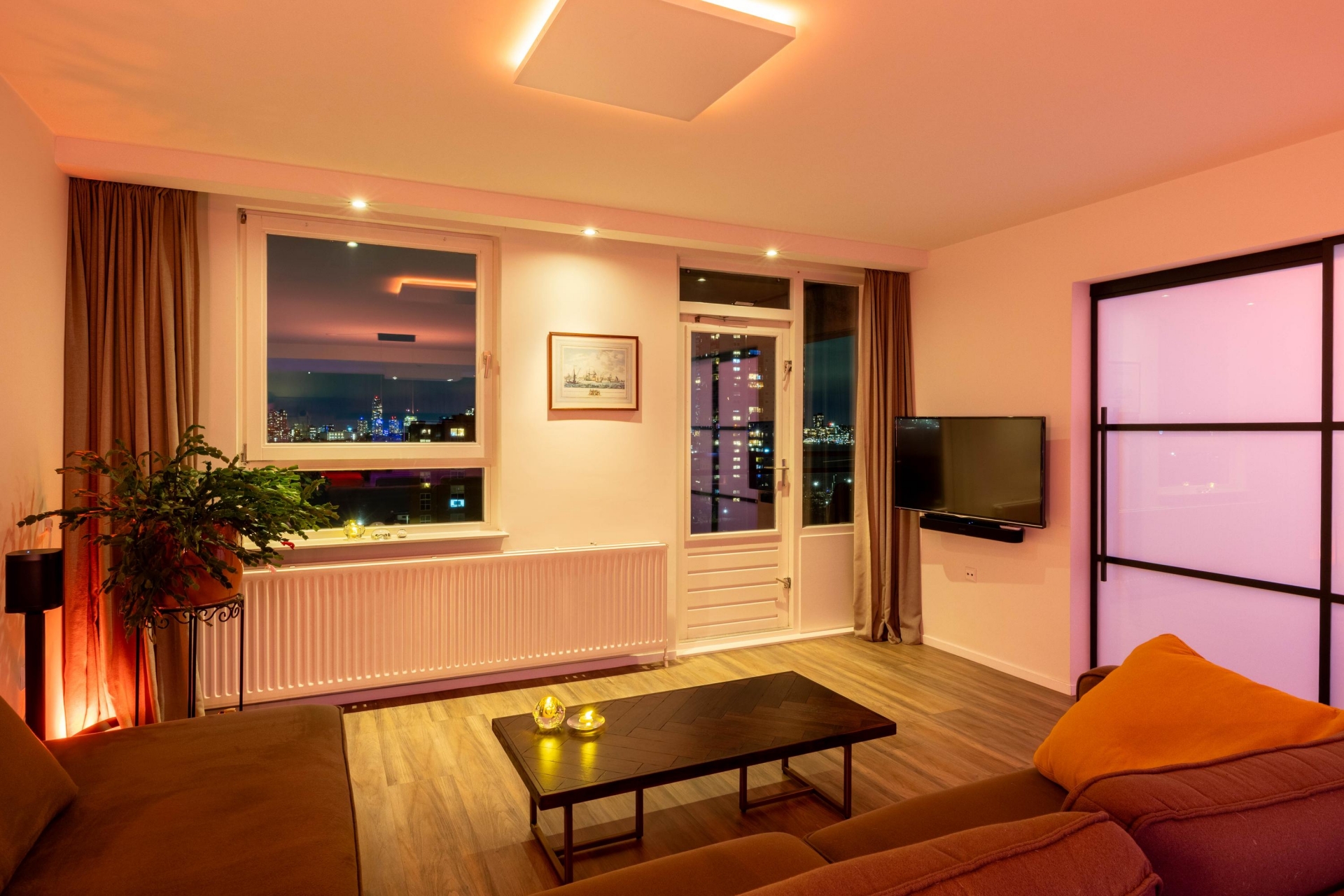 Via de afgesloten centrale entree met dubbele liftinstallatie bereik je dit goed ingedeelde 3-kamer appartement. Door de grote ramen komt het daglicht naar binnen, wat zorgt voor een open en lichte sfeer in de hele woning. De woonkamer is ruim van opzet en heeft een mooi vrij uitzicht richting de Maas en de skyline van Rotterdam. De woonkamer loopt over in de keuken (2018), die is voorzien van diverse luxe inbouwapparatuur van AEG, een wijnklimaatkast en voldoende kastruimte.