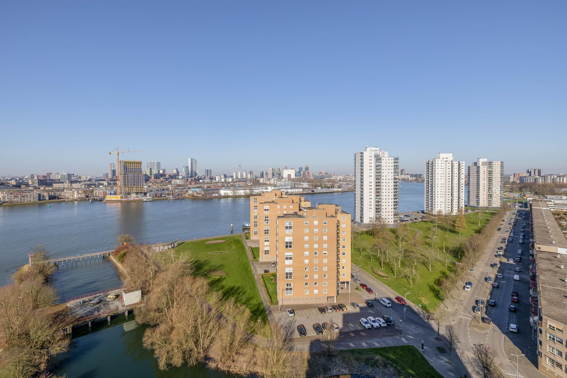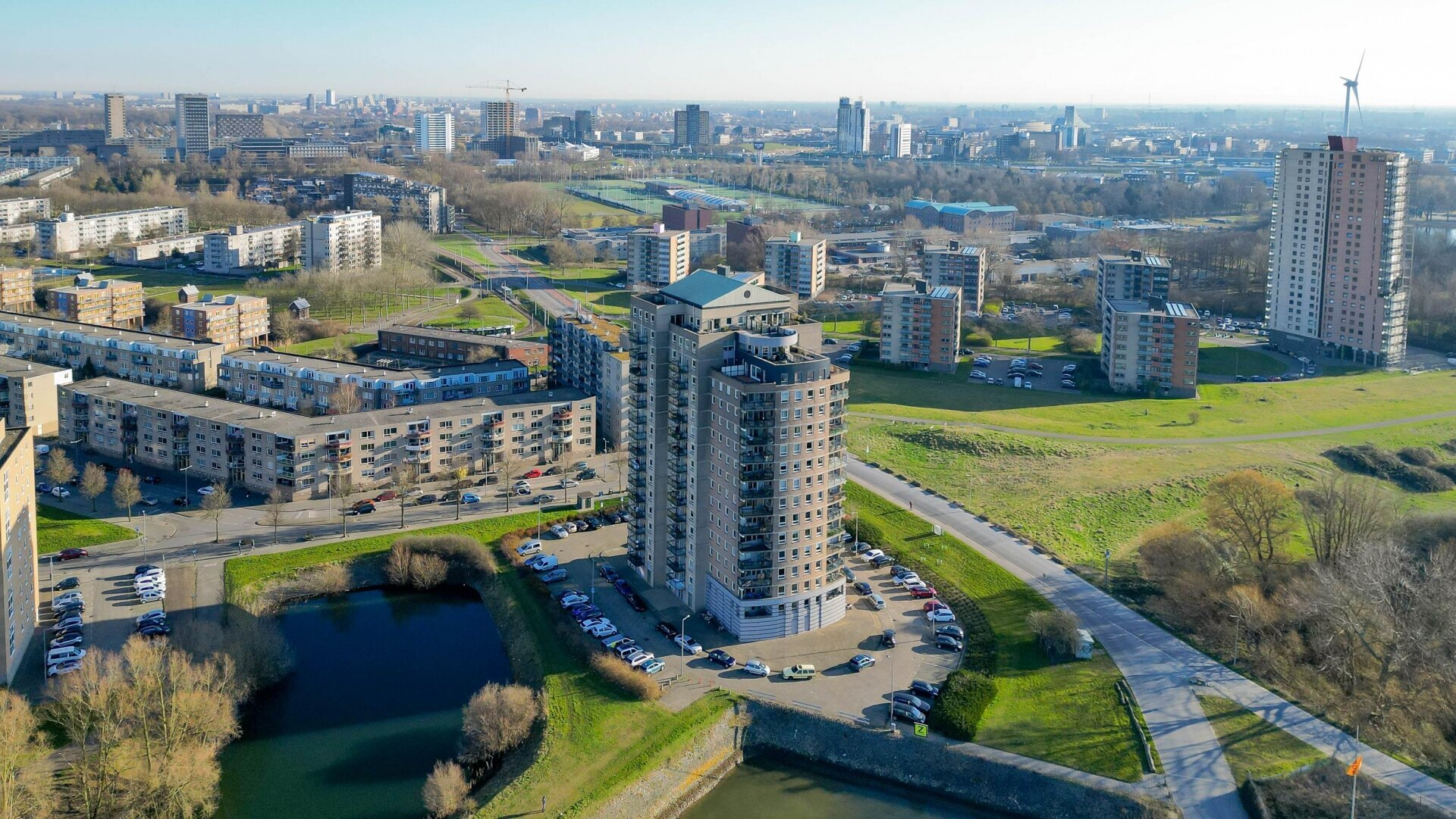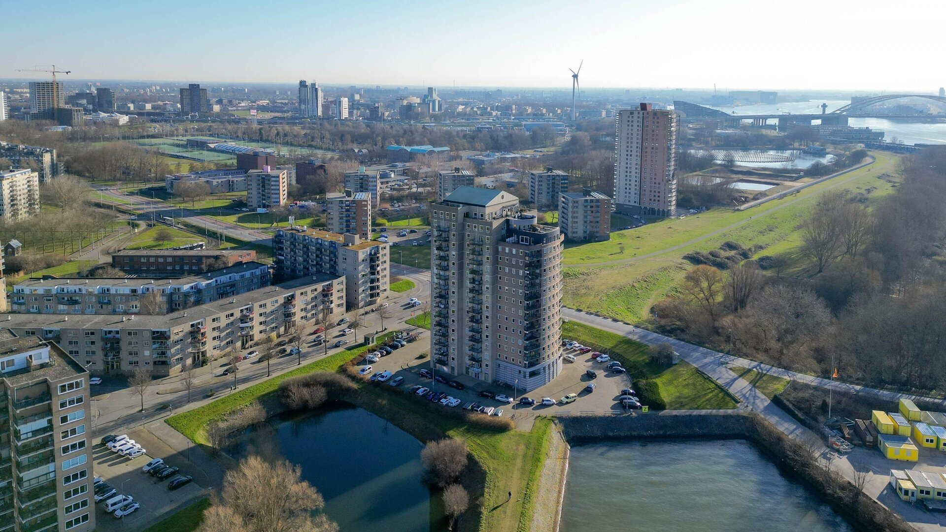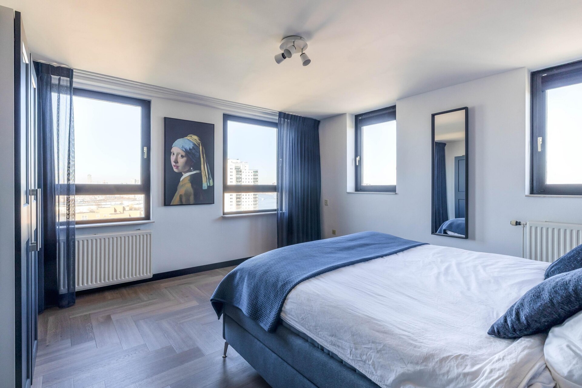 Dit penthouse op de 16e verdieping van de Drinkwaterweg 489 biedt een ongeëvenaard panorama over de Maas en de skyline van Rotterdam. Met een woonoppervlakte van ca. 124 m², twee badkamers en een royaal dakterras op het Zuiden is dit een plek waar luxe en comfort samenkomen.