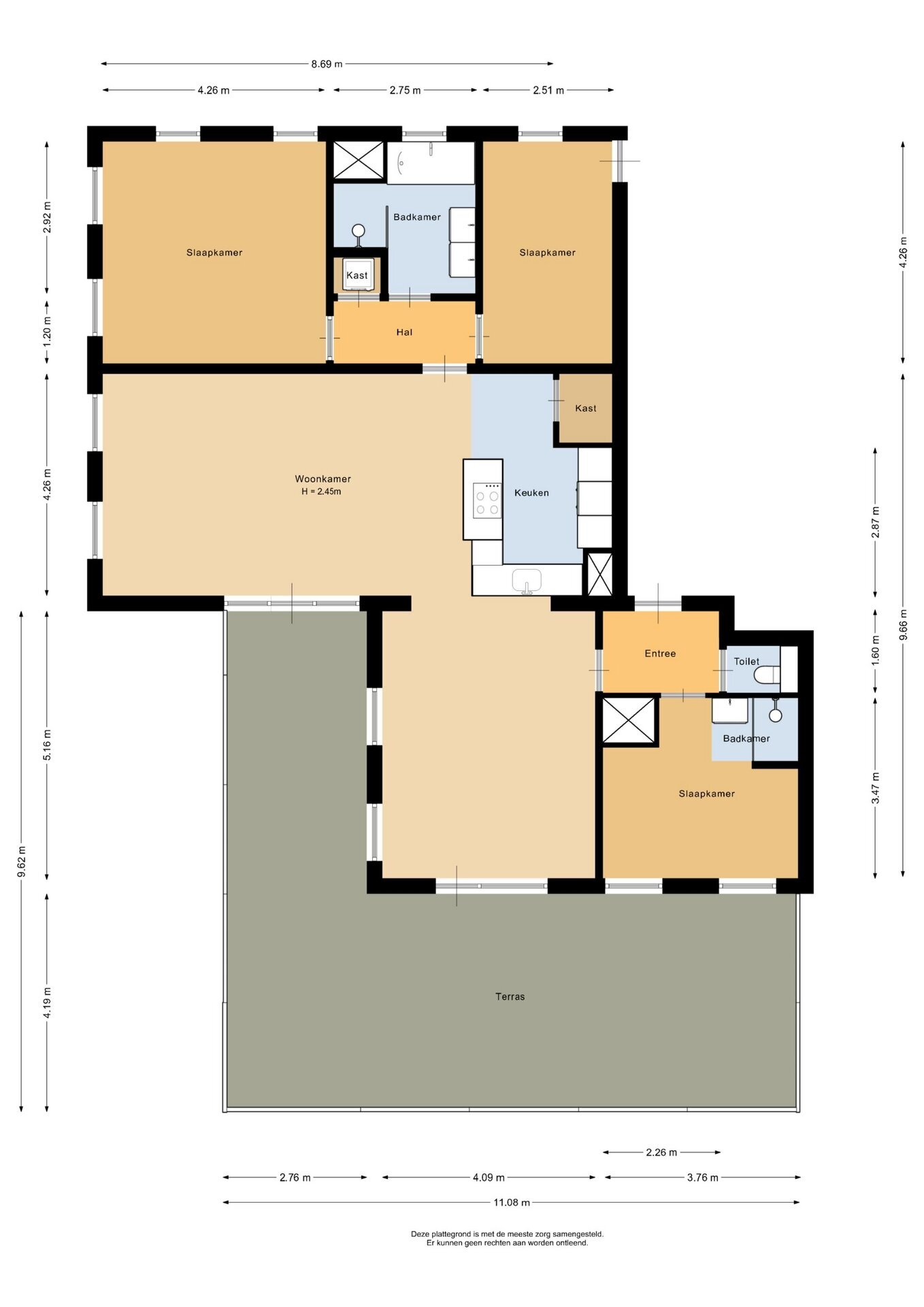 “Deze informatie is door ons met de nodige zorgvuldigheid samengesteld. Onzerzijds wordt echter geen enkele aansprakelijkheid aanvaard voor enige onvolledigheid, onjuistheid of anderszins, dan wel de gevolgen daarvan. Alle opgegeven maten en oppervlakten zijn indicatief.”