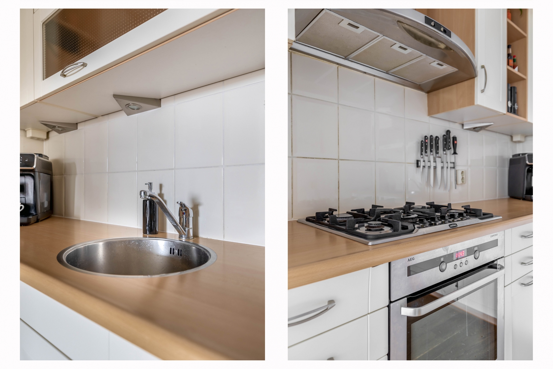 De keuken is praktisch ingedeeld en uitgevoerd in een lichte kleurstelling. Voorzien van diverse inbouwapparatuur, een strak werkblad en voldoende kastruimte is dit een fijne plek voor dagelijkse maaltijden of gezellig koken met vrienden.