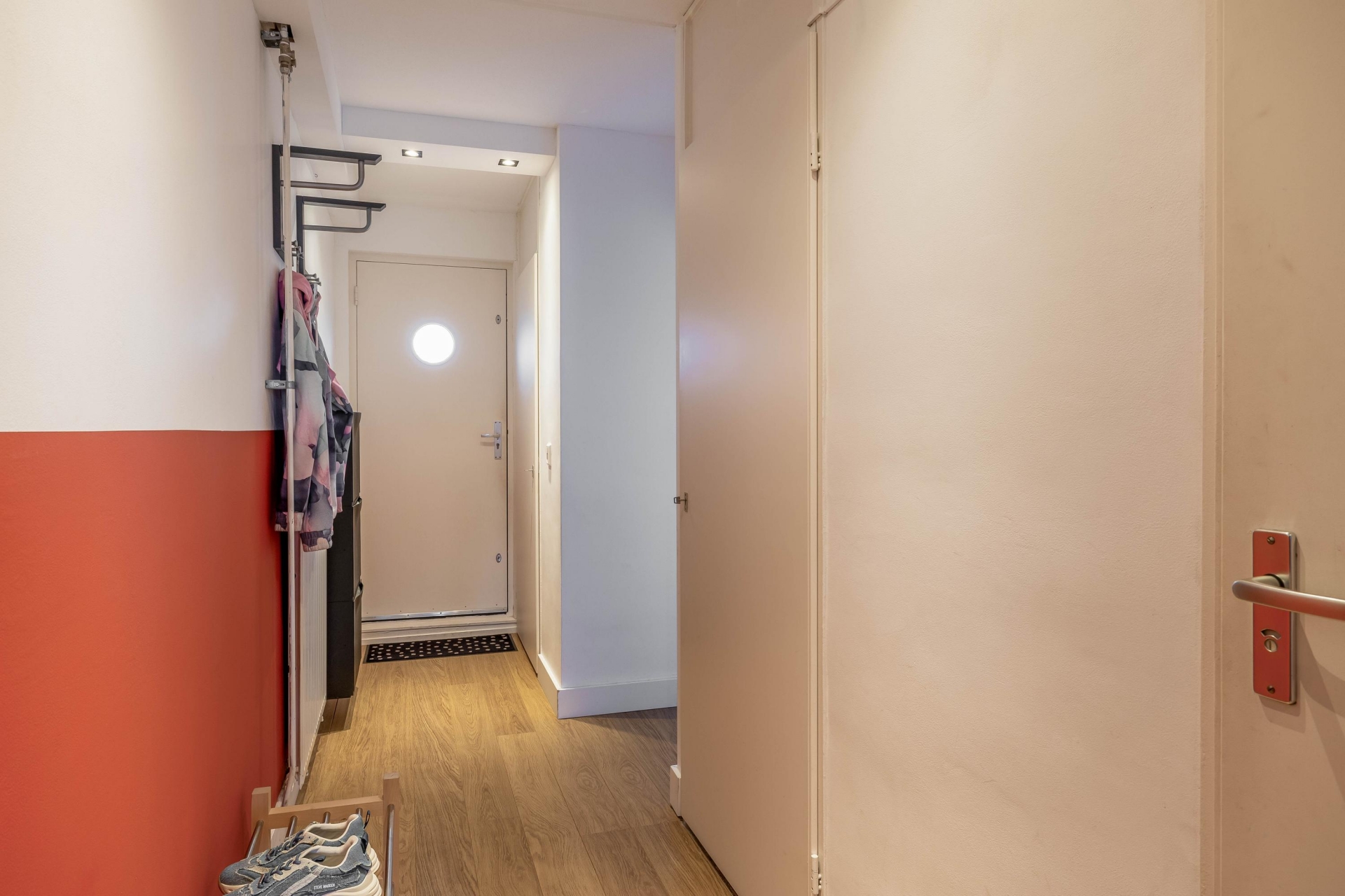 Er zijn twee slaapkamers aanwezig, waarvan één nu is ingericht als ruime master bedroom en de andere perfect dienst kan doen als werk-, kinder-, logeer- of hobbykamer. Wat direct opvalt is de slimme oplossing voor opbergruimte: de inloopkast biedt volop plek voor kleding, koffers, voorraad of andere spullen. Geen losse kasten meer nodig dus! De inloopkast kan je zowel vanuit de slaapkamer als de hal betreden. Ideaal als jij of je partner wilt uitslapen maar je moet wel in die ruimte zijn.