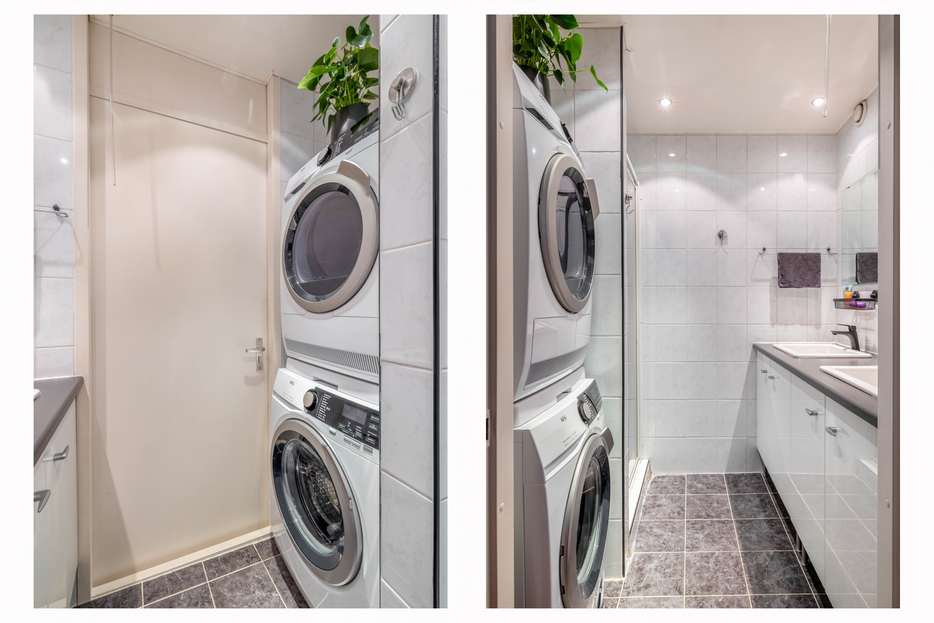 De badkamer is netjes afgewerkt en voorzien van een douche, dubbele wastafel en de wasmachineaansluiting. Het toilet bevindt zich separaat van de badkamer, wel zo prettig.