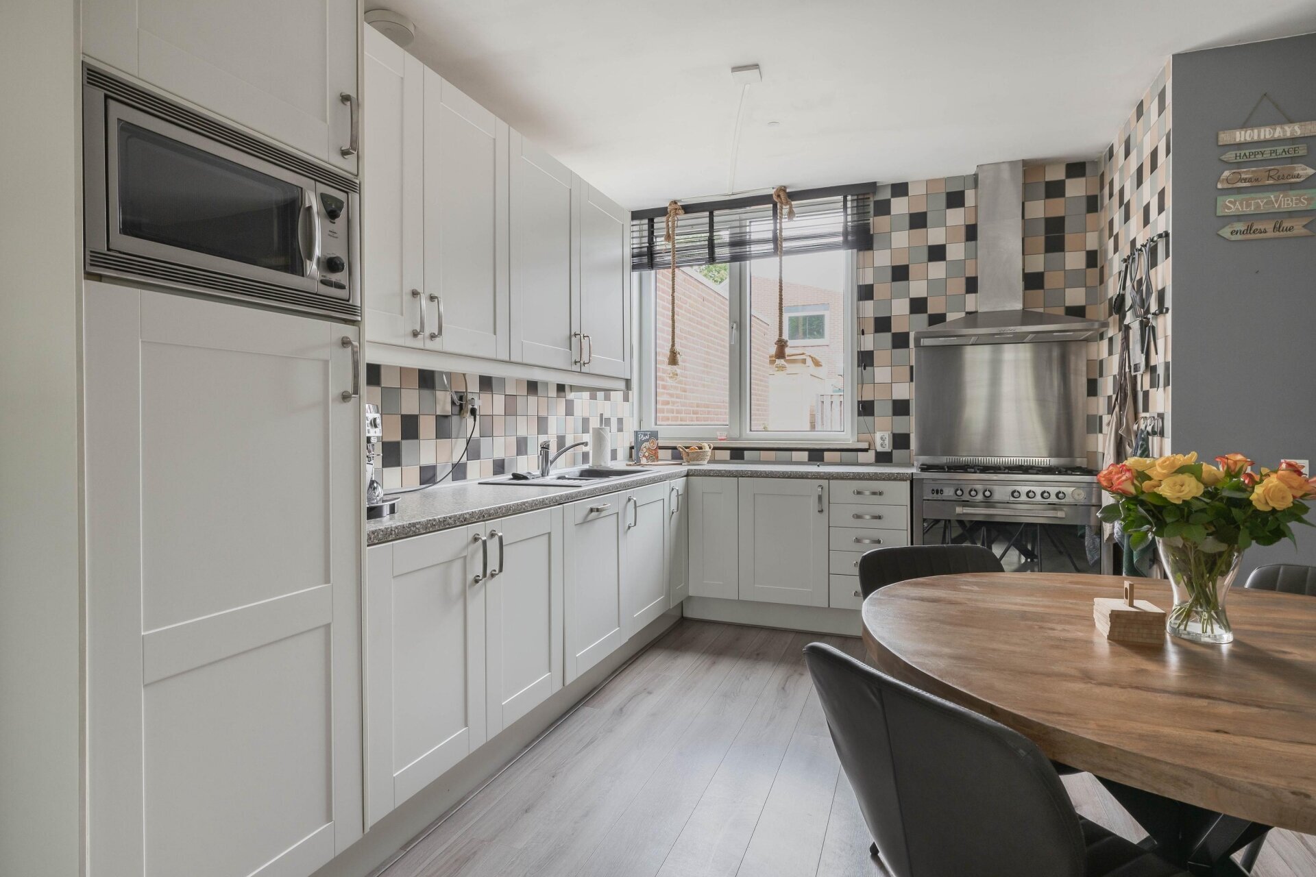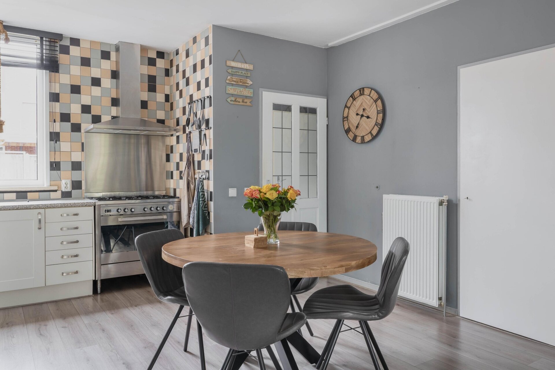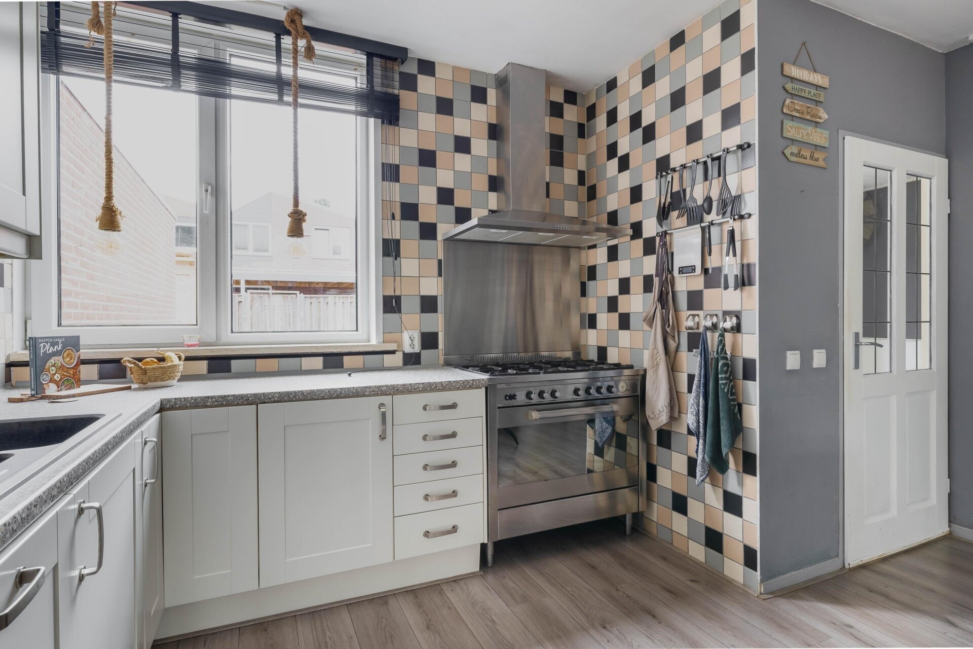 Bij binnenkomst valt meteen de fijne sfeer op: een nette afwerking, veel lichtinval en een praktische indeling. De ruime woonkamer is het centrale hart van het huis, met voldoende plek voor een grote zithoek en een gezellige eettafel. Dankzij het grote raam aan de voorzijde en het directe contact met de tuin aan de achterzijde, is er volop daglicht in de woning. De keuken, uitgevoerd in een landelijke stijl, is ruim opgezet en voorzien van diverse inbouwapparatuur. Hier kook je met gemak voor het hele gezin of vrienden op bezoek.