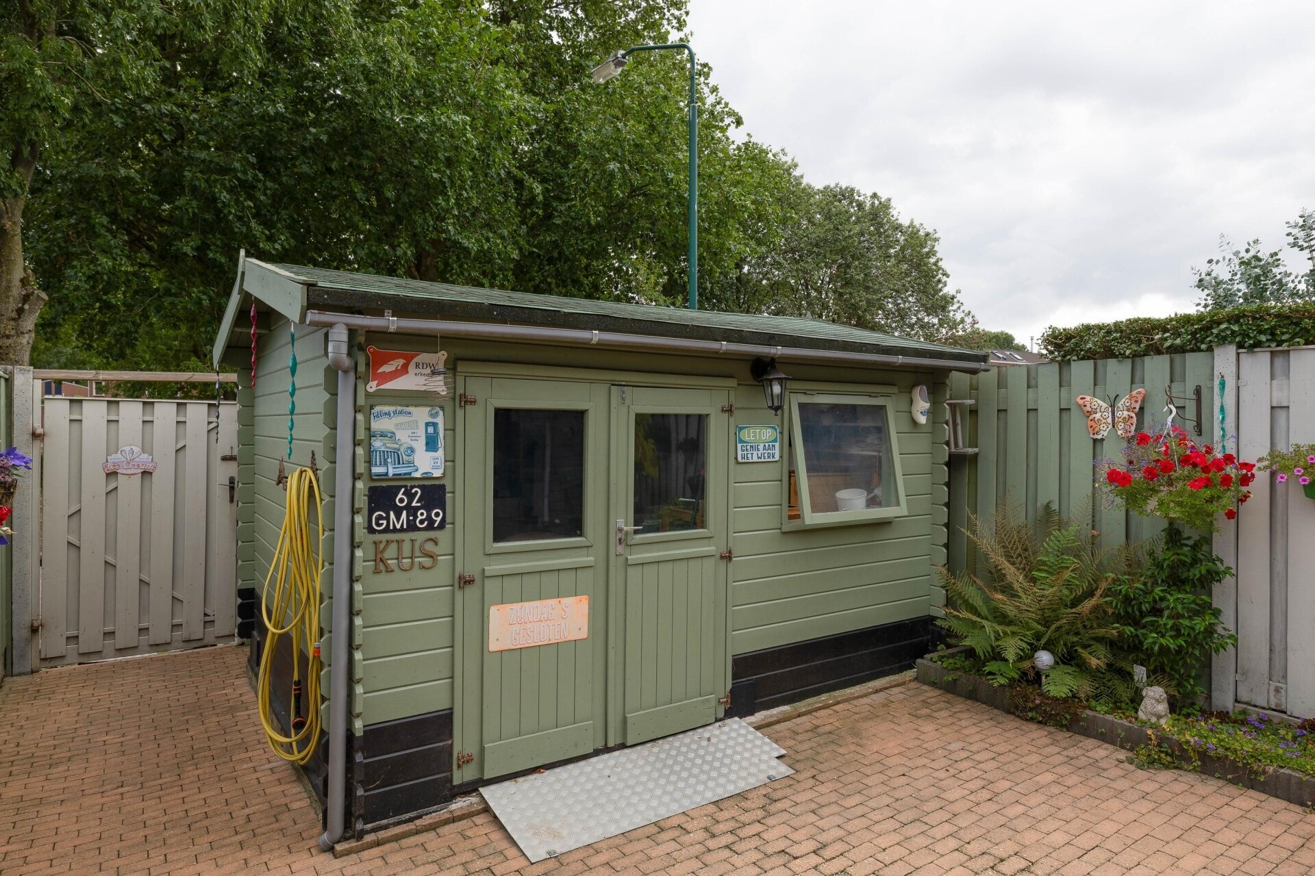 Naast een prettige buitenruimte beschik je ook over extra bergruimte. De woning heeft namelijk twee houten bergingen: één in de voortuin en één achterin de tuin. Perfect voor fietsen, tuingereedschap of opslag.