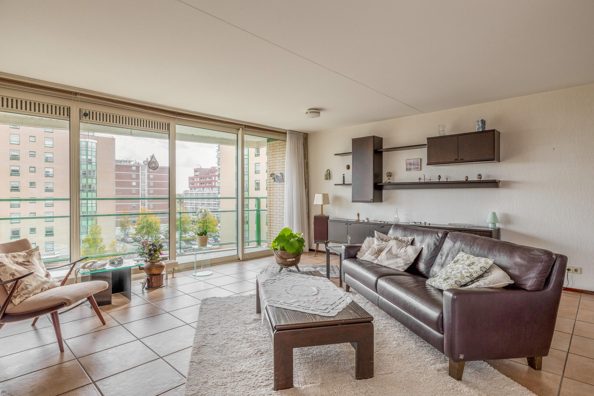 De lichte woonkamer heeft via een schuifpui toegang tot het royale balkon.