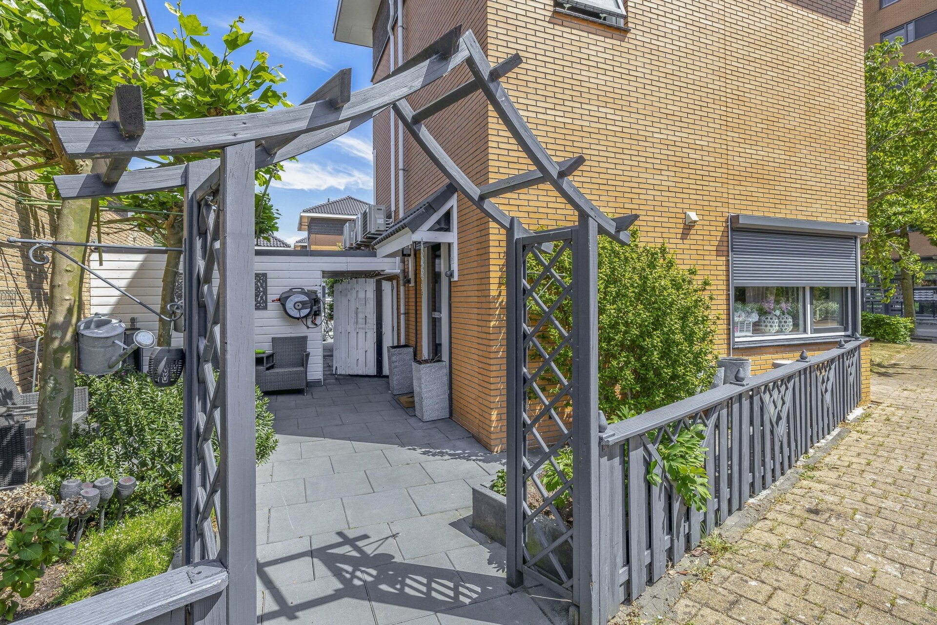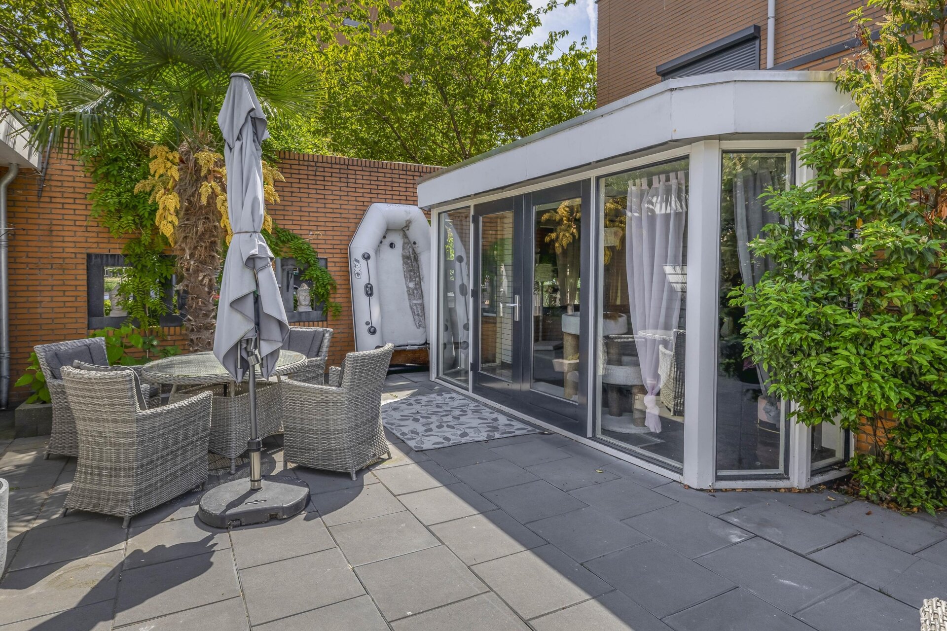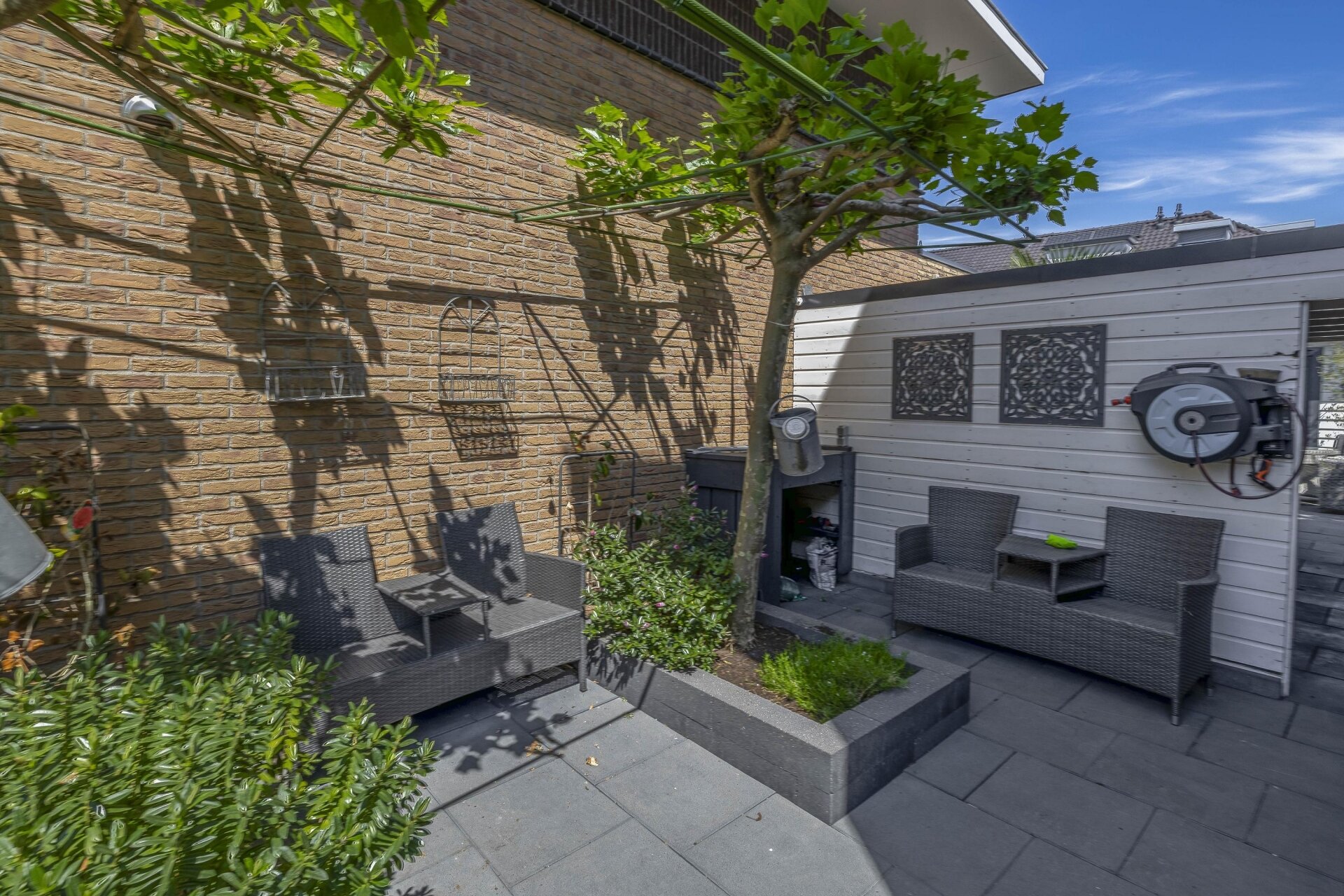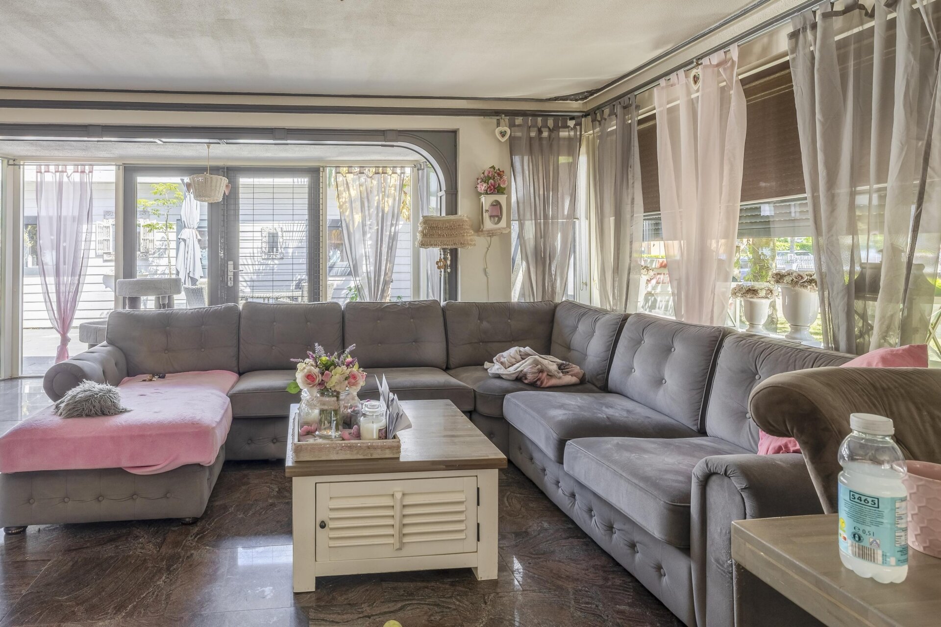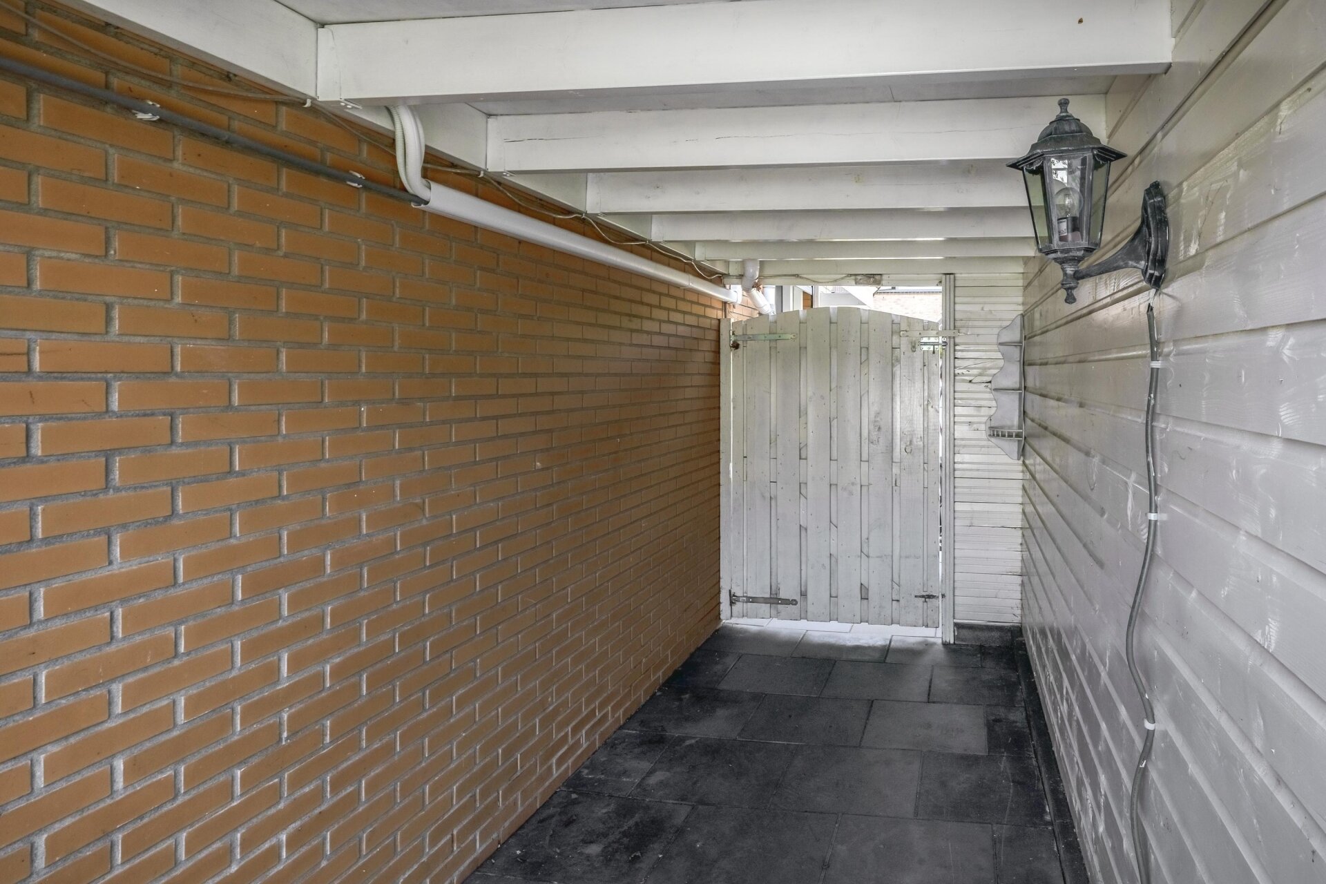 Achter in de tuin staat een ruime overkapping: een plek waar je het hele jaar door kunt relaxen. Hier zit je heerlijk uit de wind met een boek of drankje, maar de ruimte fungeert ook als gezellige bar – perfect voor een borrel met vrienden of een verjaardag in de buitenlucht. Het is echt een verlengstuk van je leefruimte.