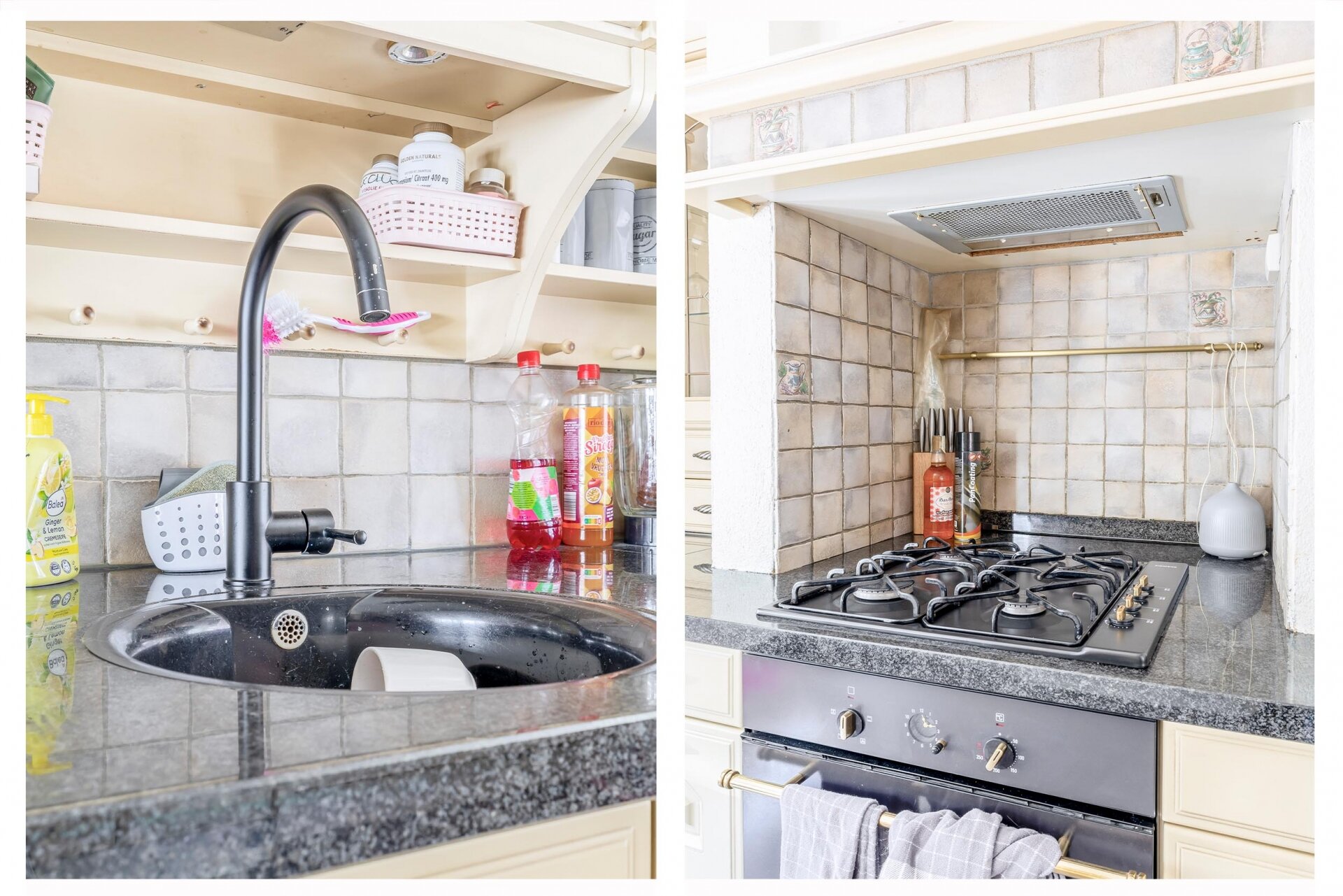 Zodra je binnenkomt, voel je dat dit huis ontworpen is om in te leven. De begane grond biedt een ruime en lichte woonkamer die naadloos overloopt in de open keuken. De grote ramen zorgen voor een fijne lichtinval en brengen buiten naar binnen. De keuken heeft een landelijke uitstraling en is praktisch ingericht – ideaal voor wie graag kookt of samenkomt met familie en vrienden. De tuindeuren brengen je direct naar het zonneterras waar je heerlijk buiten kunt zitten, omringd door groen, privacy en palmbomen. Een plek waar de zomer extra lang aanvoelt.
