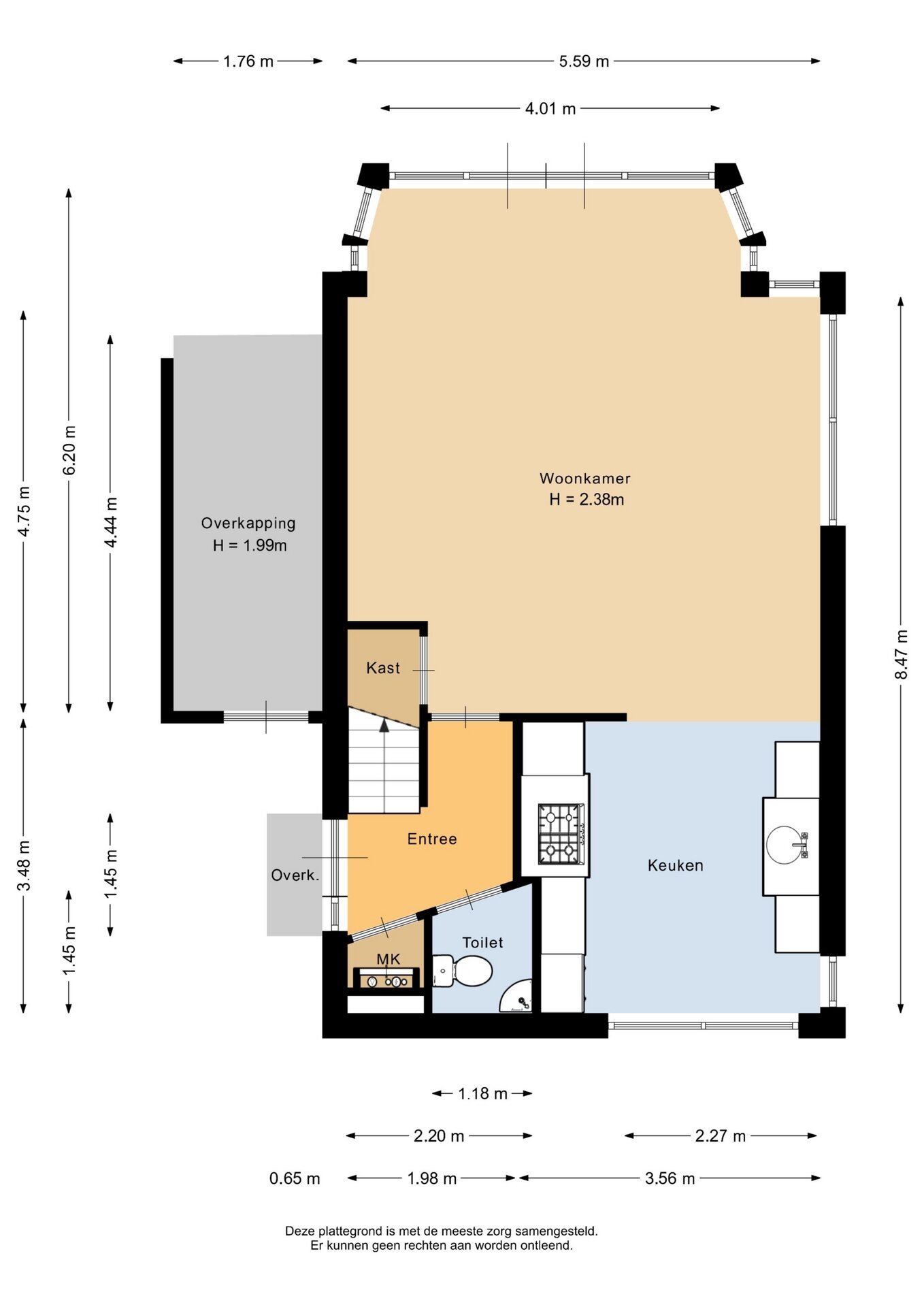 Aantal verdiepingen: 3 (begane grond + 2 verdiepingen)