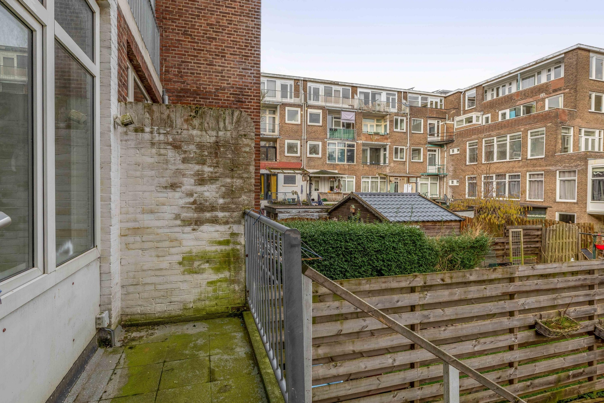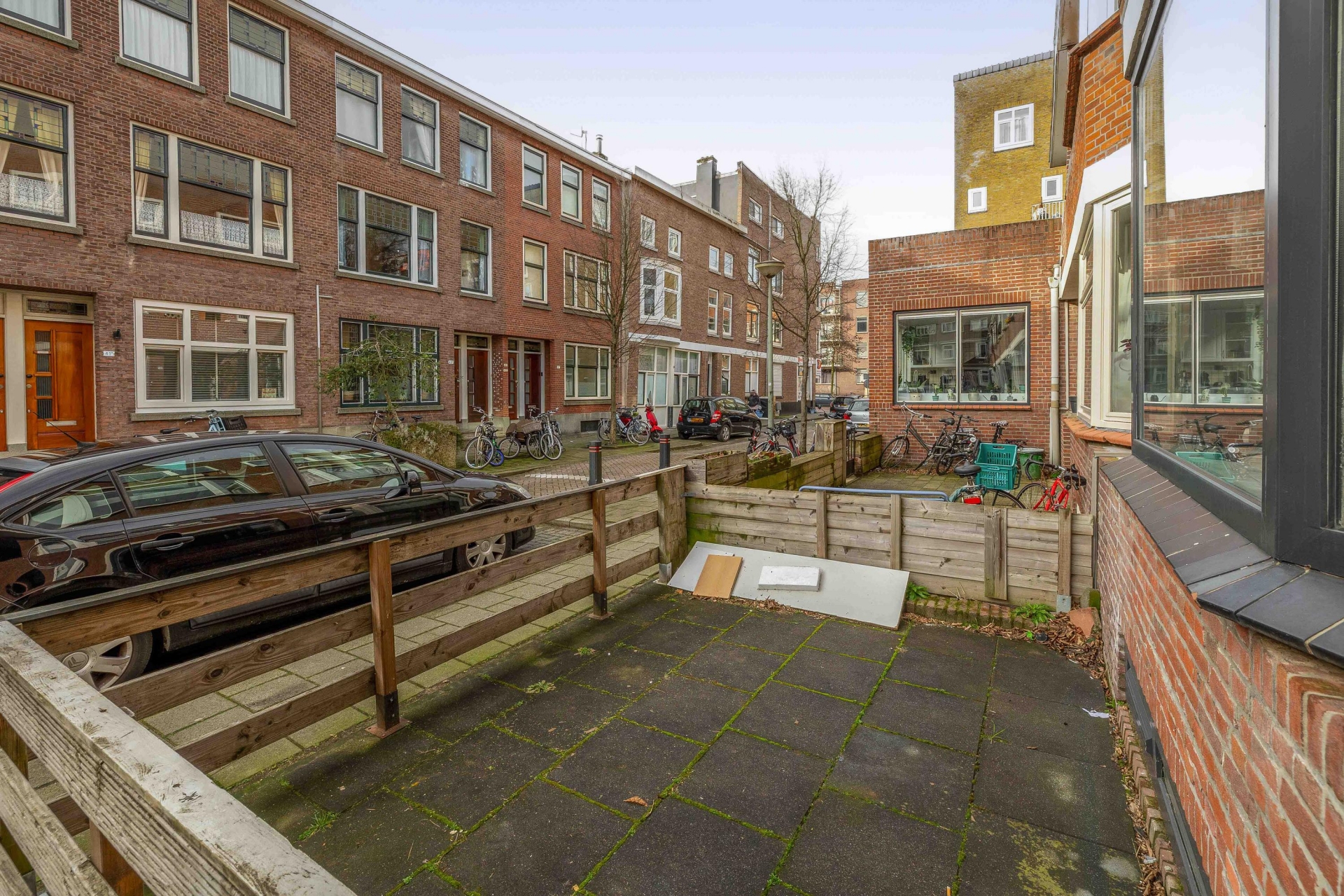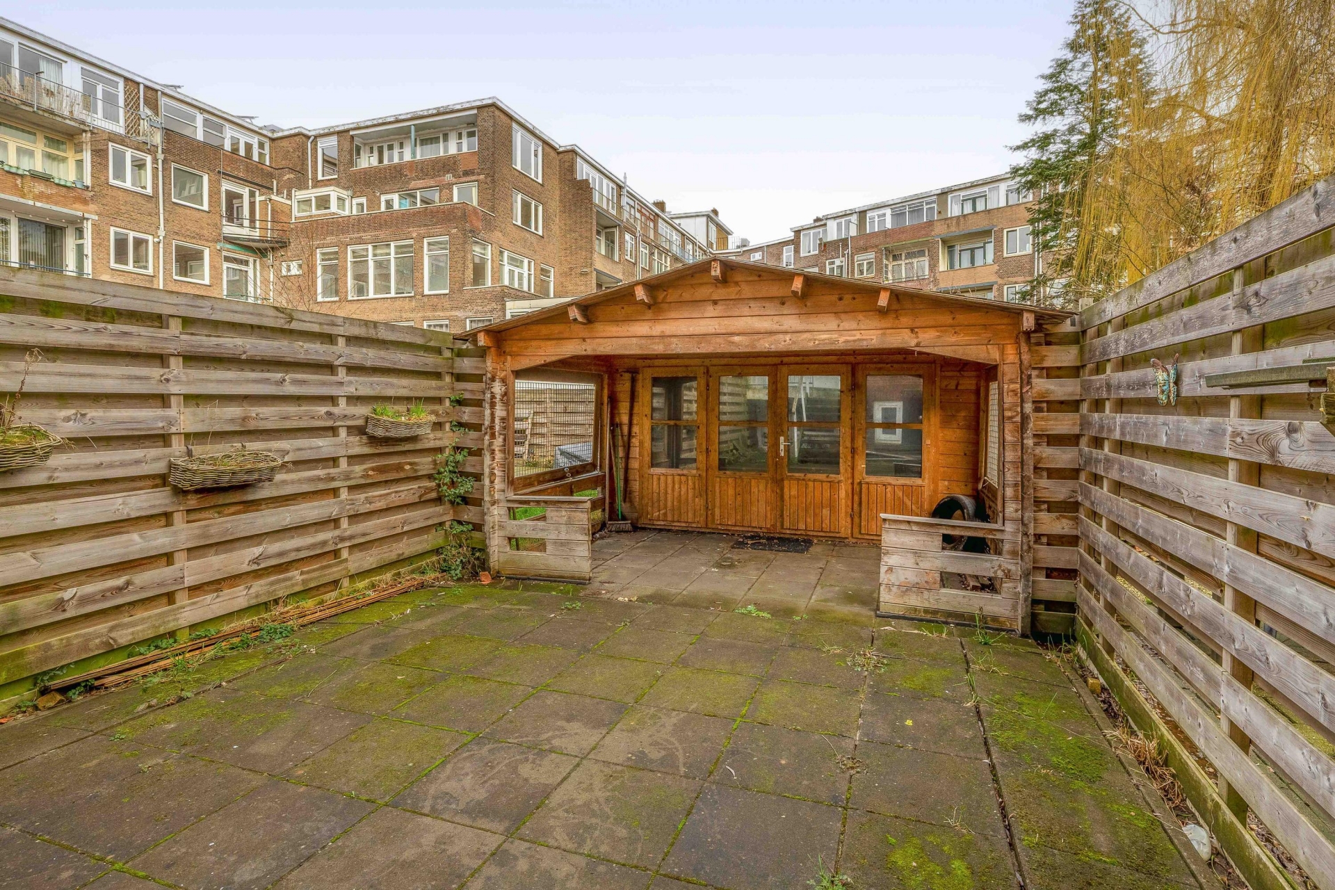 Achter het appartement ligt een circa 7 meter diepe tuin op het noorden. Een fijne buitenruimte waar je met wat aandacht een heerlijke stadstuin van kunt maken. Door de diepte is er ruimte genoeg voor een terras én groen.