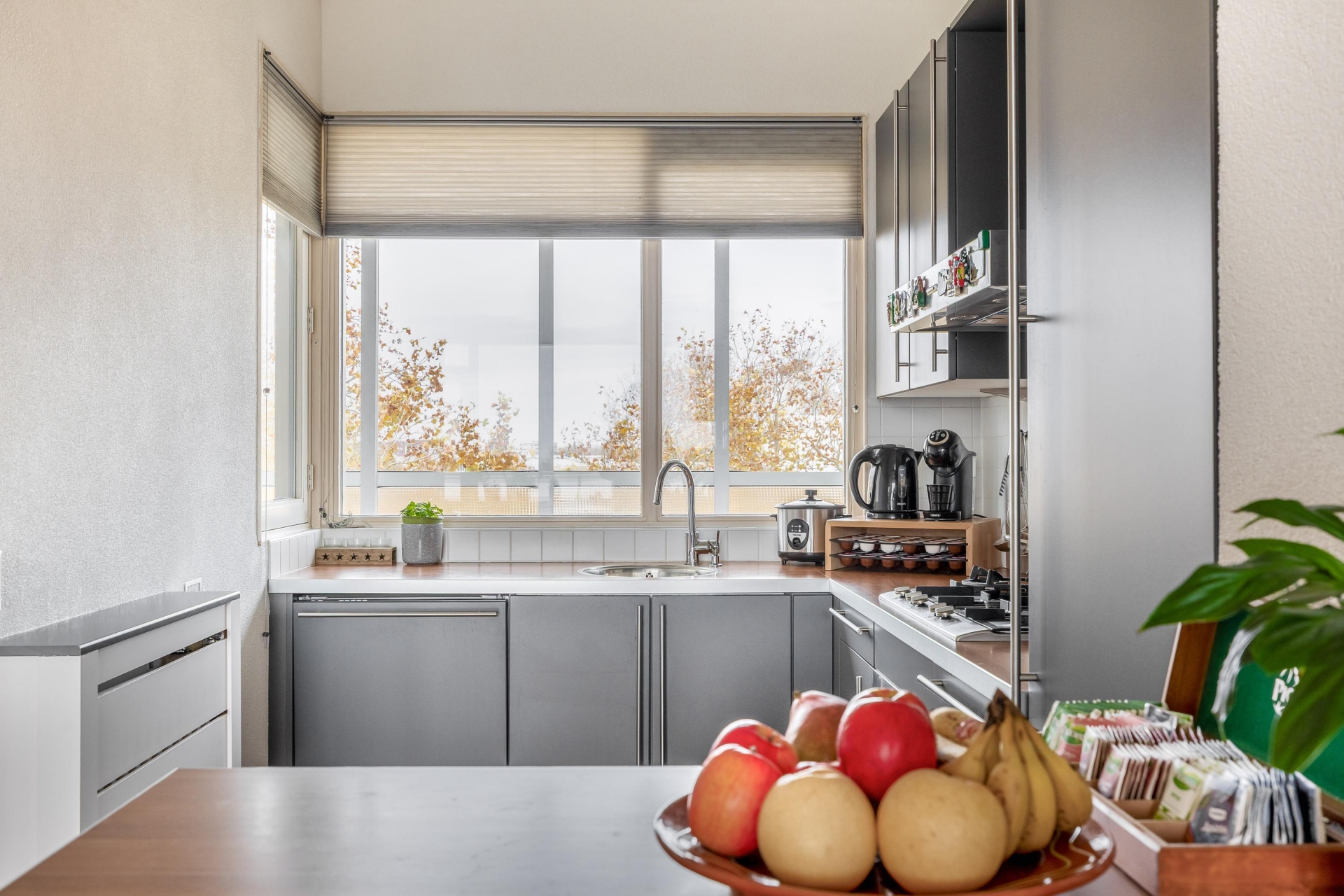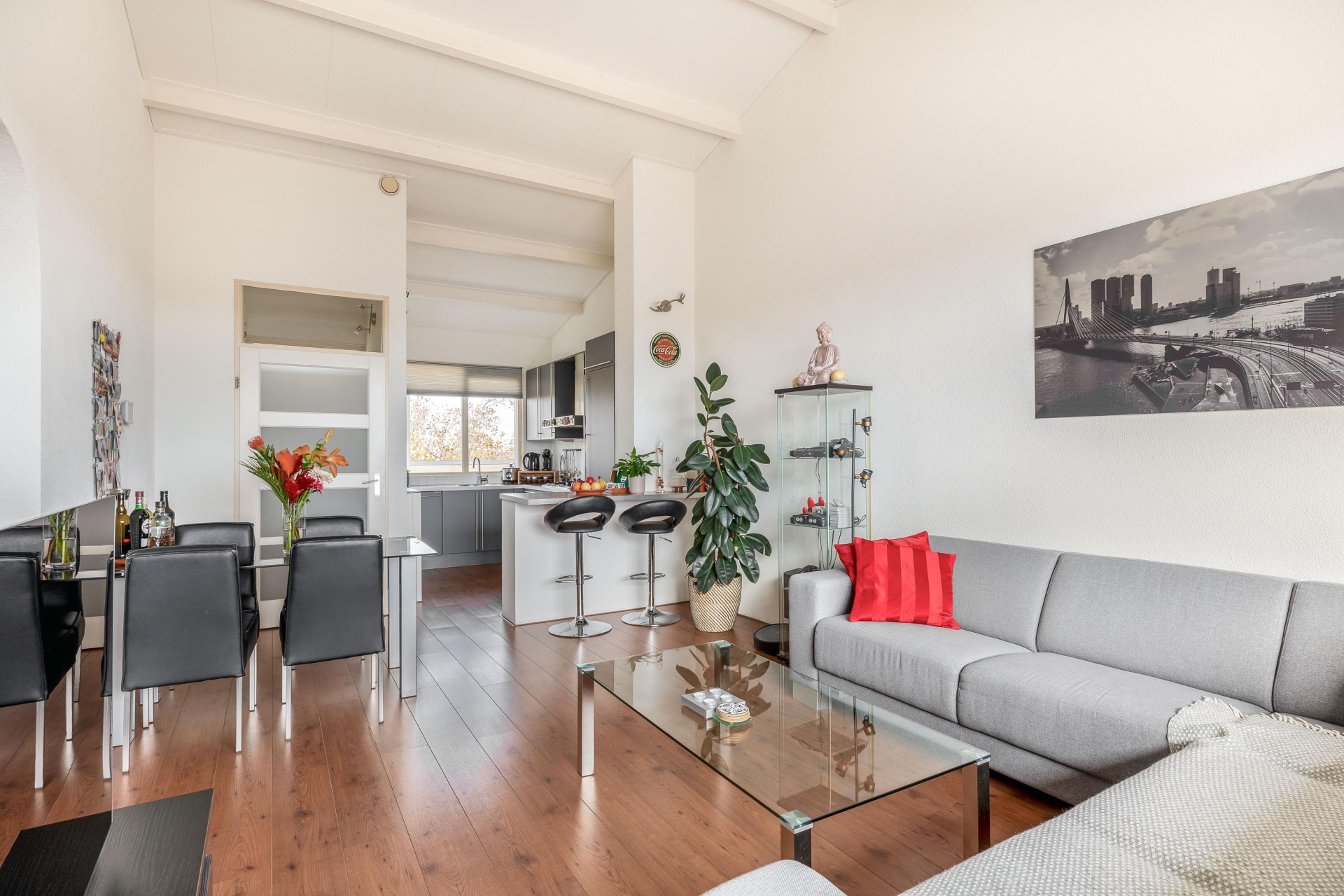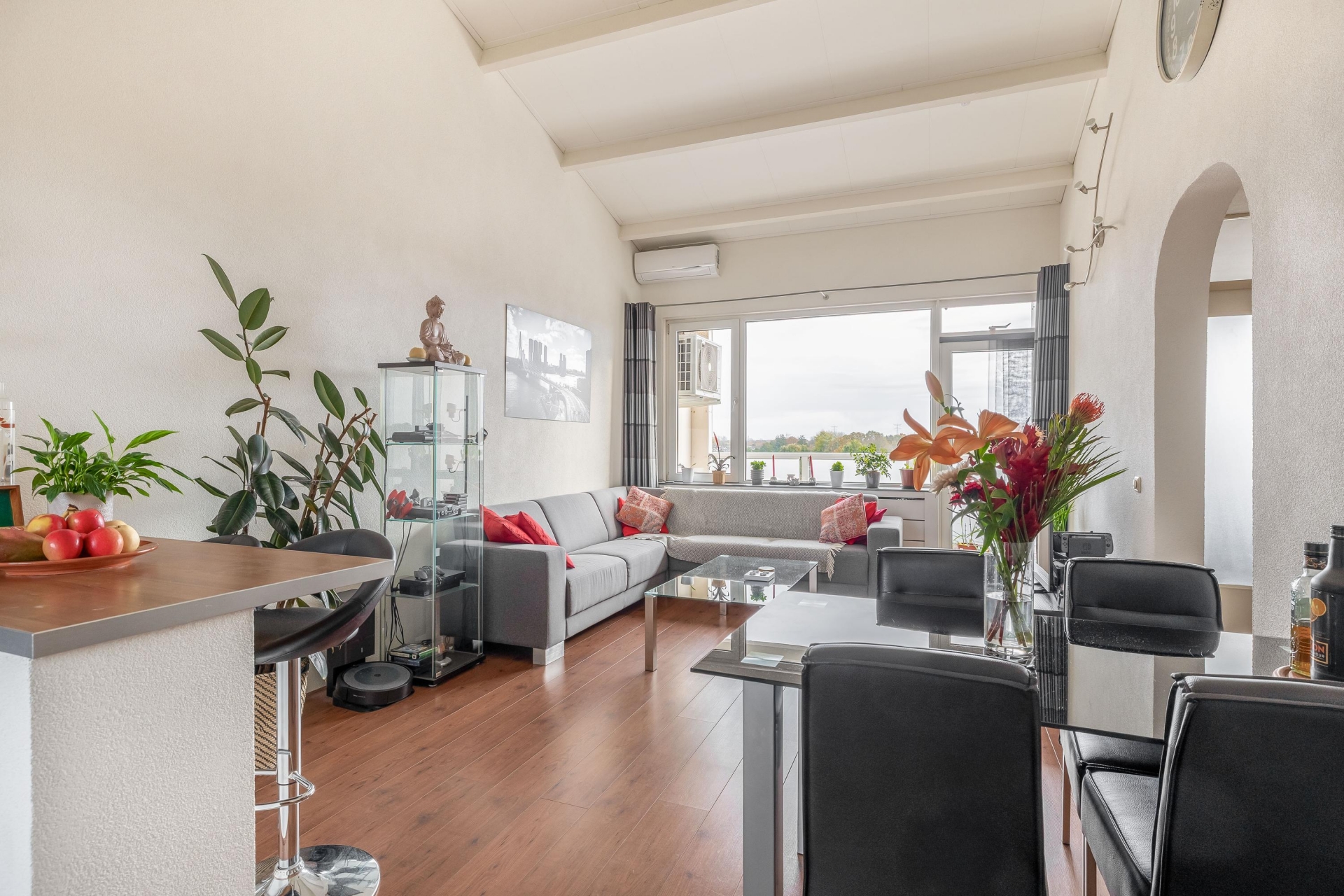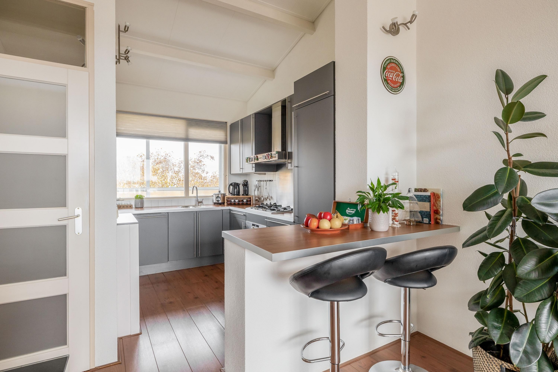 Zodra je de woonkamer binnenkomt valt meteen de hoogte en het vrije uitzicht op. De grote raampartijen zorgen voor een fijne lichtinval en via een deur stap je zo het zonnige balkon op. Dit balkon ligt op het zuidwesten, dus je geniet hier van de middag- tot avondzon. Een perfecte plek om in alle rust buiten te zitten, zonder inkijk. De woonkamer loopt door naar de keuken aan de voorzijde, voorzien van diverse inbouwapparatuur. Alles is netjes afgewerkt, praktisch in gebruik en klaar om in te trekken.