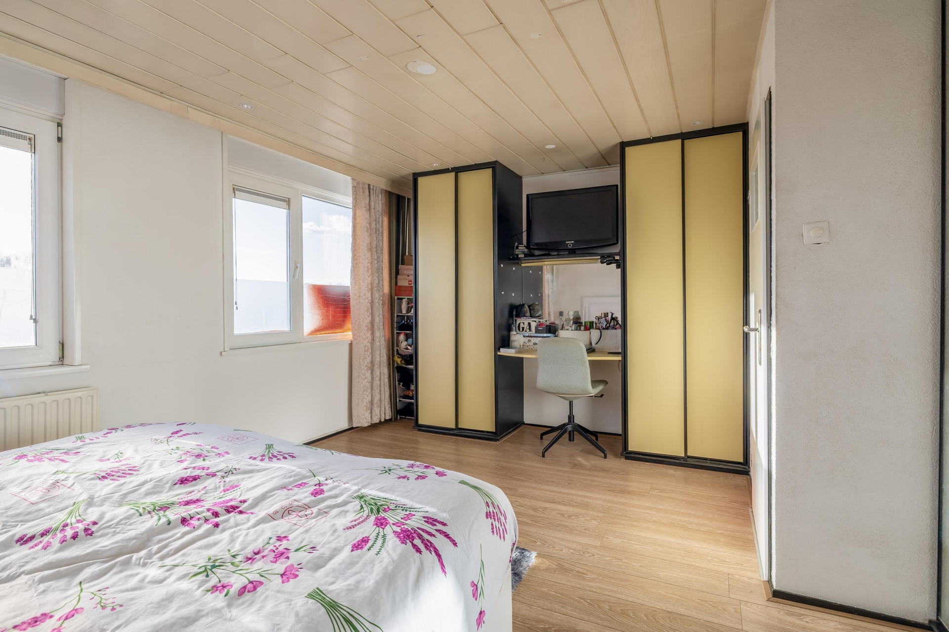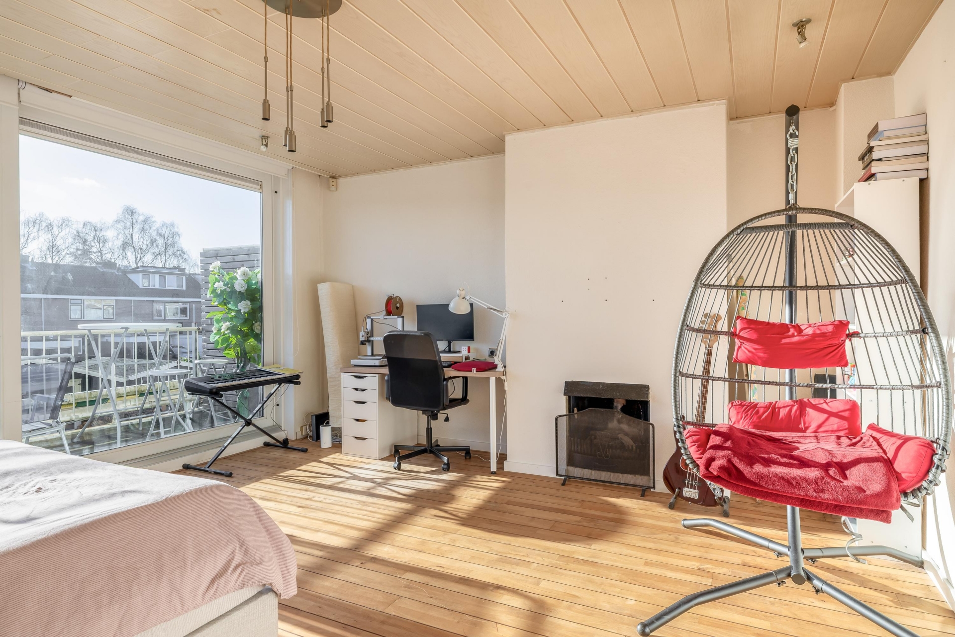 Wat deze woning écht bijzonder maakt, is de combinatie van het aantal kamers en de functionele indeling. In totaal zijn er zes slaapkamers en een extra zolderverdieping die gebruikt kan worden als speelzolder, chillruimte of werkplek. De slaapkamer aan de achterzijde op de eerste verdieping is opvallend ruim en voorzien van grote ramen met uitzicht op het balkon. Perfect als master bedroom of tweede woonkamer. Er is voldoende ruimte voor dubbele bewoning.