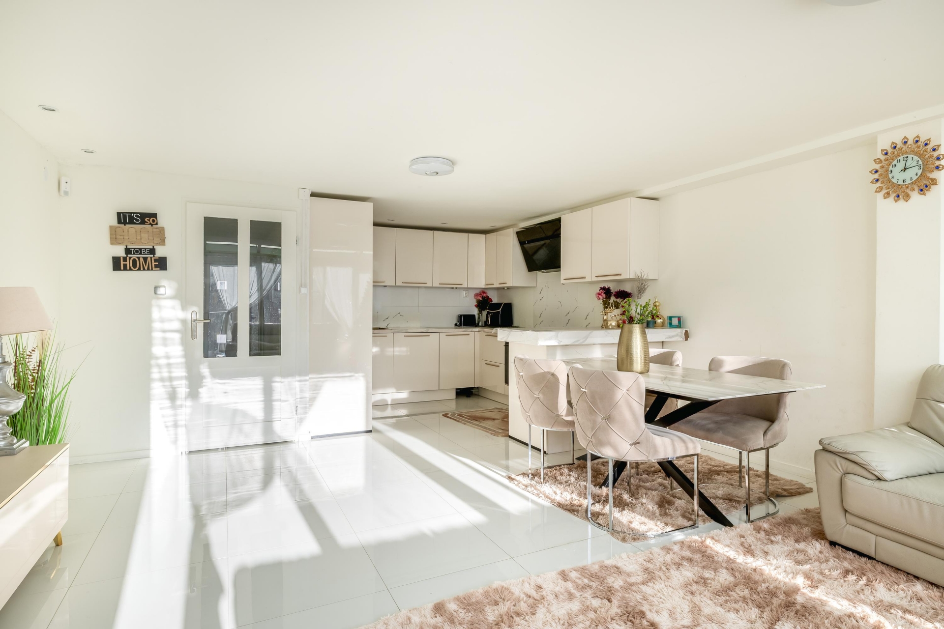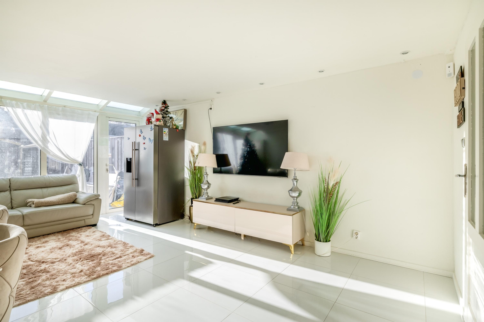 Wat direct opvalt bij binnenkomst is de strakke en moderne afwerking. De begane grond is voorzien van een fraaie plavuizen vloer met vloerverwarming (2024), wat zorgt voor veel wooncomfort. Aan de achterzijde is de woonkamer uitgebouwd en biedt via een grote schuifpui toegang tot de zonnige achtertuin op het zuiden. De open keuken aan de voorzijde is in 2024 vernieuwd en uitgerust met diverse inbouwapparatuur, waaronder een oven, kookplaat, afzuigkap en vaatwasser.