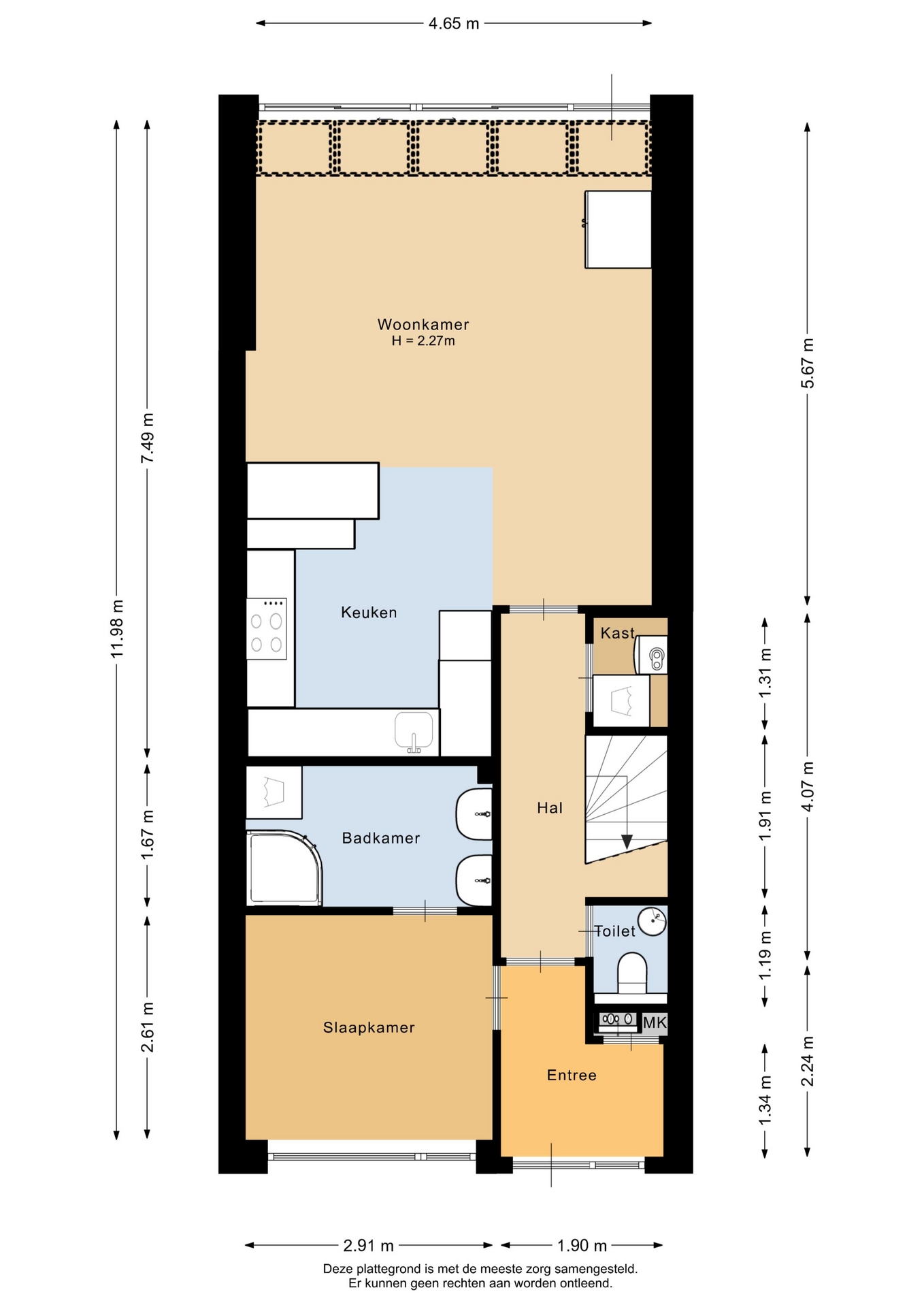 “Deze informatie is door ons met de nodige zorgvuldigheid samengesteld. Onzerzijds wordt echter geen enkele aansprakelijkheid aanvaard voor enige onvolledigheid, onjuistheid of anderszins, dan wel de gevolgen daarvan. Alle opgegeven maten en oppervlakten zijn indicatief.”