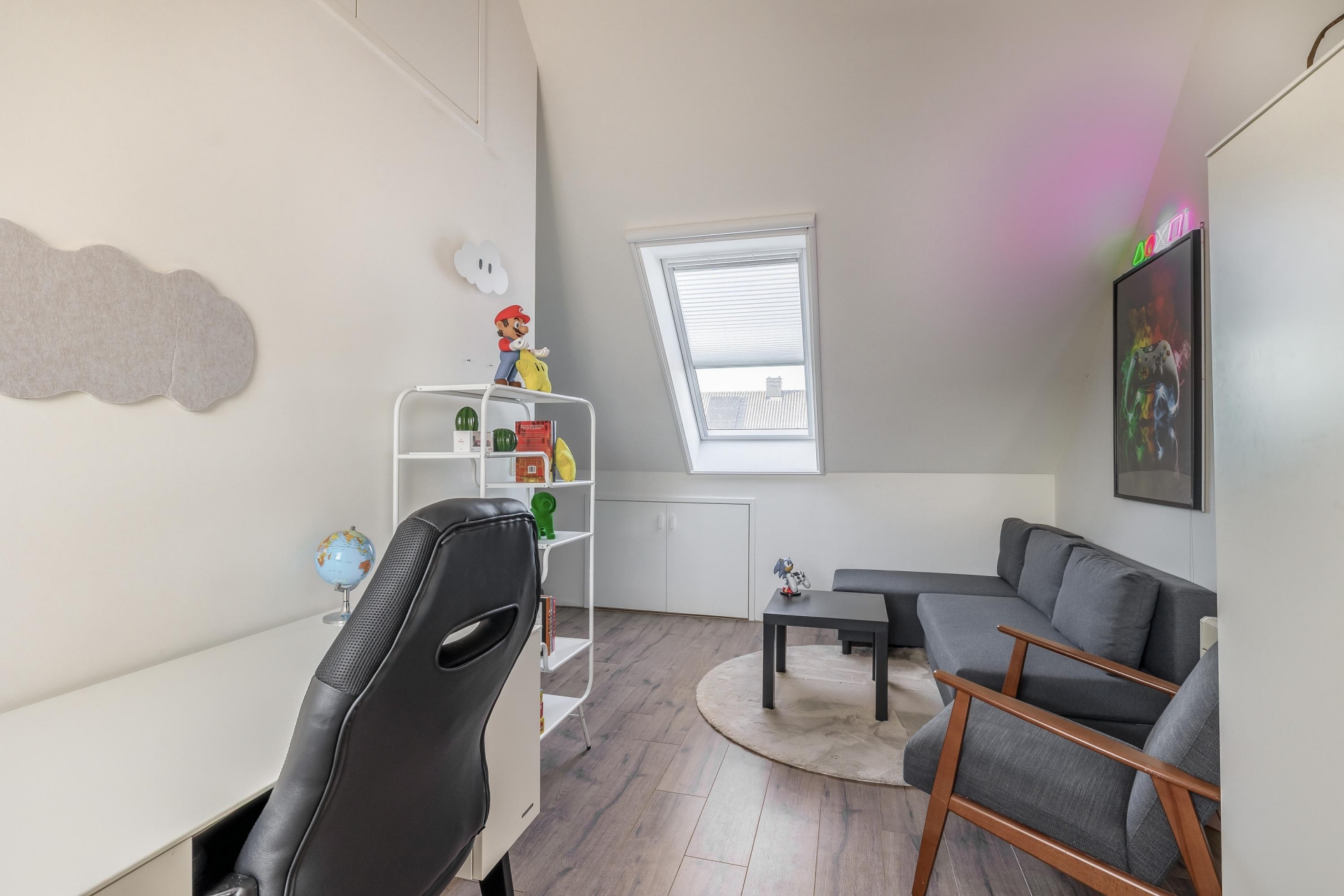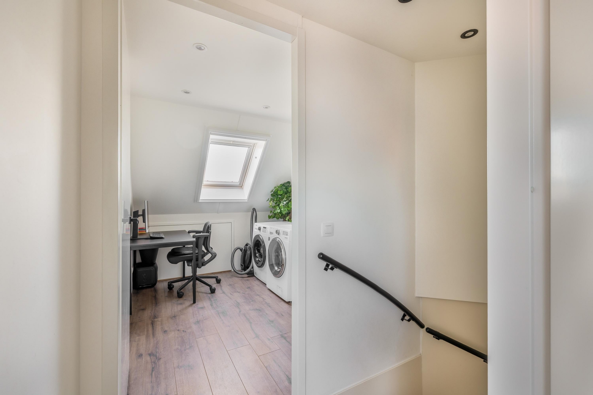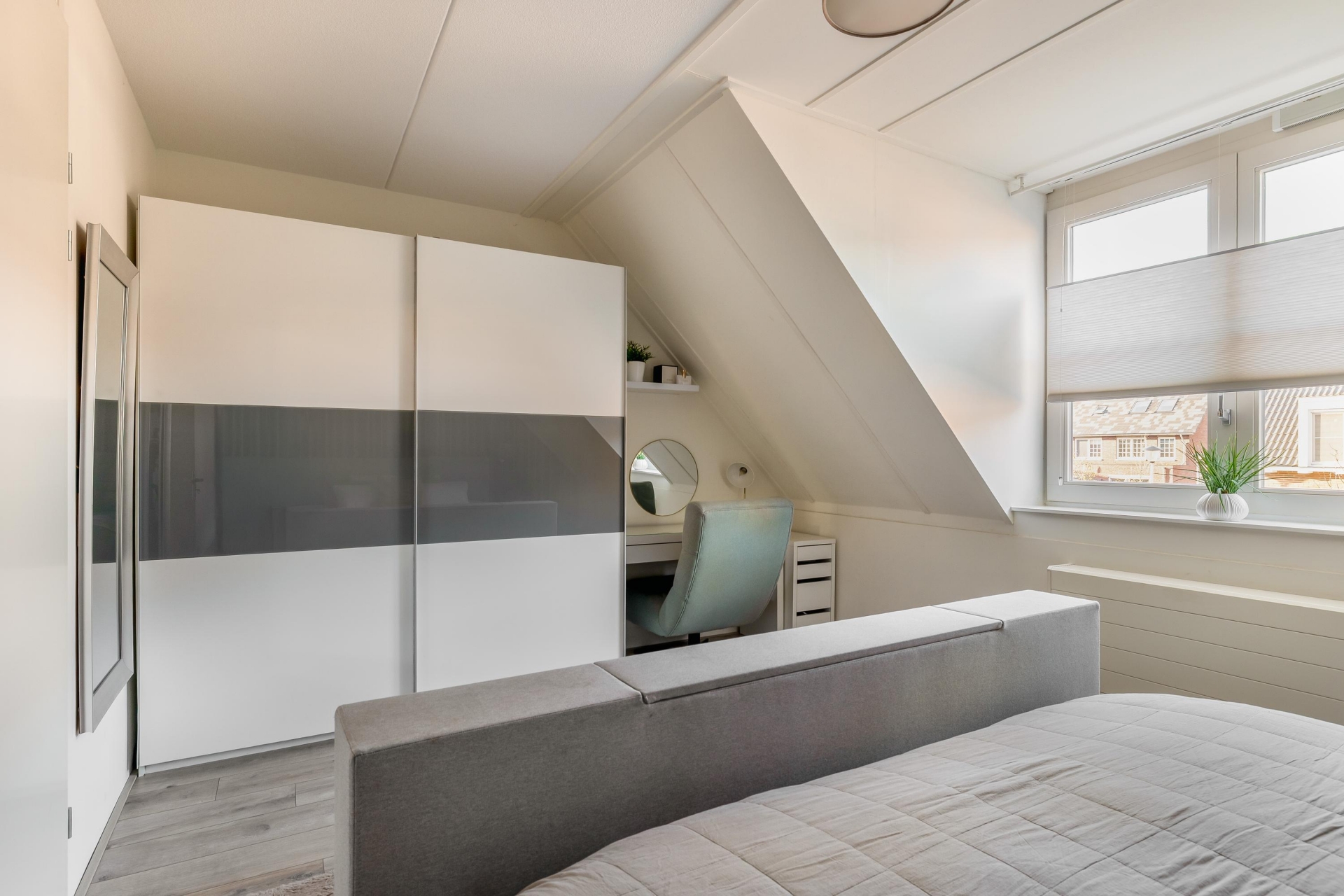Met vier slaapkamers verdeeld over twee verdiepingen is dit huis klaar voor een gezin, thuiswerkers of logees. Op de eerste verdieping vind je drie slaapkamers en een moderne badkamer. De zolderverdieping is slim ingericht en biedt ruimte aan een vierde slaapkamer of een rustige werkplek onder de schuine kap. Dankzij de rechte gevel aan de voorzijde heb je hier bovendien verrassend veel licht en stahoogte.