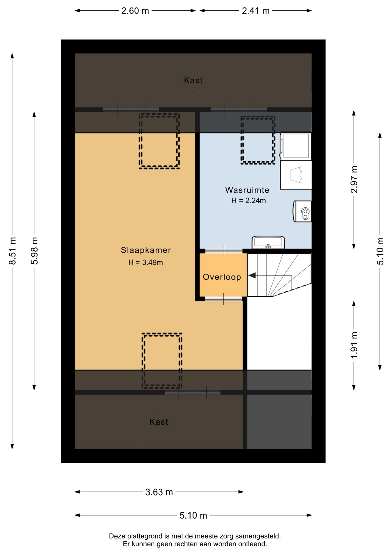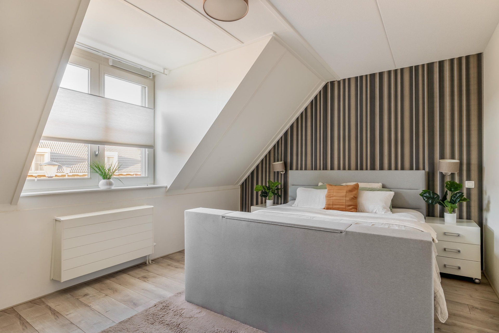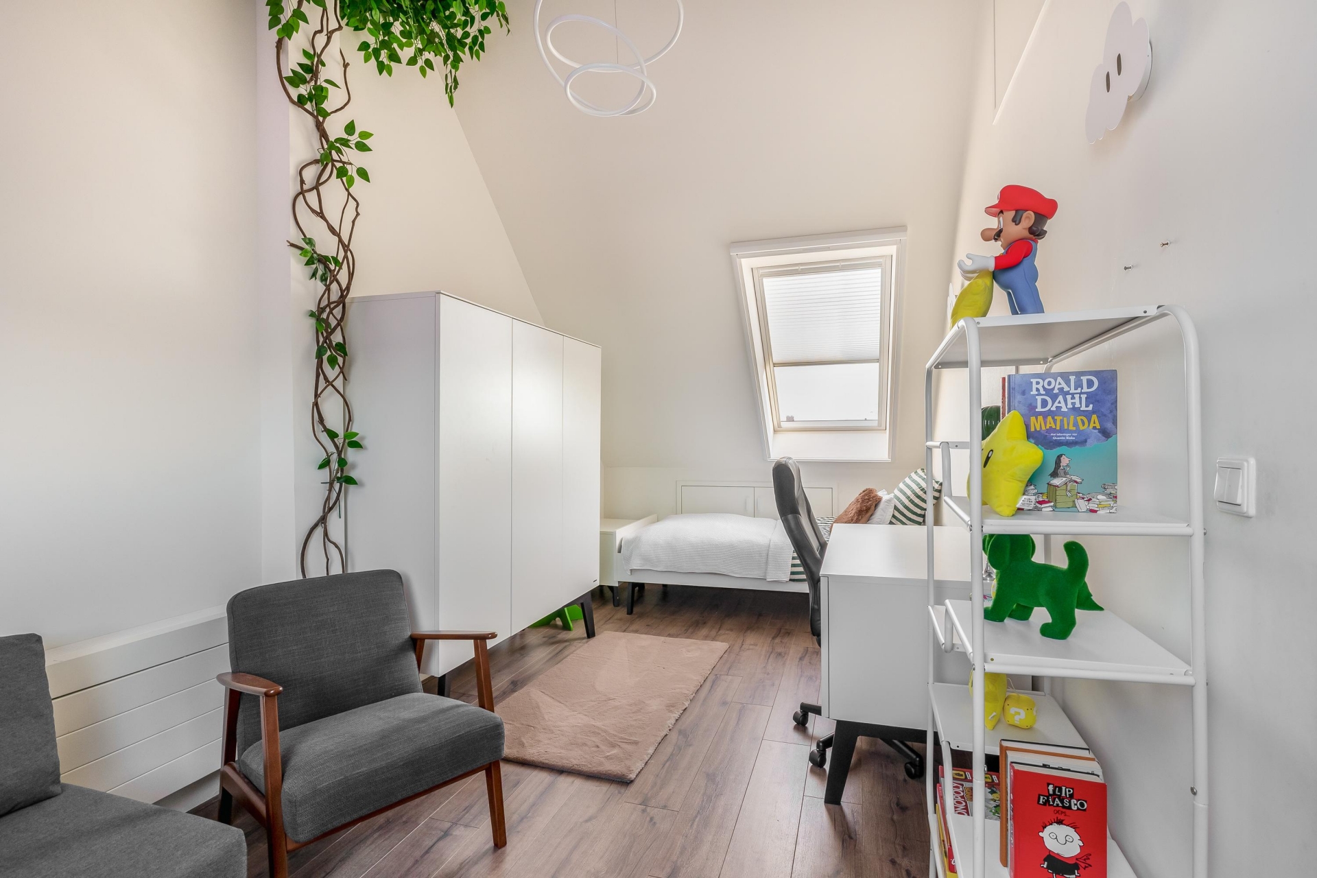 Met vier slaapkamers verdeeld over twee verdiepingen is dit huis klaar voor een gezin, thuiswerkers of logees. Op de eerste verdieping vind je drie slaapkamers en een moderne badkamer. De zolderverdieping is slim ingericht en biedt ruimte aan een vierde slaapkamer of een rustige werkplek onder de schuine kap. Dankzij de rechte gevel aan de voorzijde heb je hier bovendien verrassend veel licht en stahoogte.