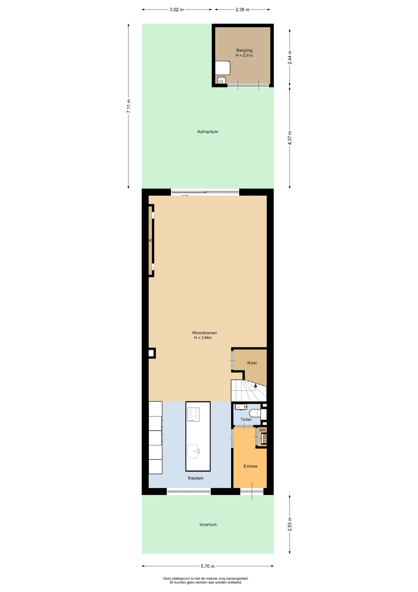 - Oppervlakte hoofdtuin 38m2