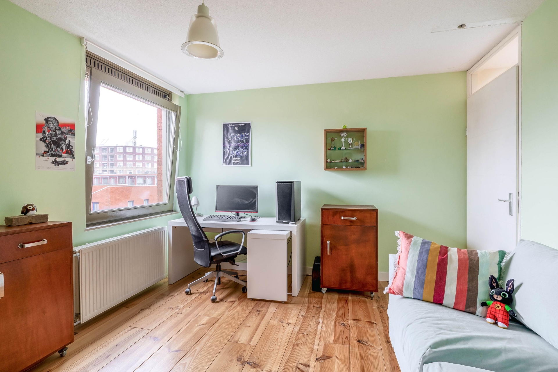 De indeling wijkt net even af van standaard en dat maakt deze woning juist zo aantrekkelijk. De woonkamer bevindt zich op de eerste verdieping en biedt een prettige, lichte leefruimte. Aan de terraskant ligt de woonkeuken. Deze grenst direct aan het terras en vormt daarmee het hart van het huis. De keuken is in 2021 vernieuwd en uitgevoerd in een moderne, rechte opstelling met diverse inbouwapparatuur. Er is volop ruimte voor een grote eettafel, waardoor koken, tafelen en samenzijn hier moeiteloos samenkomen. Op de derde verdieping bevinden zich twee slaapkamers en de ruime badkamer. De grootste slaapkamer op deze verdieping is heerlijk licht en biedt voldoende plek voor een groot bed en kastruimte. De tweede kamer is perfect als kinderkamer, werkplek of logeerkamer. De badkamer is compleet uitgevoerd met een ligbad, douchecabine, dubbele wastafel en een tweede toilet. De bovenste verdieping telt nog eens twee ruime slaapkamers. De grootste kamer op deze etage is bijzonder royaal en kan ook uitstekend dienen als master bedroom. De vierde slaapkamer is eveneens van goed formaat. Op de overloop bevindt zich de cv-ruimte.
