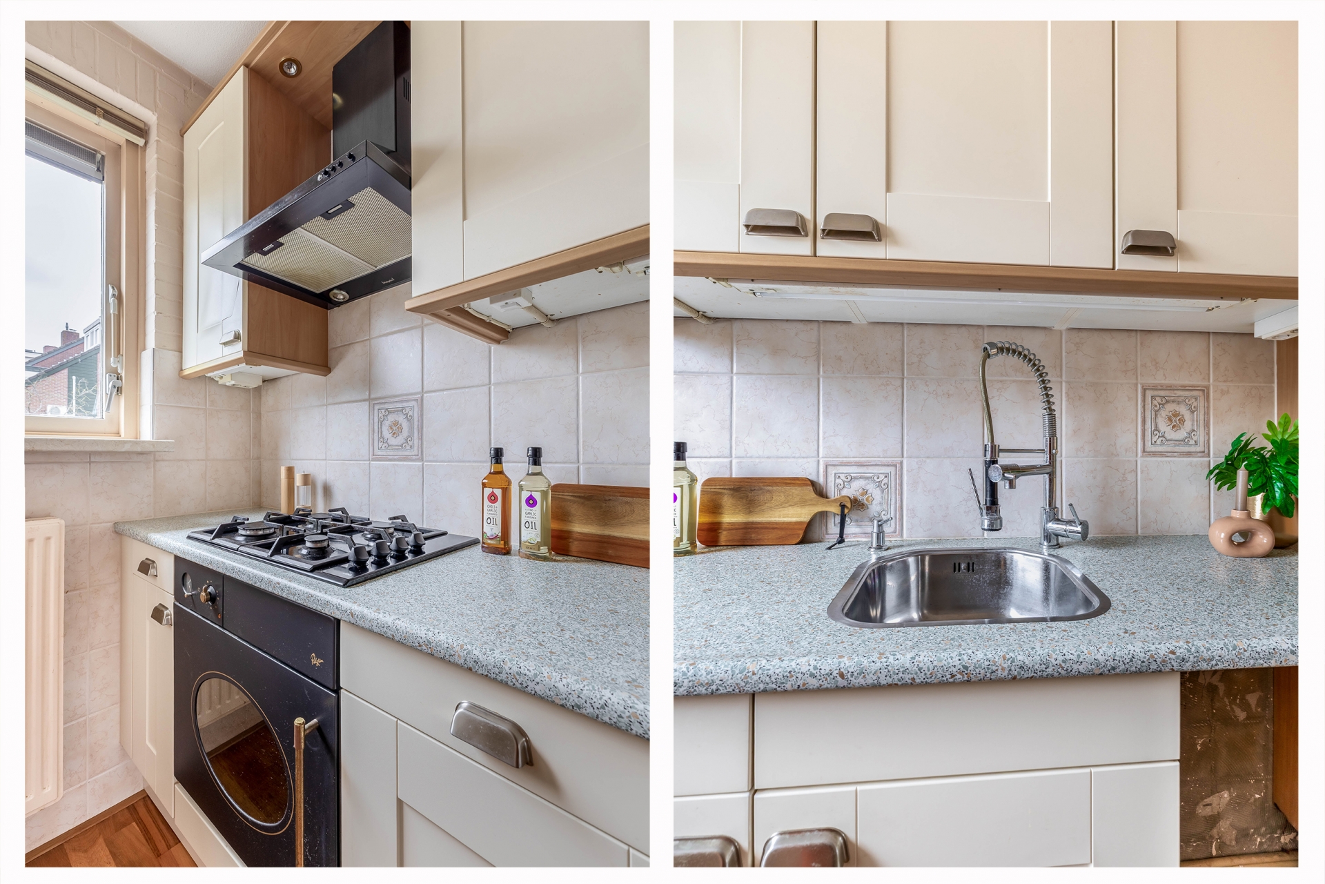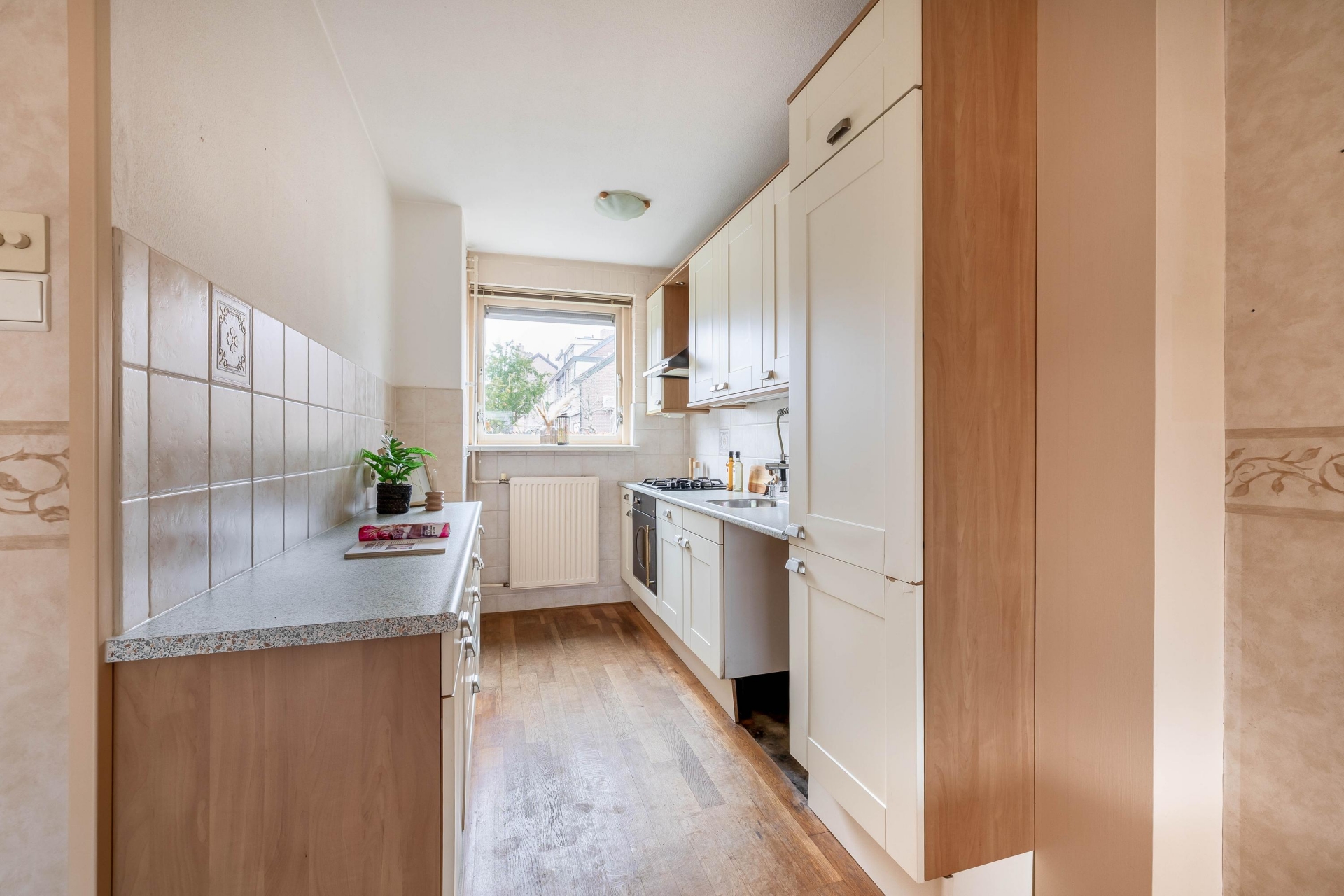 Deze woning uit 1977 is toe aan een opfrisbeurt, maar biedt een stevige basis voor wie verder kijkt dan alleen de afwerking. De begane grond is praktisch ingedeeld met een lichte hal, een apart toilet, een gesloten keuken aan de achterzijde en een tuingerichte woonkamer. De keuken is gedateerd maar functioneel, en biedt genoeg ruimte om een moderne (leef)keuken te realiseren.