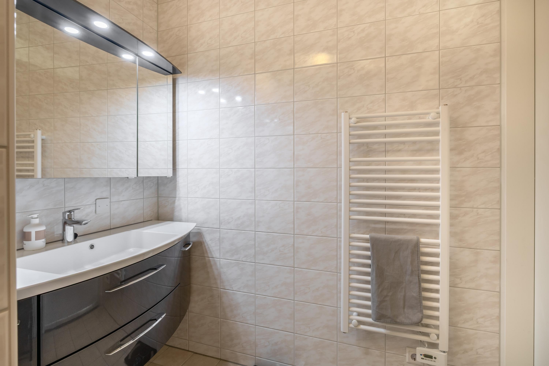 Het appartement beschikt over twee slaapkamers, beide van goed formaat. De grootste slaapkamer biedt ruimte voor een tweepersoonsbed en een grote kast, de tweede slaapkamer is ideaal als werk- of logeerkamer, of natuurlijk als kinderkamer. De badkamer is modern afgewerkt met een ruime douche, fraai wastafelmeubel en toilet.