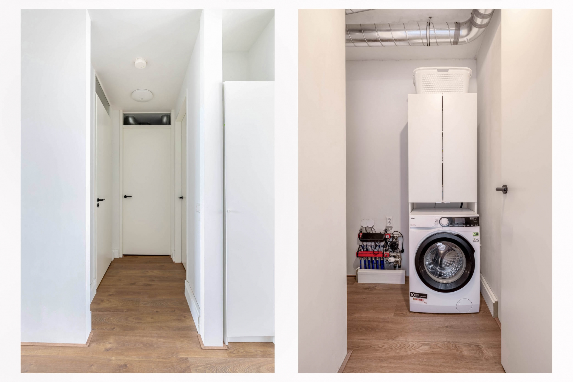- Hal met toegang tot de technische ruimte met warmteterugwinningssysteem en aansluiting voor de wasmachine en droger;